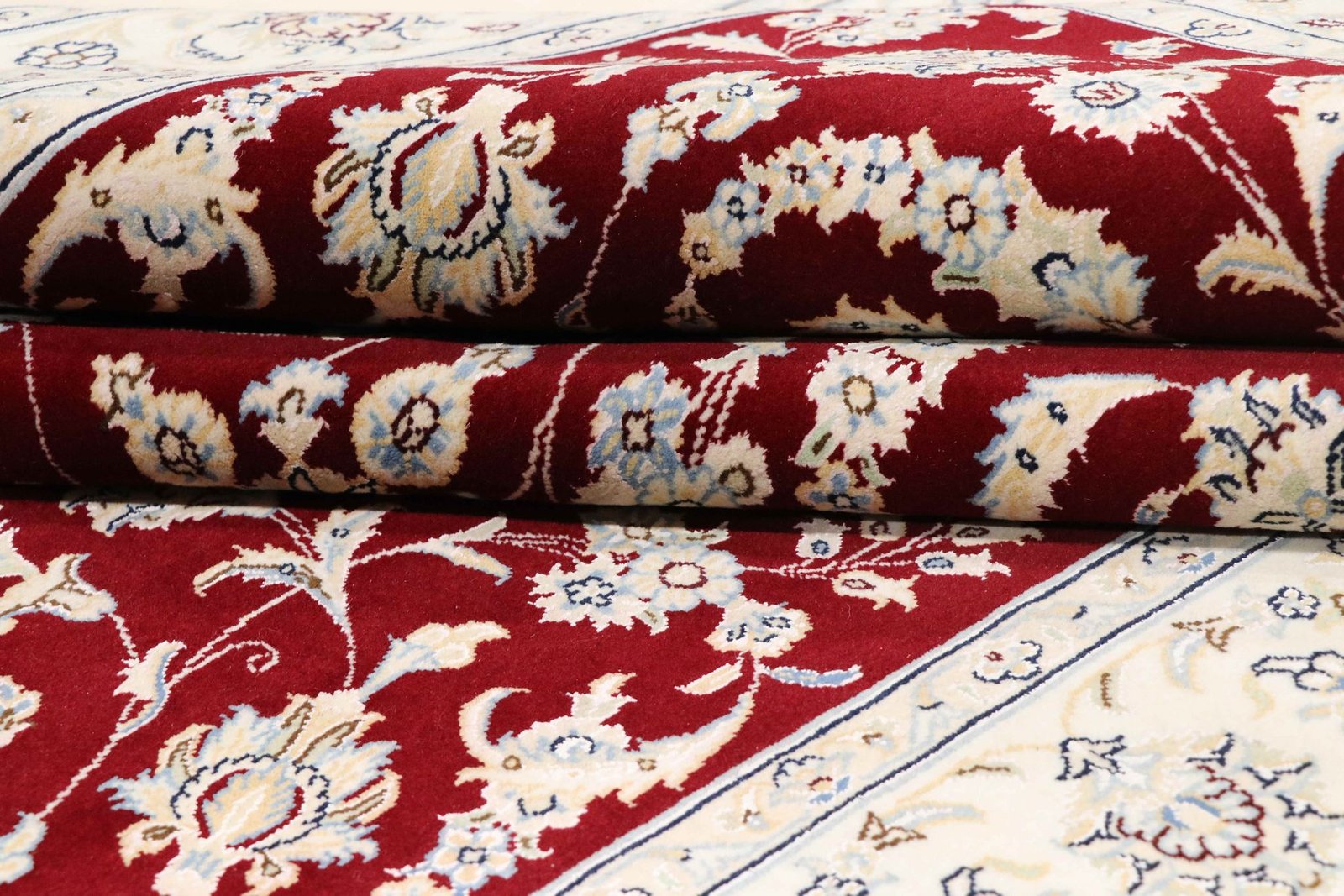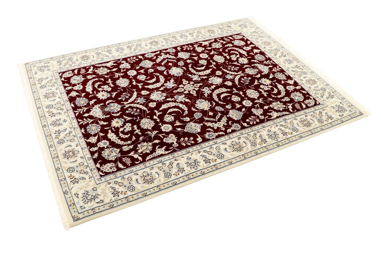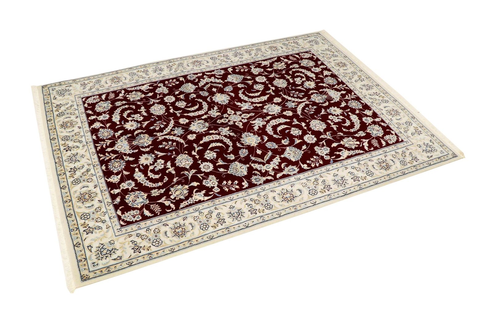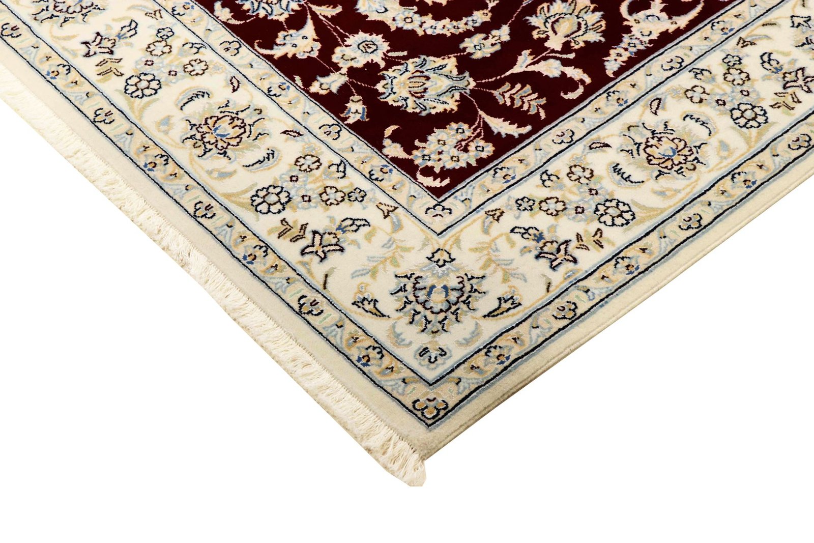 Nain, a picturesque city in southern Persia, is famous for its exquisite carpets, which are characterised by their fine quality and elegant design. Carpets from Nain are often white and light blue and contain silk, which gives them a special sheen. The town has a long tradition of carpet weaving, with many renowned masters known for their precise craftsmanship. Classic oriental carpets from Nain are hand-knotted unique pieces that have retained their unique patterns and designs through generations of tradition. They are characterised by high-quality materials, knot density and harmonious colour combinations, whether precious silk or soft cork wool. These carpets add a special touch to any room and are a symbol of timeless elegance and craftsmanship.