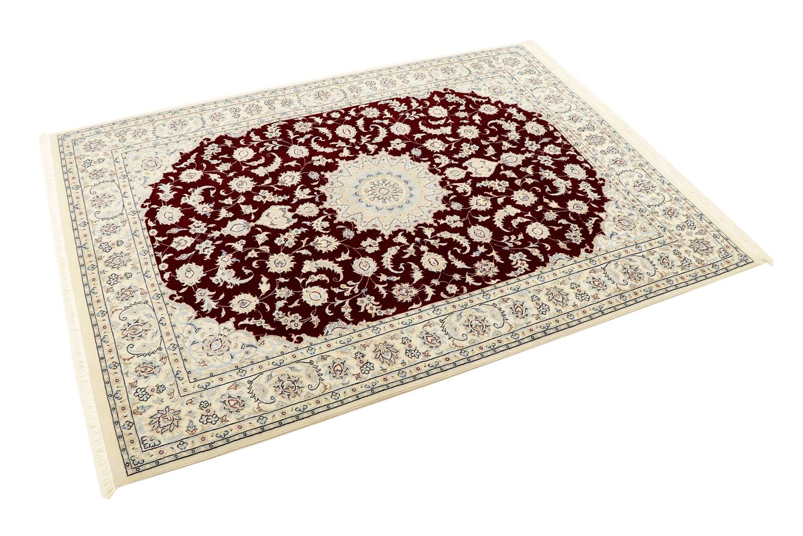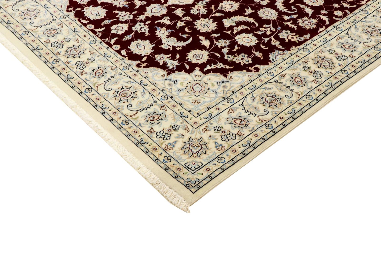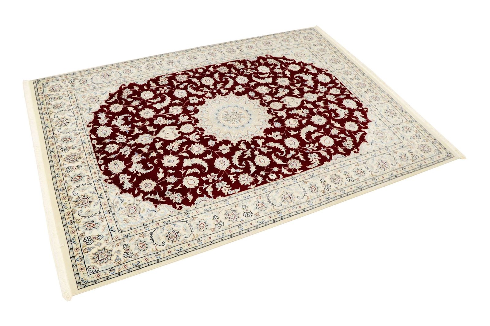 Nain is a picturesque town in southern Persia, known for its high-quality carpets. Carpets from Nain are characterised by a predominant colour palette of white and light blue, often decorated with silk. The city has a long tradition of carpet weaving and is famous for its fine and soothing oriental carpets. These classic, hand-knotted, unique pieces feature characteristic patterns that have been passed down from generation to generation. The origin of the carpets influences their manufacture, the materials used and the motifs. Persian carpets, named after their city of origin, are particularly prized for their high-quality materials, high knot density, harmonious colouring and traditional designs. Whether made of precious silk or soft cork wool, an oriental carpet adds a special touch to any room.
