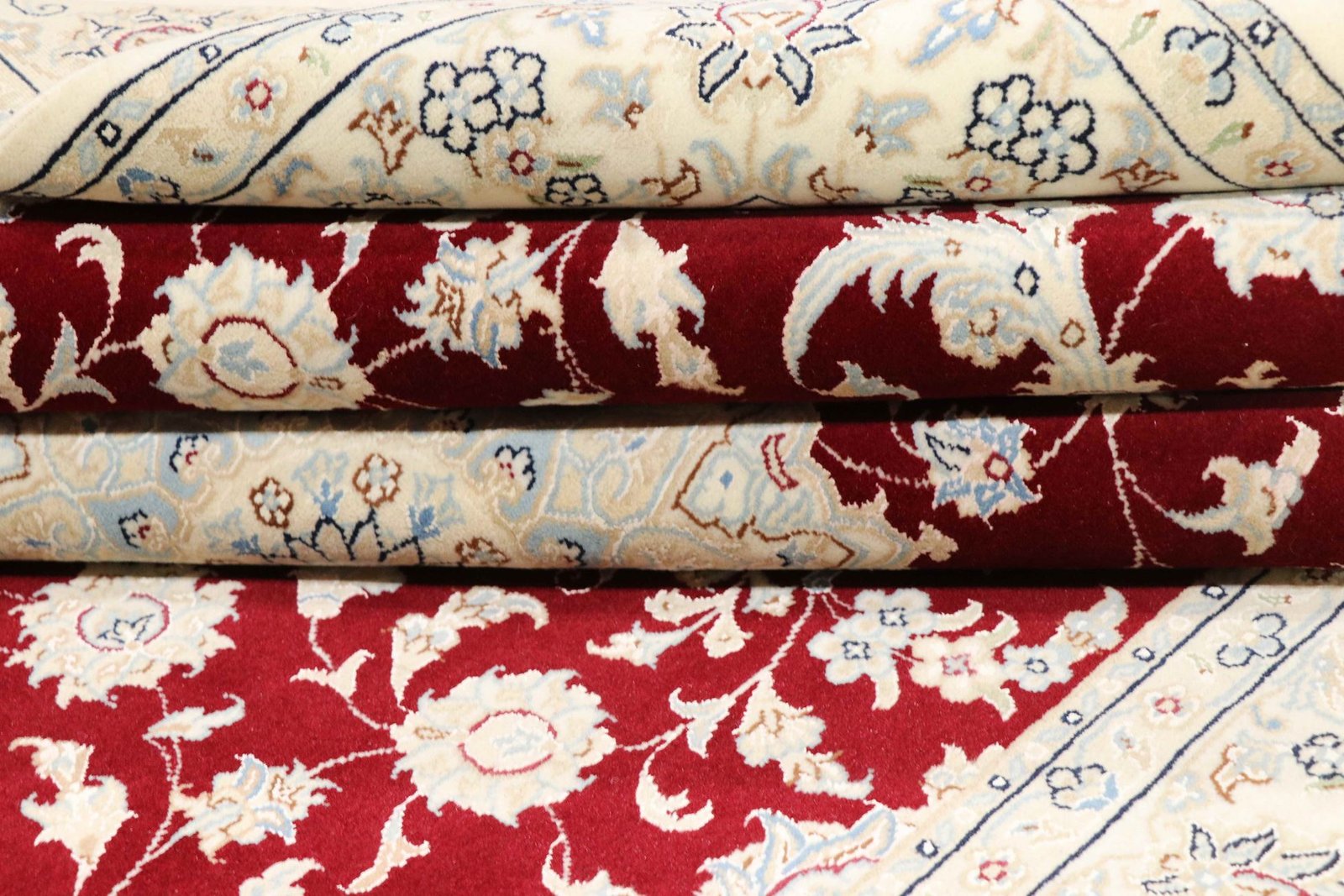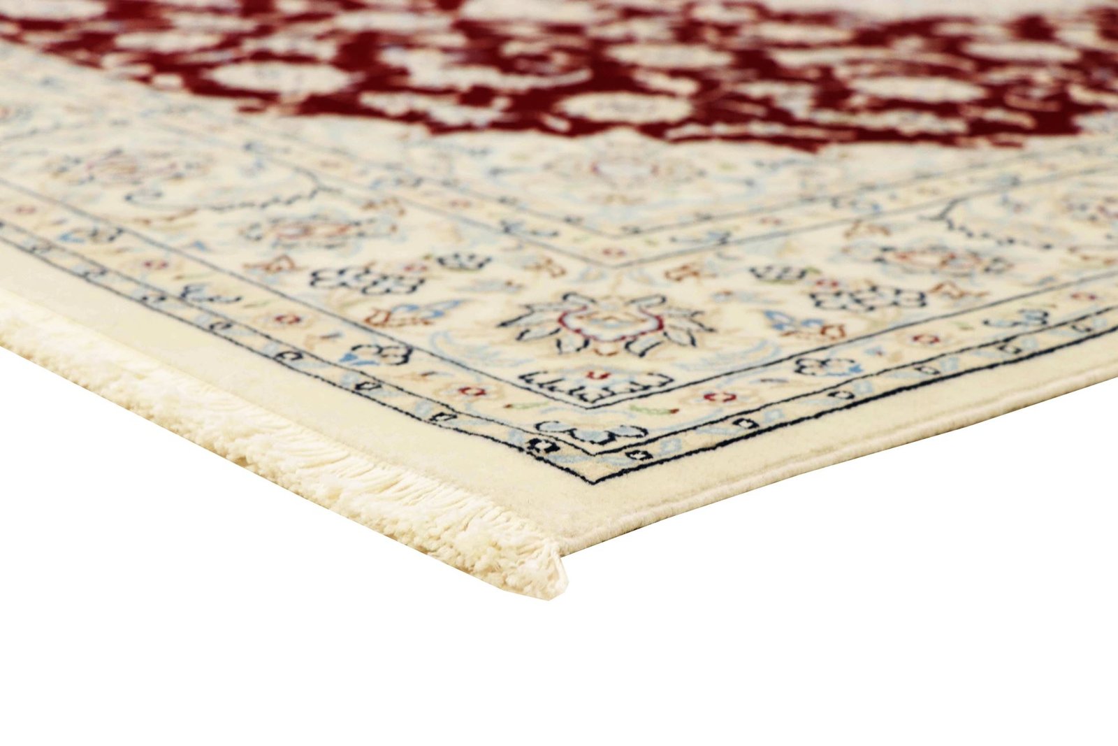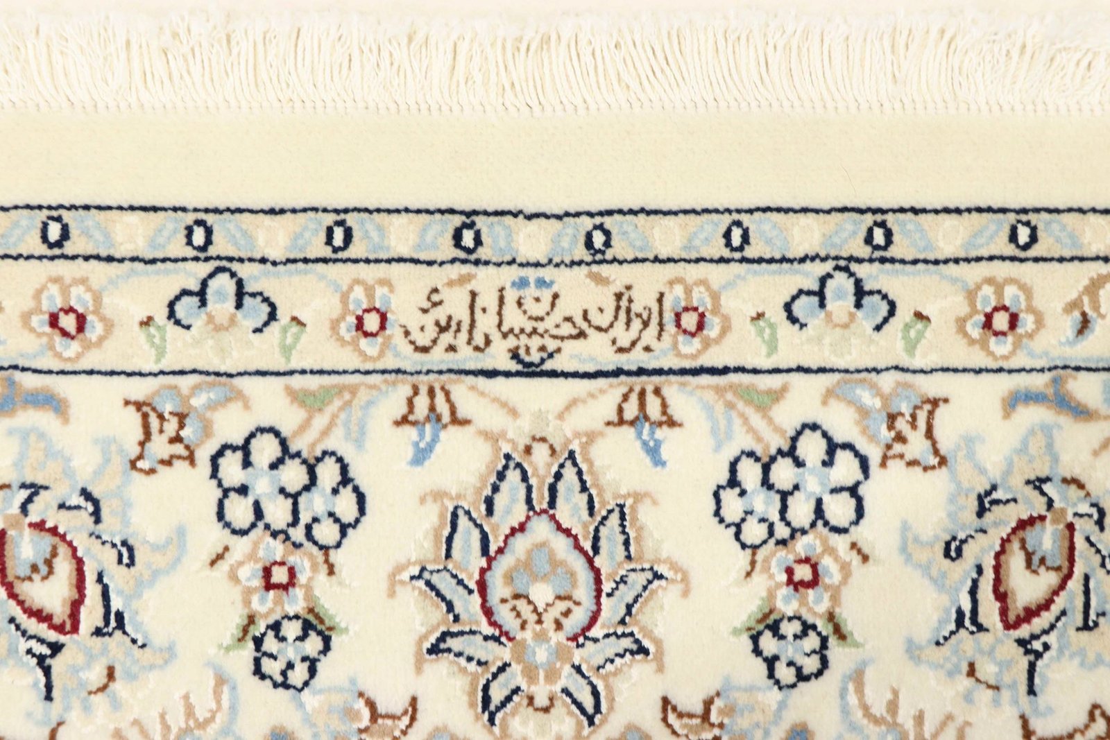 Nain is a picturesque town in southern Persia, known for its high-quality carpets. Carpets from Nain are characterised by a predominant colour palette of white and light blue, often decorated with silk. The city has a long tradition of carpet weaving and is famous for its fine and soothing oriental carpets. These classic, hand-knotted, unique pieces feature characteristic patterns that have been passed down from generation to generation. The origin of the carpets influences their manufacture, the materials used and the motifs. Persian carpets, named after their city of origin, are particularly prized for their high-quality materials, high knot density, harmonious colouring and traditional designs. Whether made of precious silk or soft cork wool, an oriental carpet adds a special touch to any room.