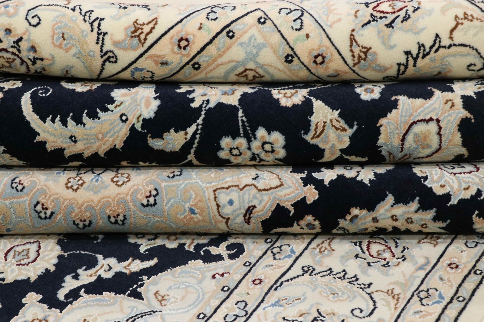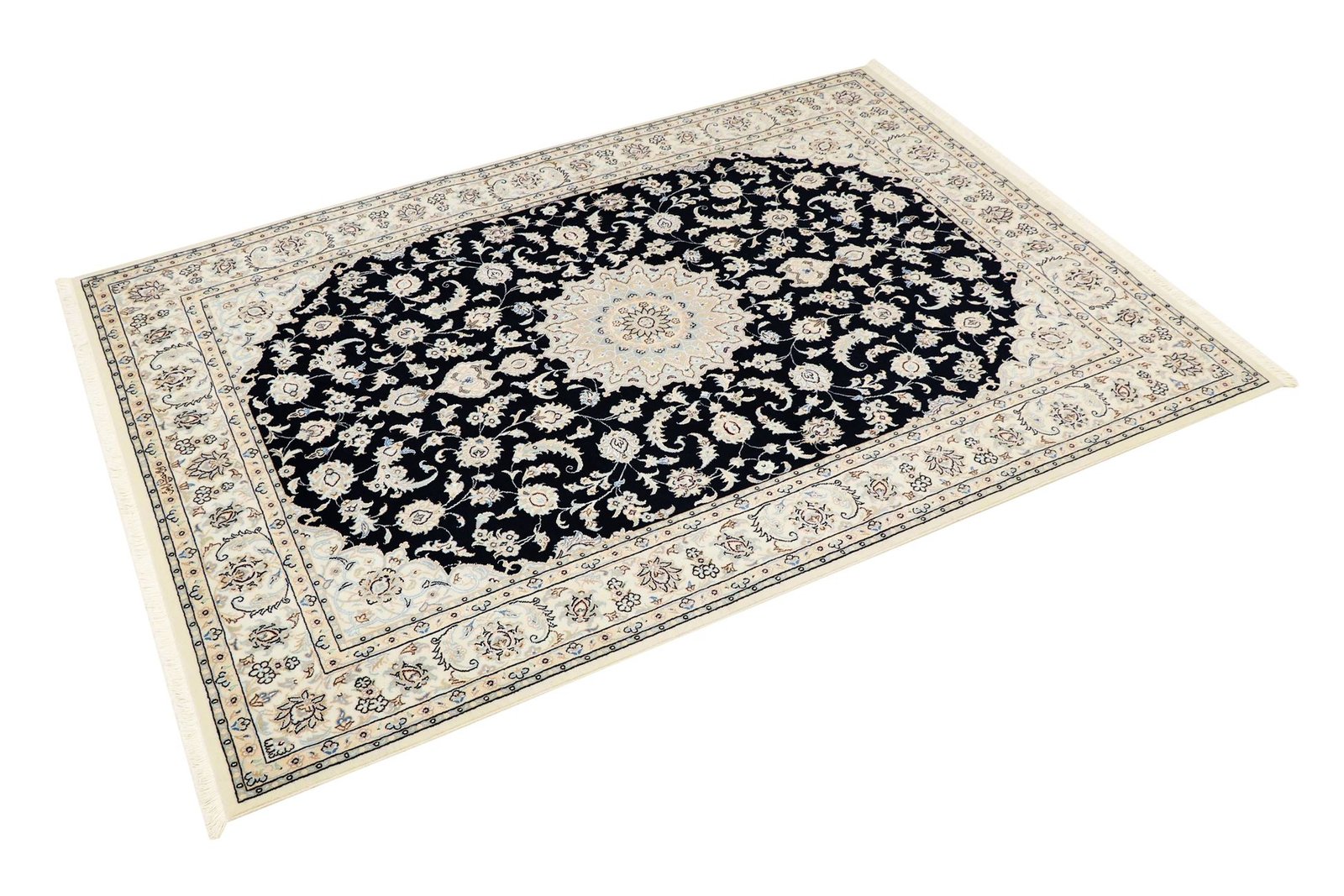Nain, a picturesque town in southern Persia, is known for its high-quality carpets, which often captivate with their elegant combination of white and light blue and the use of silk. This town has a long tradition of carpet weaving and is famous for its magnificent and fine oriental carpets. Classic oriental carpets are hand-knotted unique pieces whose patterns are passed down from generation to generation. The origin has a significant influence on the manufacturing method, material and motifs of the carpets. Particularly high-quality Persian carpets, named after their city, are characterised by first-class materials, high knot density and unique colour harmonies. Whether made of precious silk or soft cork wool, an oriental carpet adds a special and luxurious touch to any room.