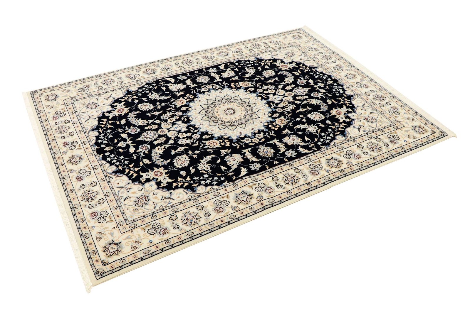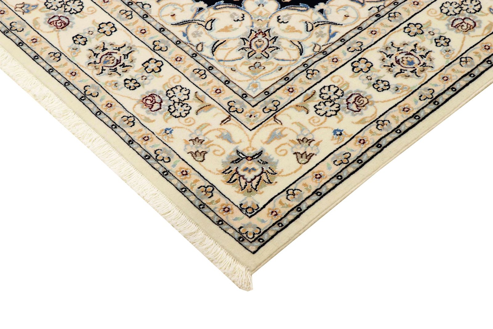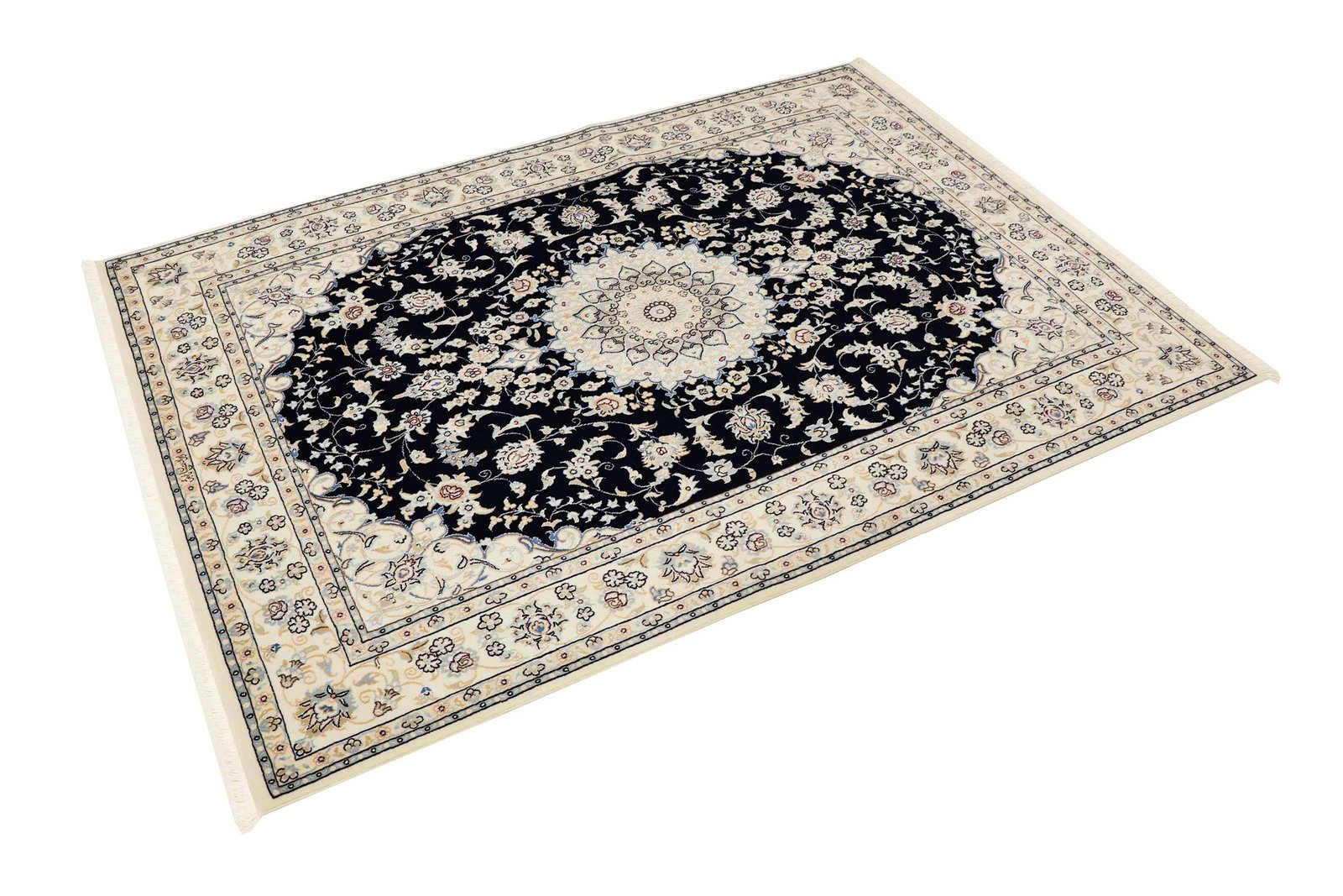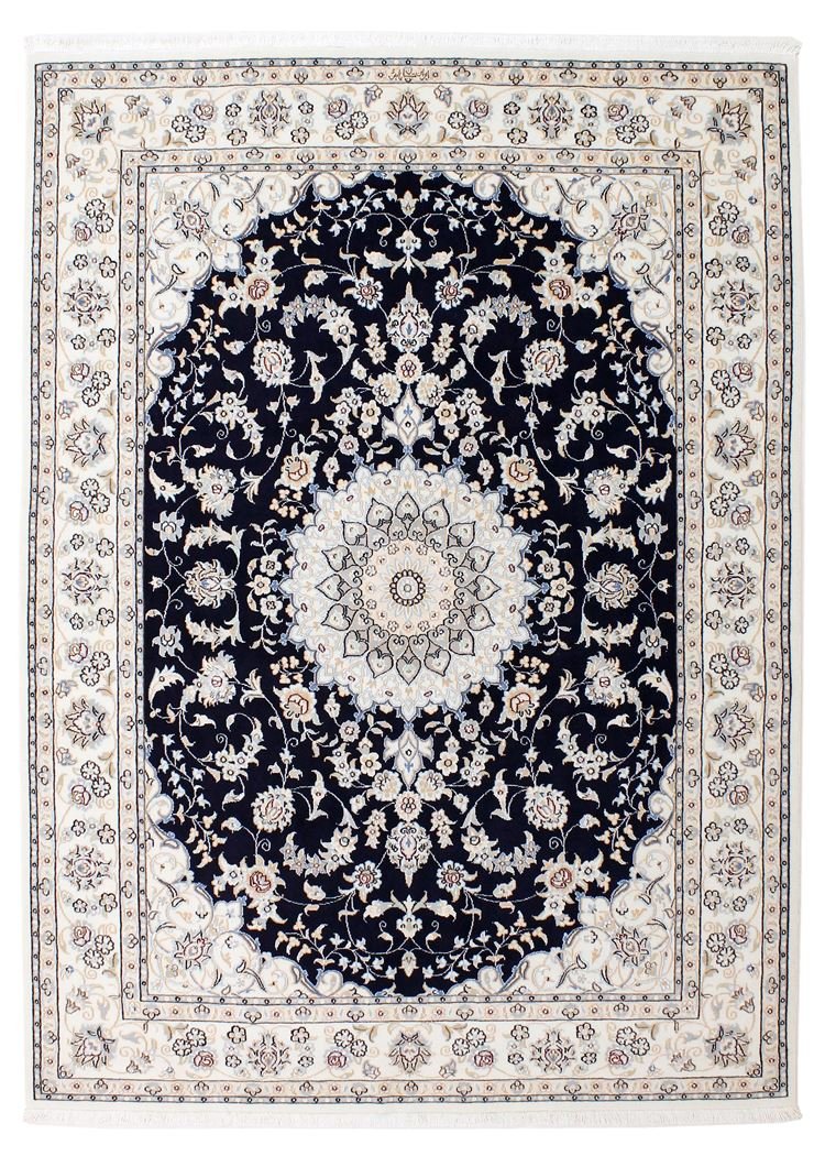 Nain, a picturesque town in southern Persia, is famous for its exquisite carpets. Carpets from Nain captivate with their fine quality and elegant colours such as white and light blue, often refined with silk. The town has a long tradition in the art of carpet weaving and is known for the fineness and beauty of its oriental carpets. These hand-knotted unique pieces preserve classic patterns that have been passed down from generation to generation. The origin influences the manufacture, material and motifs of the carpets, especially in the case of high-quality Persian carpets, which are named after their city of origin. They are characterised by first-class materials, knot density and unique colour harmonies. Whether made of precious silk or soft wool, an oriental carpet from Nain adds a special touch to any room.