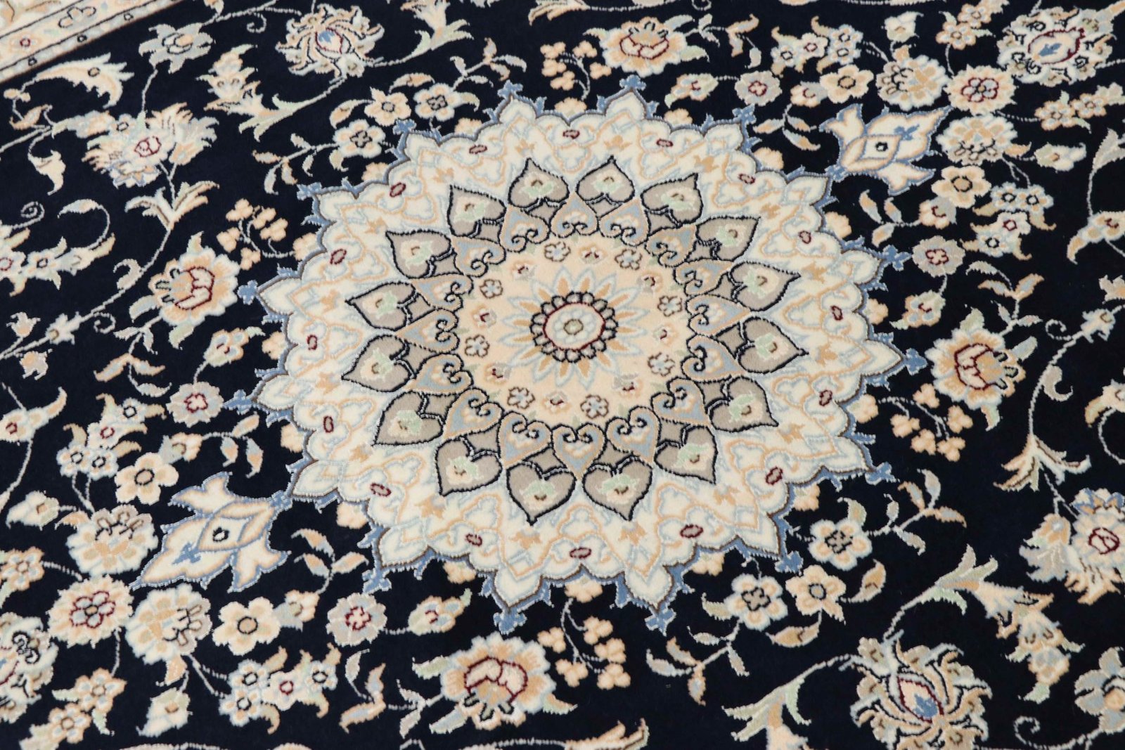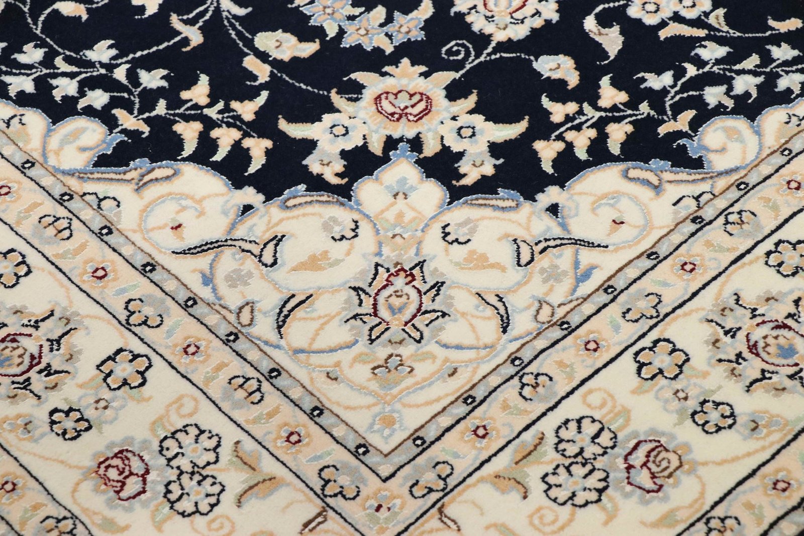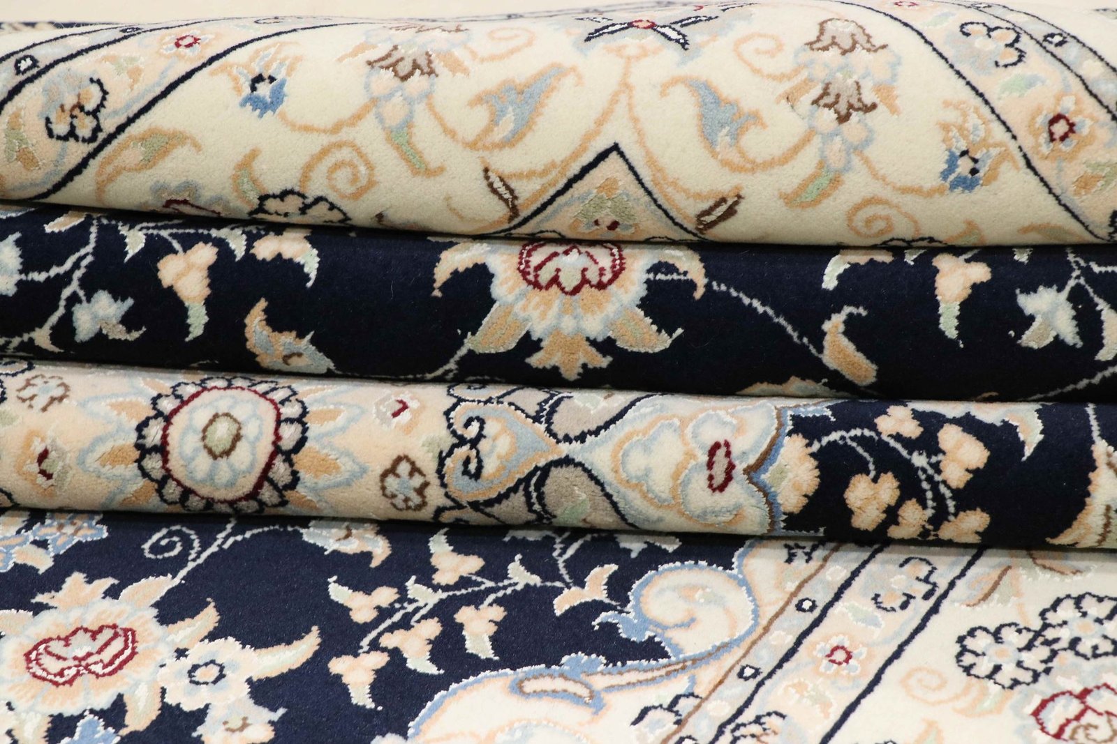 Nain, a picturesque town in southern Persia, is famous for its exquisite carpets. Carpets from Nain captivate with their fine quality and elegant colours such as white and light blue, often refined with silk. The town has a long tradition in the art of carpet weaving and is known for the fineness and beauty of its oriental carpets. These hand-knotted unique pieces preserve classic patterns that have been passed down from generation to generation. The origin influences the manufacture, material and motifs of the carpets, especially in the case of high-quality Persian carpets, which are named after their city of origin. They are characterised by first-class materials, knot density and unique colour harmonies. Whether made of precious silk or soft wool, an oriental carpet from Nain adds a special touch to any room.