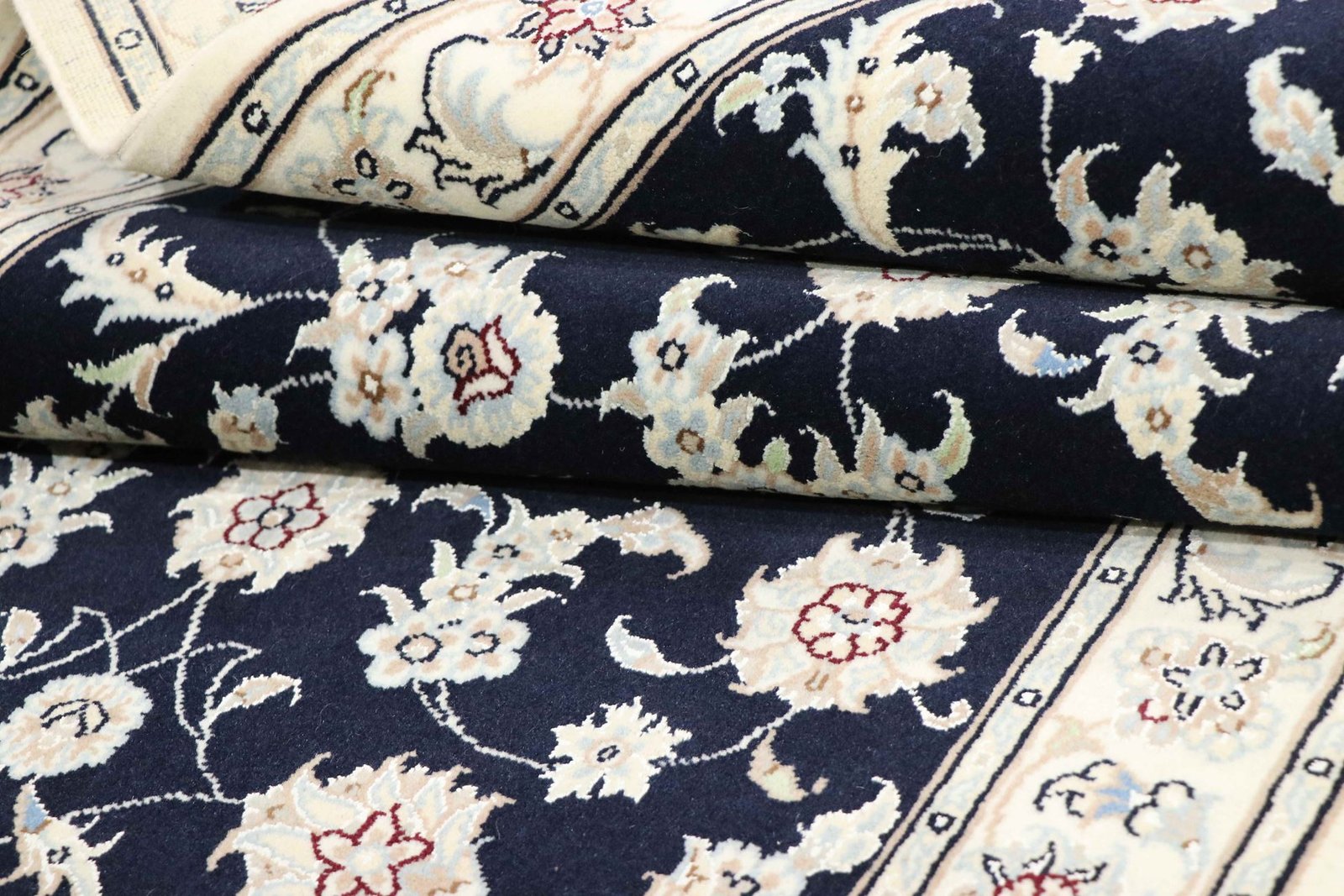 Nain, a charming city in southern Persia, is famous for its exquisite carpets, which captivate with their fine quality. Nain carpets are known for their elegant colour combination of white and light blue, often embellished with silk. This city has a long tradition of carpet weaving, and its masters are renowned for their precise workmanship and the soothing beauty of their oriental carpets. Classic oriental carpets are unique, hand-knotted pieces whose patterns are passed down from generation to generation. The manufacturing method, material and motifs reflect their origin. High-quality Persian carpets, named after their city of origin, are characterised by first-class materials, knot density and unique colour harmonies. Whether made of fine silk or soft cork wool, every oriental carpet adds a special touch to a room.