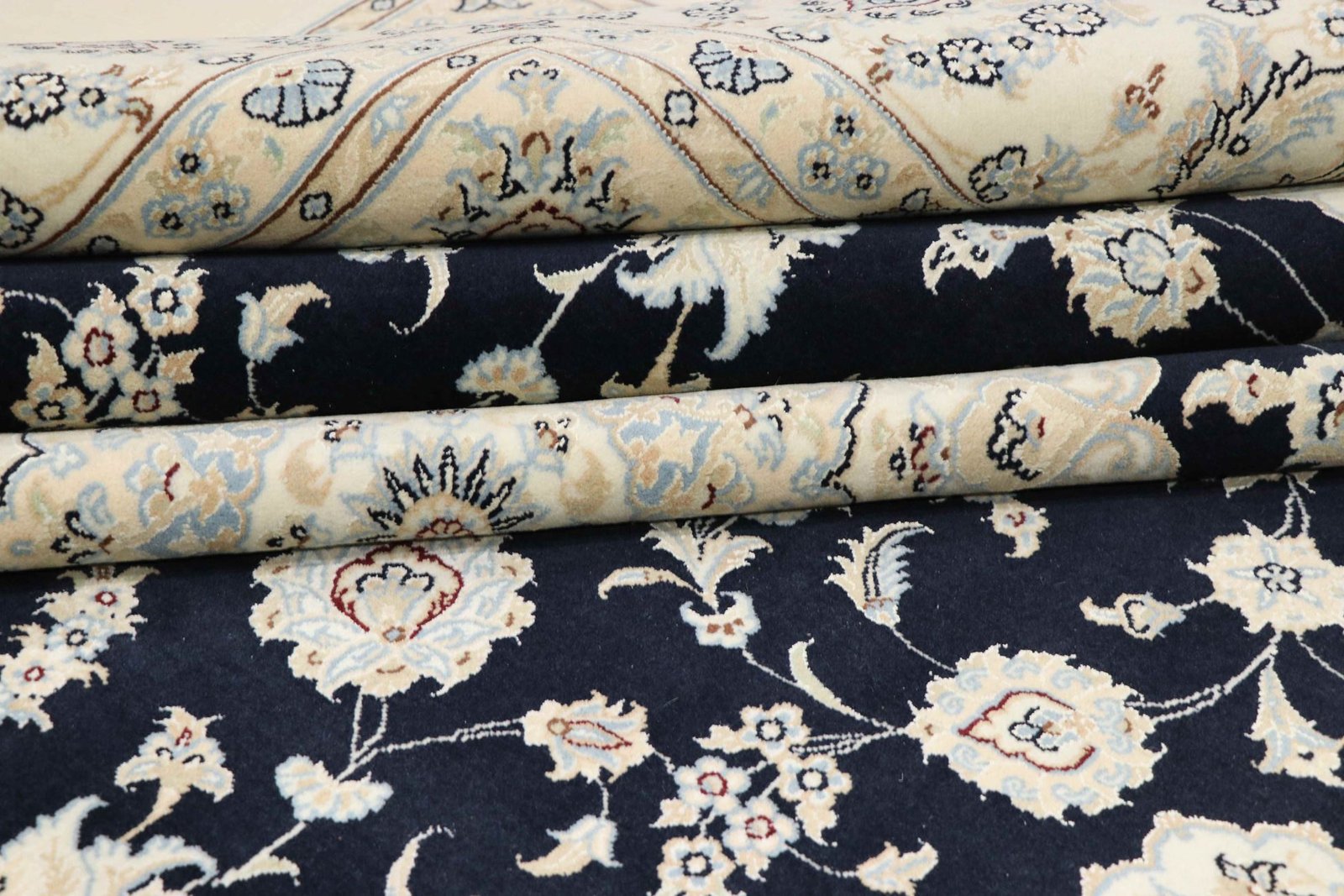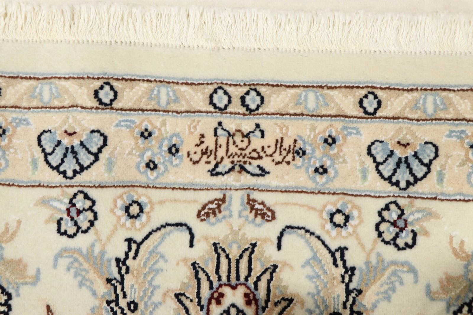 Nain, a charming city in southern Persia, is famous for its exquisite carpets, which captivate with their fine quality and elegant designs. Carpets from Nain are known for their dominant colours of white and light blue, as well as the use of silk. The city has a long tradition of carpet weaving and was home to many renowned masters who are valued for the fineness and beauty of their work. Classic oriental carpets from Nain are hand-knotted, unique pieces whose patterns have been passed down from generation to generation. These carpets are characterised by first-class materials, high knot density and harmonious colour combinations. Whether made of precious silk or soft cork wool, an oriental carpet from Nain adds a special, elegant touch to any room.