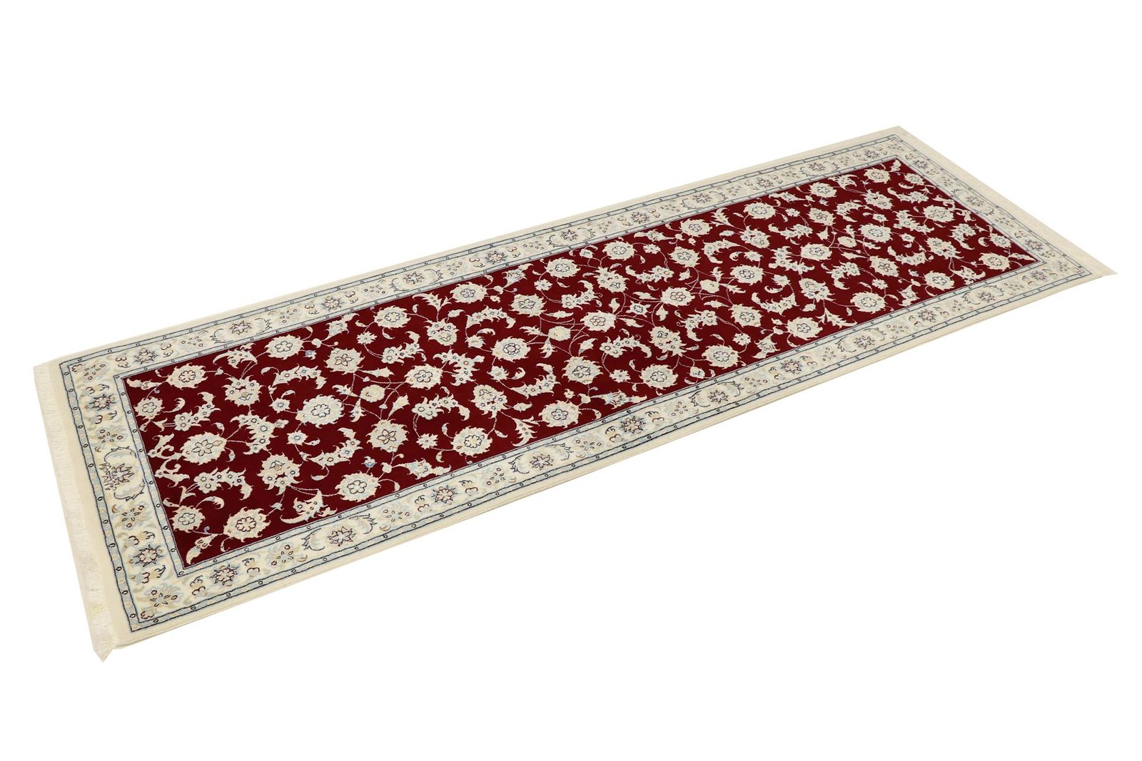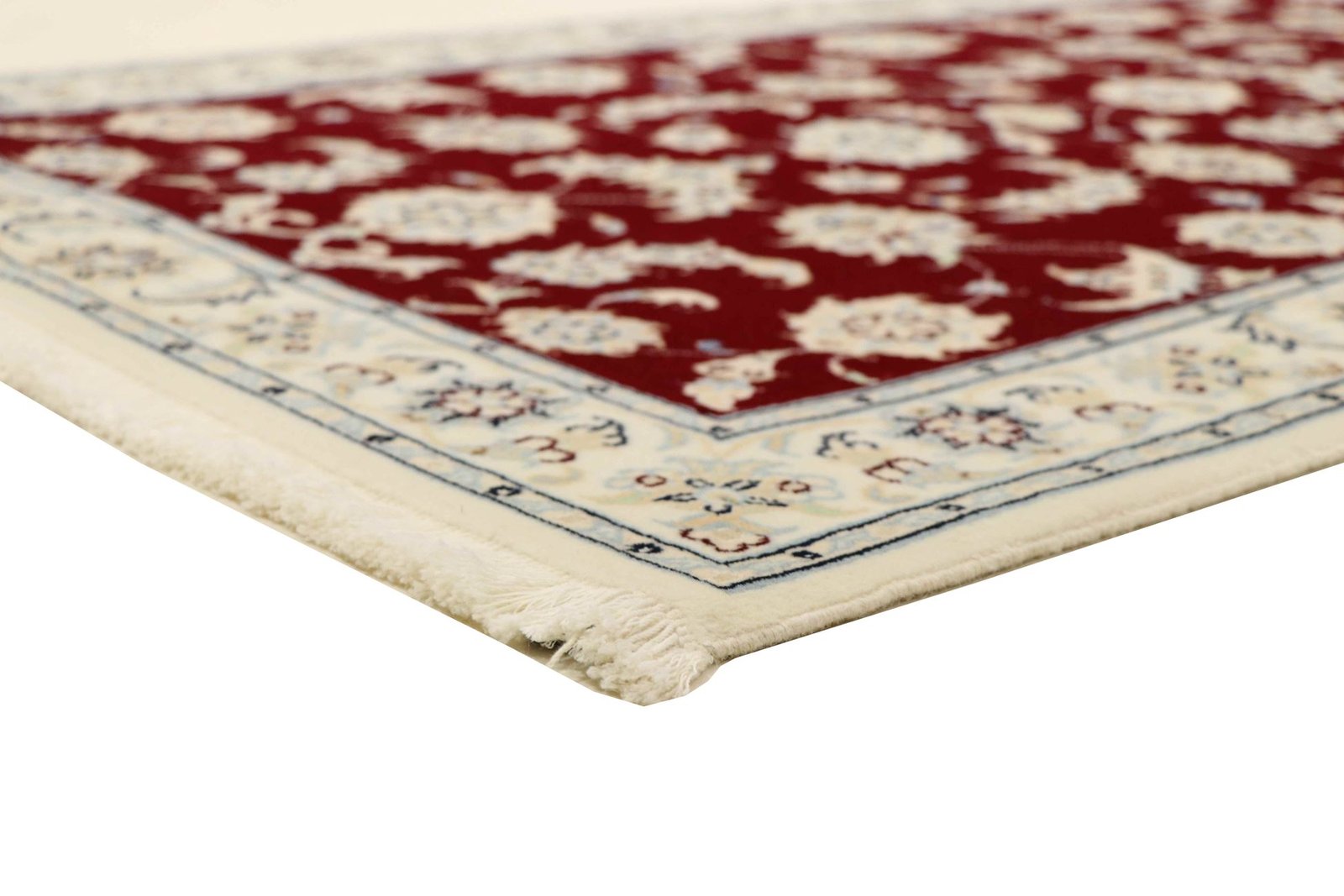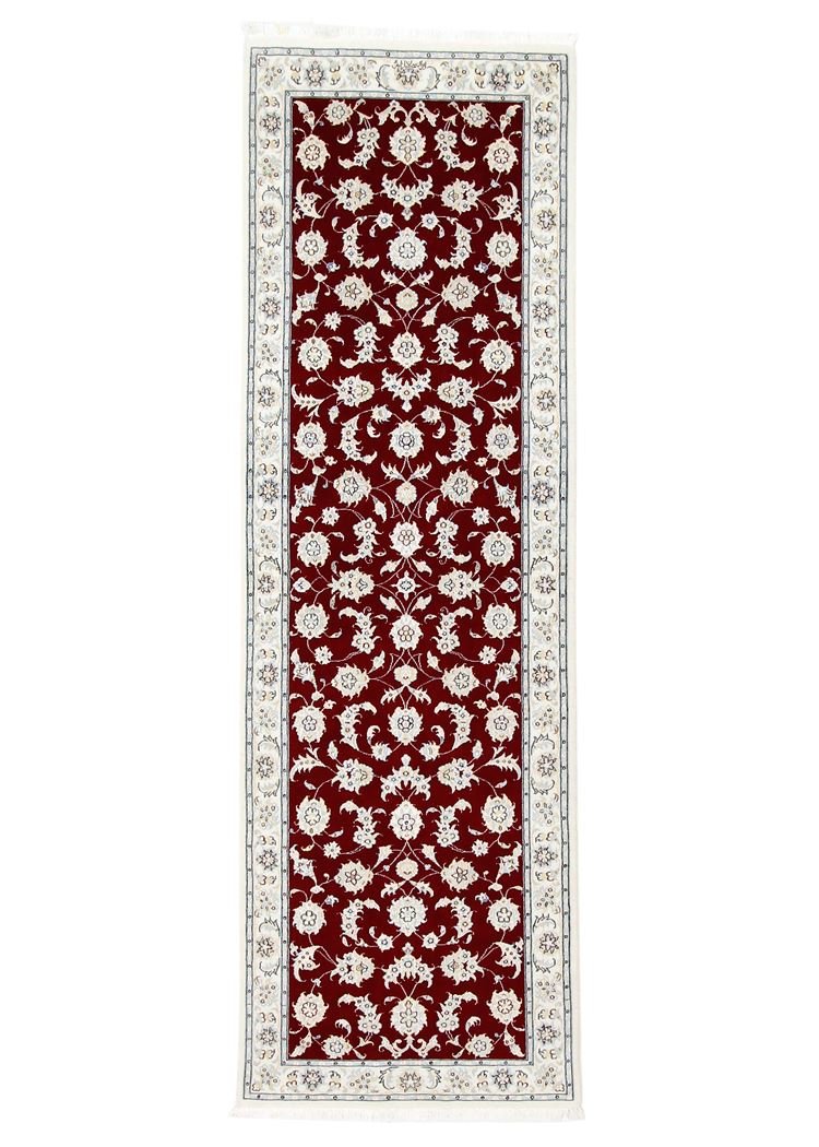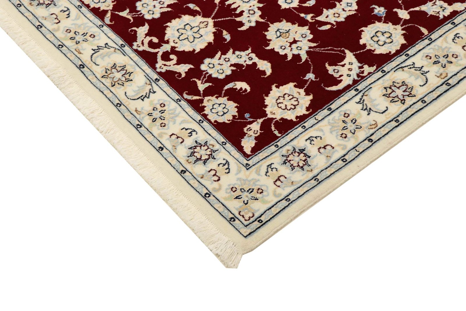Nain, a picturesque town in southern Persia, is famous for its exquisite carpets. Carpets from Nain are known for their fine quality and typical designs, which are often in white and light blue and contain silk. The town has a long tradition of carpet weaving, and its masters are renowned for their exceptional craftsmanship. Classic oriental carpets from Nain are hand-knotted, unique pieces that captivate with their attention to detail and unique patterns. These carpets reflect their origins and tradition and are valued for their first-class materials, high knot density and harmonious colours. Whether made of precious silk or soft wool, a Nain carpet adds a special, luxurious touch to any room and embodies the tradition of Persian carpet art.