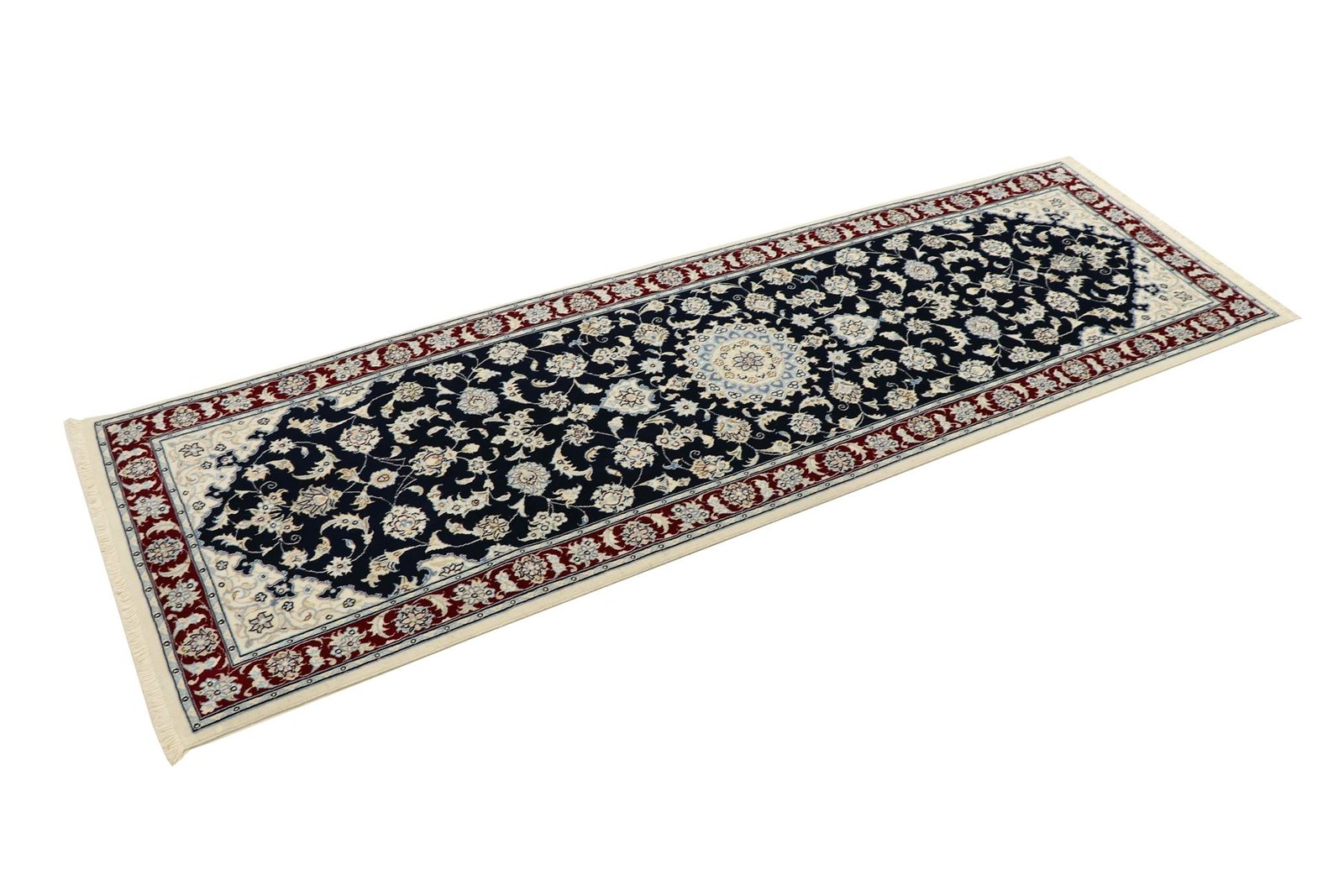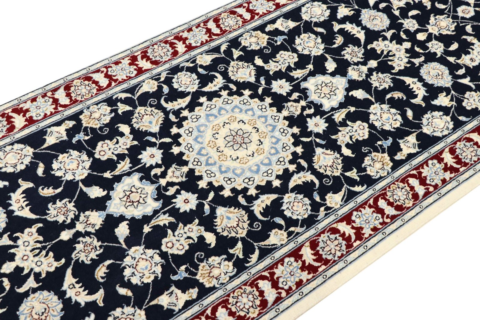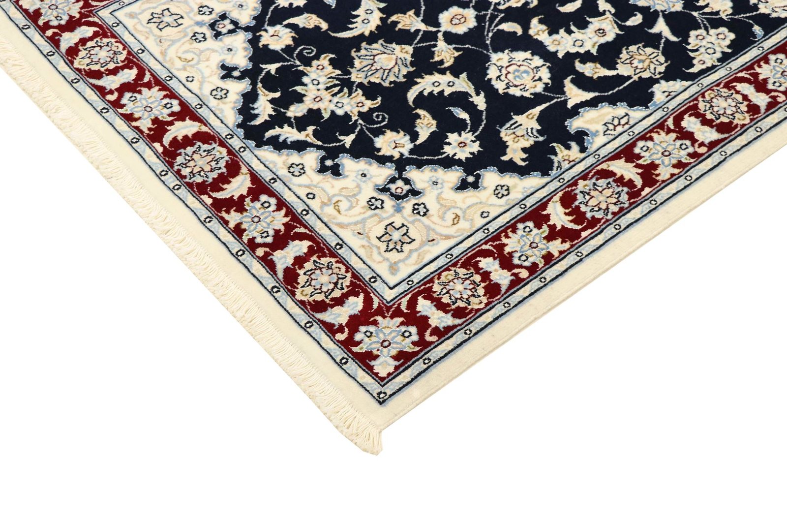 Nain, a picturesque city in southern Persia, is famous for its high-quality carpets. These elegant carpets are characterised by their typical use of white and light blue colours and fine silk. The city has a long tradition of carpet weaving and is home to many renowned masters who are known for their precise and tasteful creations. Classic oriental carpets from Nain are hand-knotted, unique pieces whose patterns have been passed down through generations. Their origin influences the materials, manufacturing methods and motifs, with Nain carpets particularly impressing with their first-class materials, high knot density and harmonious colours. Whether made from precious silk or soft wool, a Nain carpet lends every room a special, elegant atmosphere.