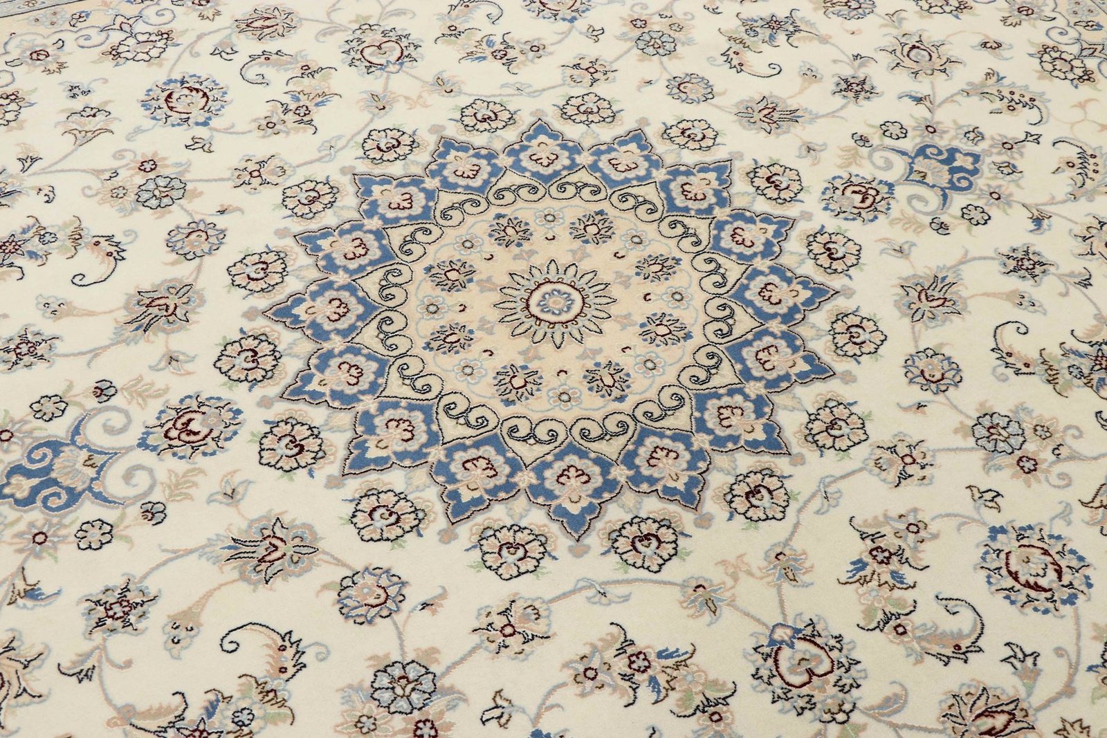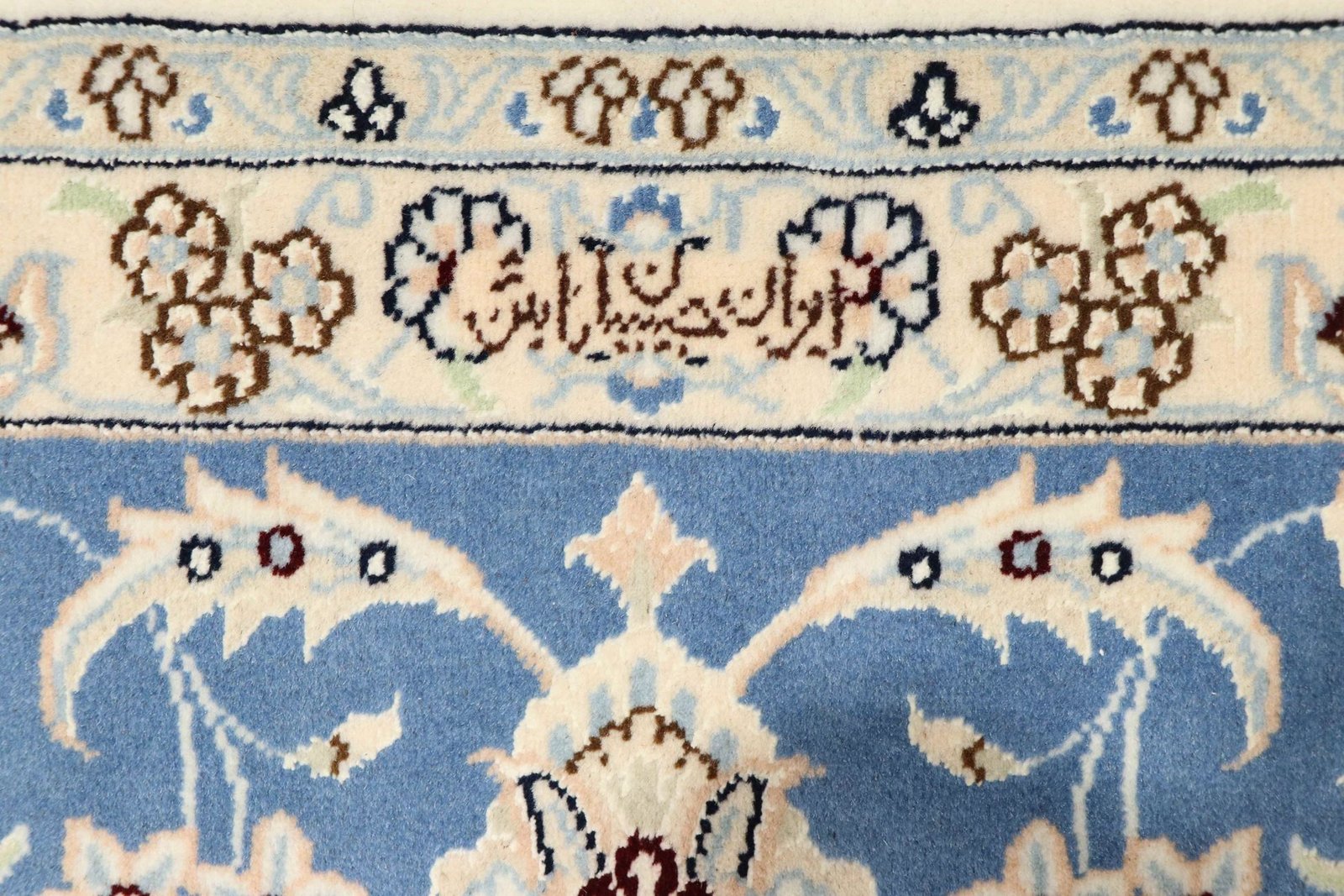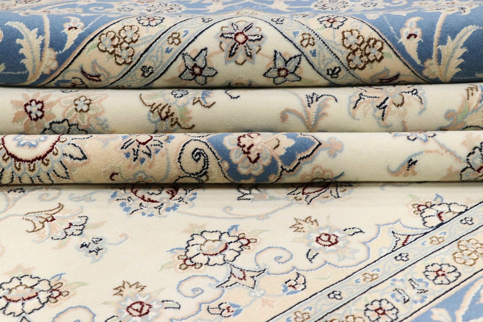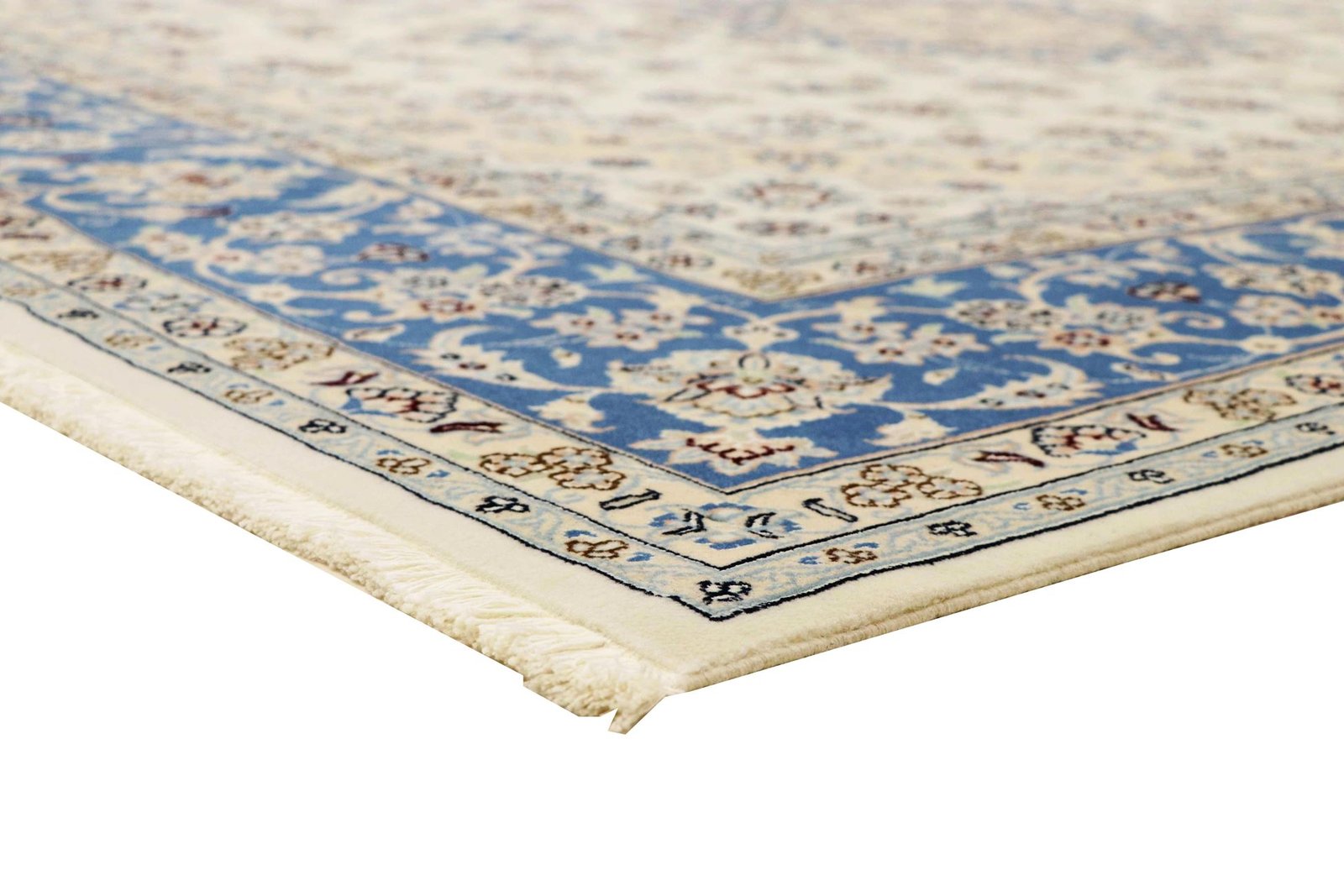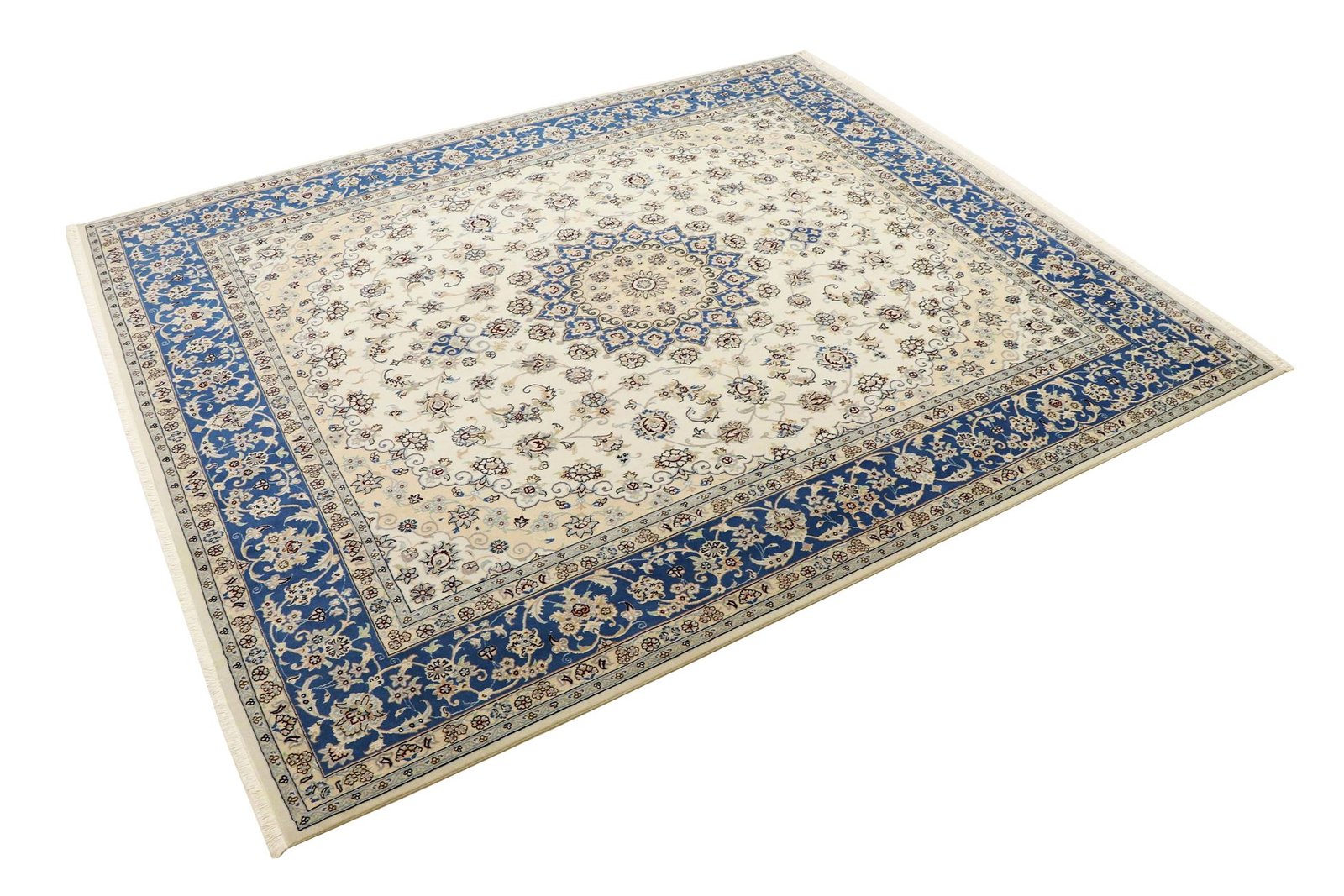 Nain is a charming city in southern Persia, famous for its exquisite carpets, which captivate with their high quality. Carpets from Nain are characterised by delicate colours such as white and light blue and are often made of fine silk. The town has a long tradition of carpet weaving, with many renowned masters known for the fineness and beauty of their work. Classic oriental carpets from Nain are hand-knotted unique pieces that pass on their unique patterns from generation to generation. The region of origin influences the manufacture, material and motifs of the carpets, especially the high-quality Persian carpets. These works of art are characterised by first-class materials, knot density, harmonious colours and traditional designs. Whether made of precious silk or soft cork wool, a Nain carpet adds a special, elegant touch to any room.