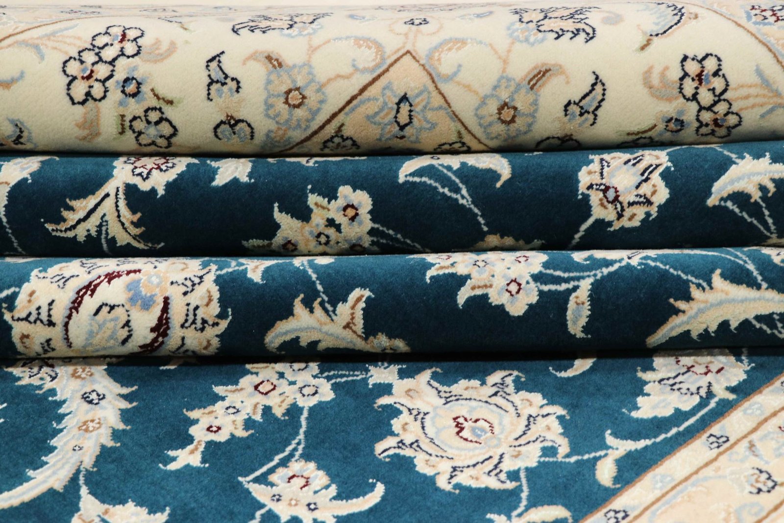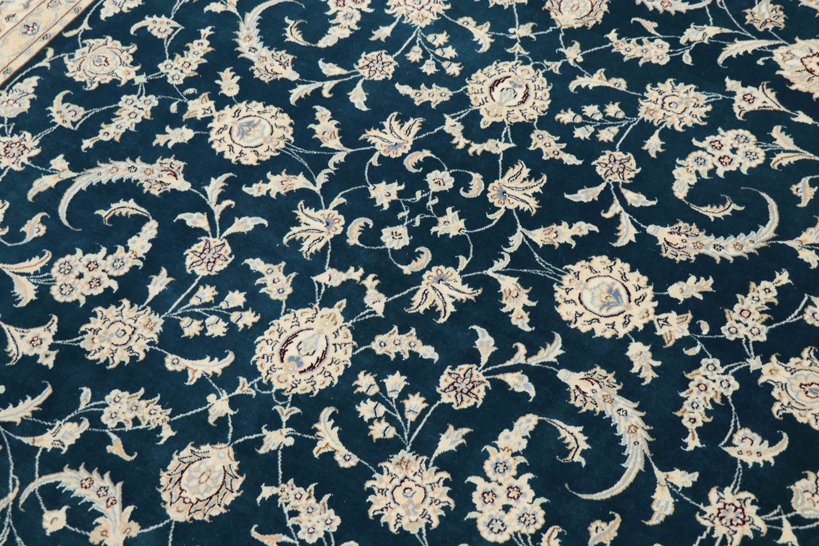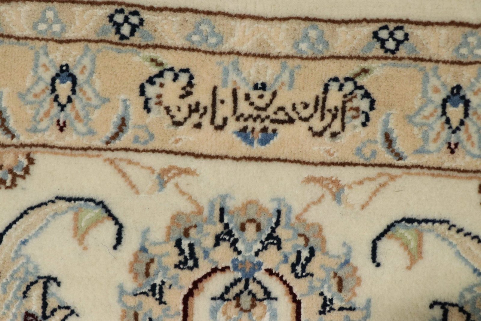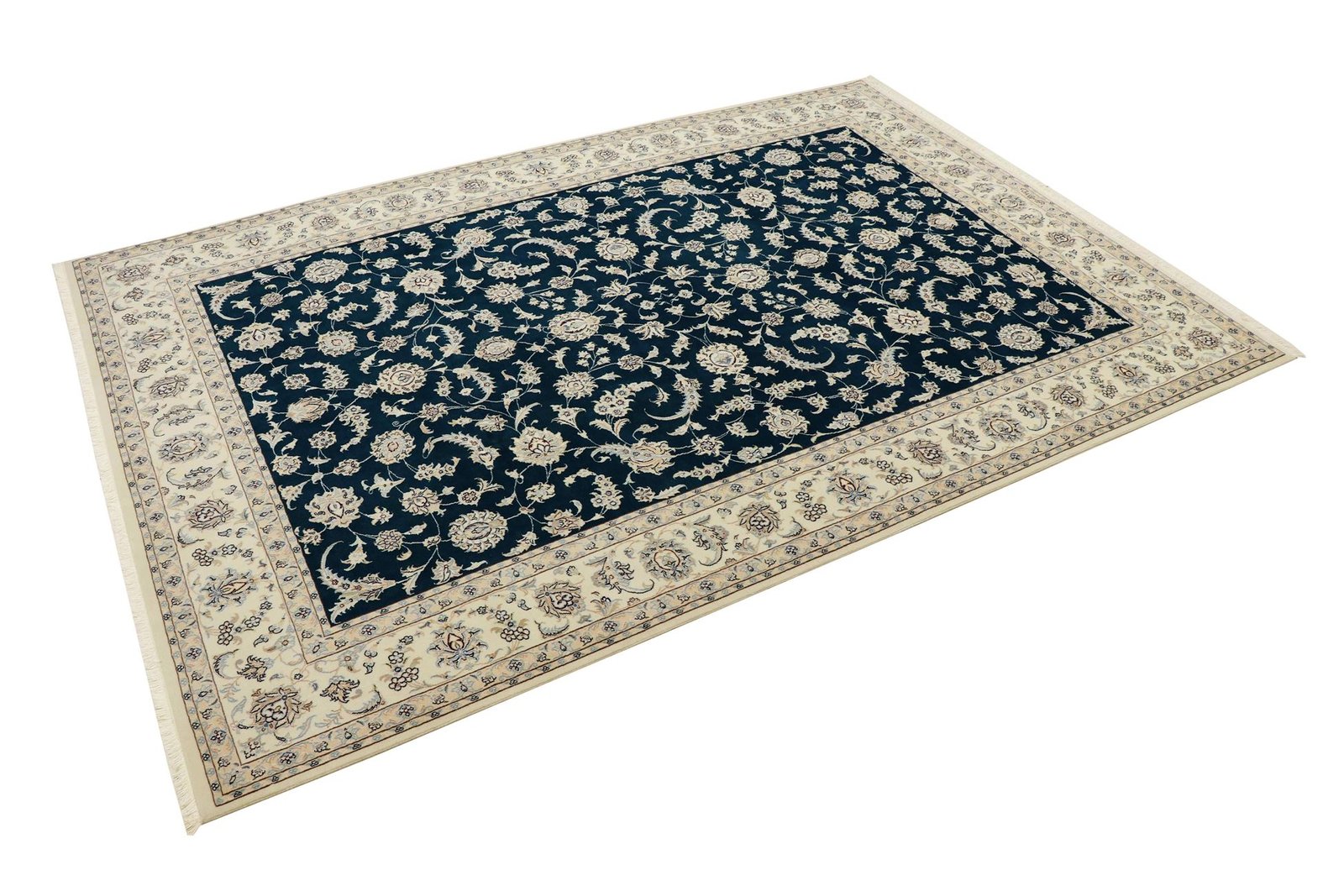 Nain, a charming city in southern Persia, is famous for its exquisite carpets, which captivate with their high quality and fine workmanship. Carpets from Nain are known for their elegant colour scheme in white and light blue and the use of the finest silk. The city has a long tradition of masterful weavers who are valued for the delicacy and beauty of their oriental carpets. Classic oriental carpets from Nain are hand-knotted, unique pieces whose patterns are passed down from generation to generation. These carpets are characterised by first-class materials, high knot density, unique colour harmonies and traditional designs. Whether made from precious silk or soft cork wool, an oriental carpet from Nain adds a special, elegant touch to any room.