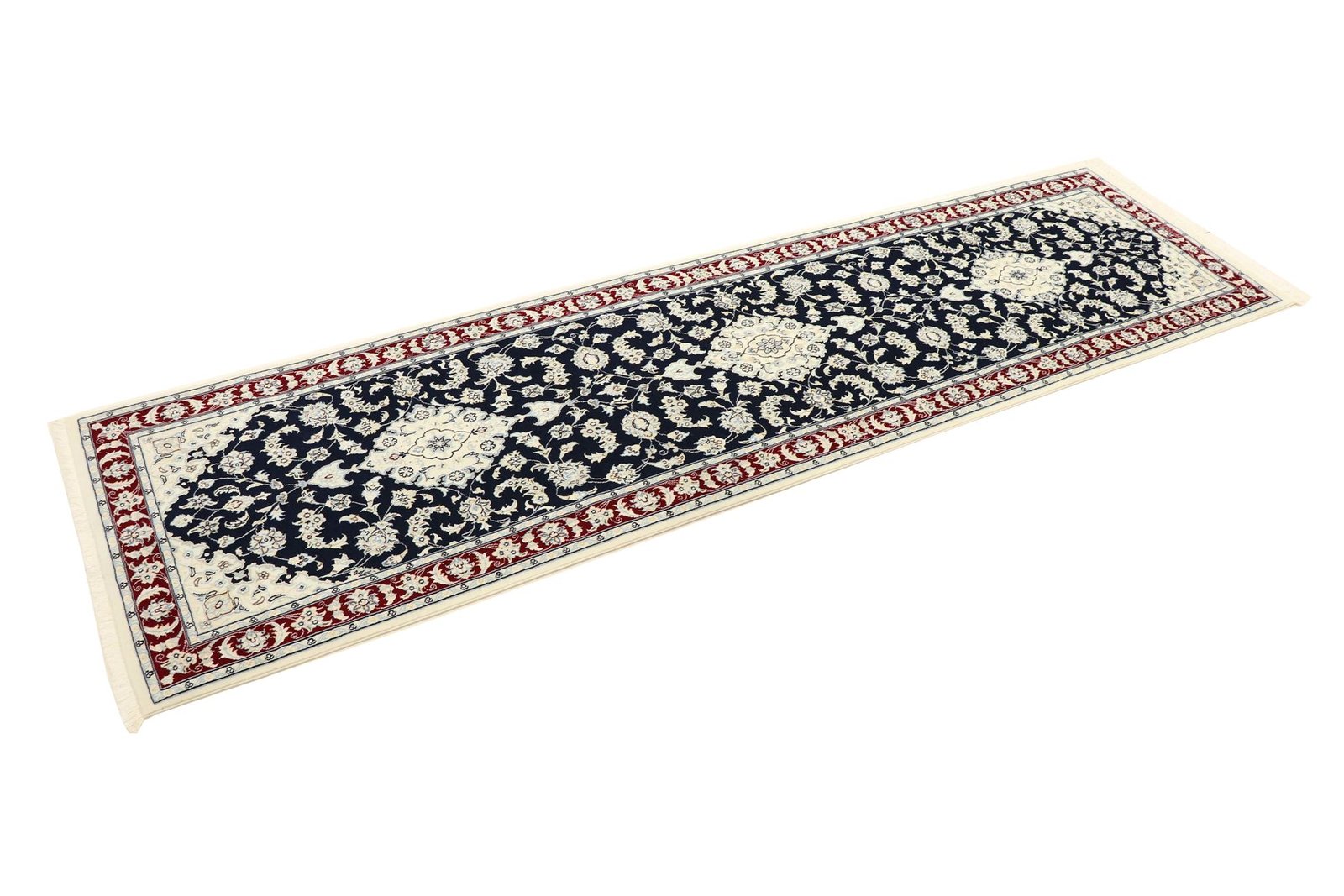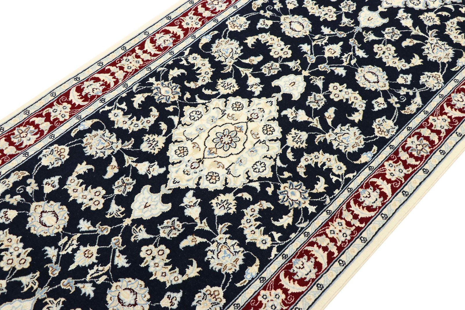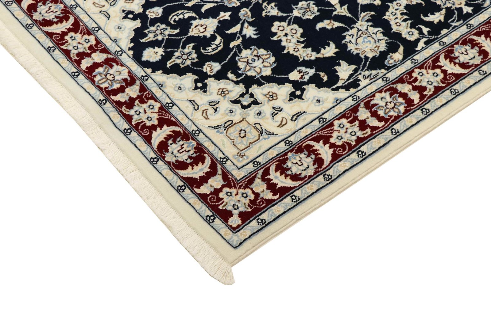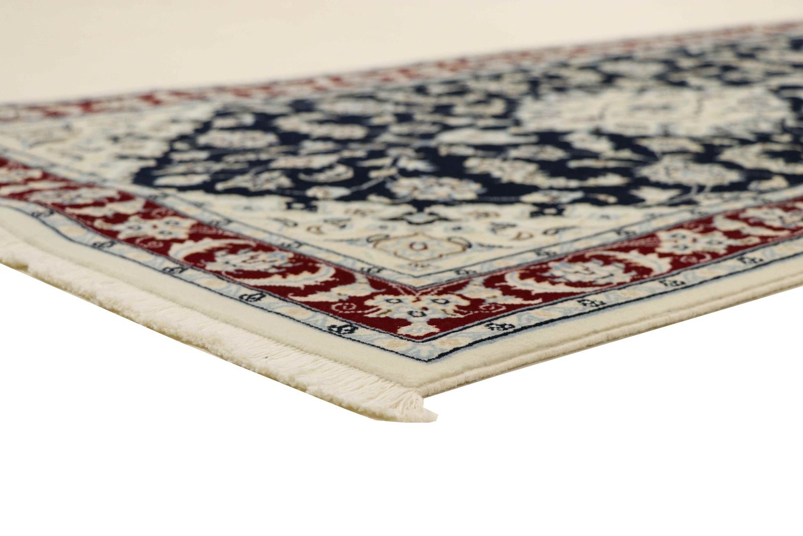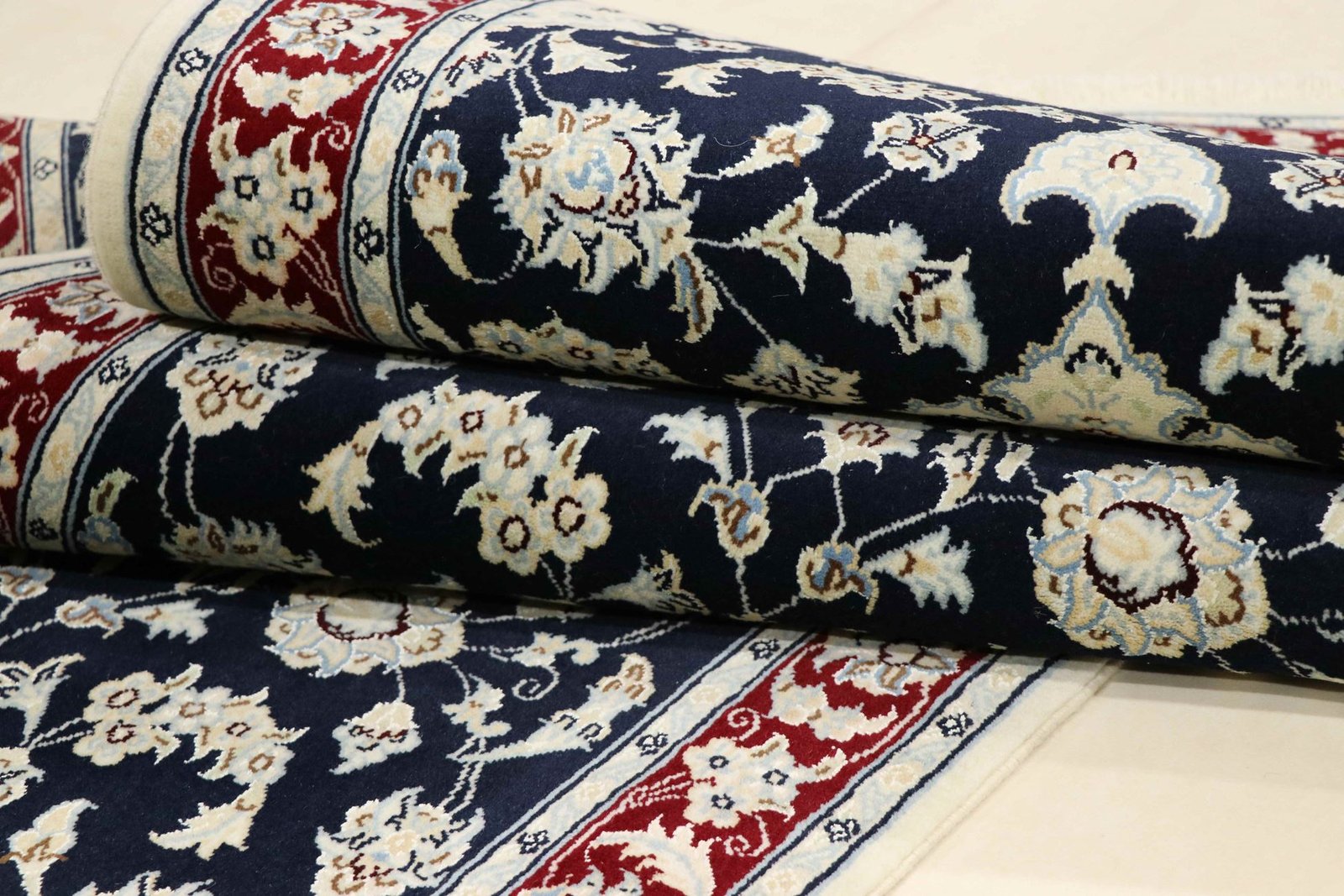 Nain is a charming city in southern Persia, known for its exquisite carpets. Carpets from Nain are characterised by their fine quality and elegant aesthetics, often decorated with luxurious silk in soft shades of white and light blue. The city has a long tradition of carpet weaving, and many masters from Nain are famous for their skills. Classic oriental carpets from Nain are hand-knotted, one-of-a-kind pieces that pass their unique patterns down from generation to generation. These carpets are not only known for their knot density and high-quality materials, but also for their harmonious colour combinations and traditional designs. Whether made of fine silk or soft cork wool, a Nain carpet adds a special and stylish touch to any room.