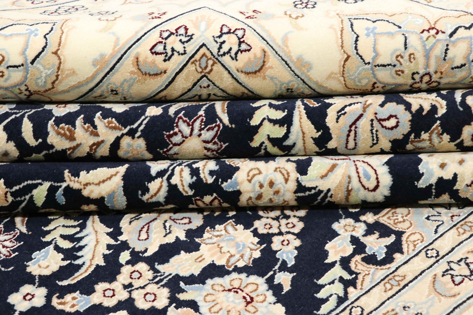 Nain is a charming city in southern Persia, famous for its exquisite carpets, which are renowned for their high quality and fine workmanship. Carpets from Nain are characterised by elegant colour combinations, especially white and light blue, and the use of the finest silk. This city has produced many renowned master weavers who are known for their precise craftsmanship and the production of particularly beautiful, soothing oriental carpets. Classic oriental carpets are hand-knotted unique pieces whose patterns have been passed down through generations. The origin influences the manufacture, material and motifs of the carpets. The high-quality Persian carpets, named after their city, are particularly impressive due to their first-class material, knot density, harmonious colours and traditional design. A carpet from Nain adds a special and elegant touch to any room.