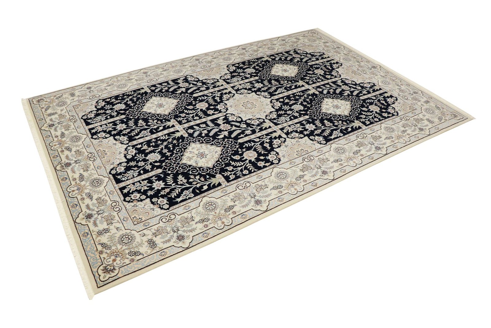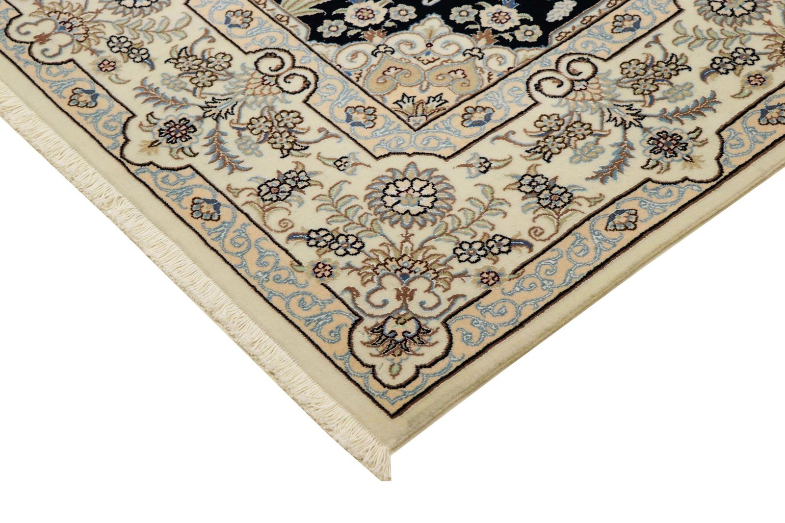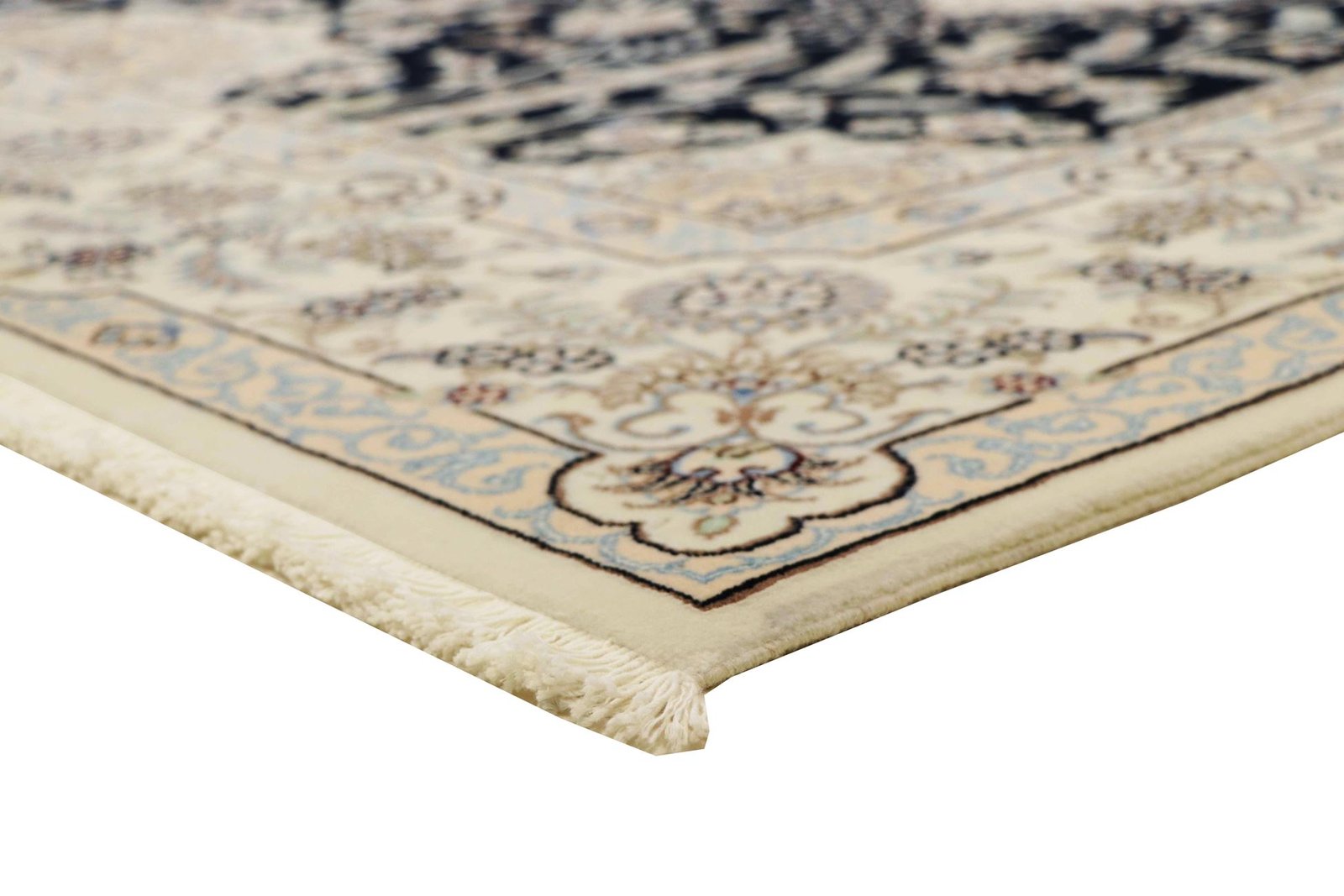 Nain is a charming city in southern Persia, known for its exquisite carpets. These carpets captivate with their fine quality and elegant aesthetics, often in soft colours such as white and light blue and decorated with fine silk. Nain has produced numerous famous master weavers whose works are prized for their delicacy and soothing beauty. Classic oriental carpets from Nain are hand-knotted, unique pieces that retain their typical patterns as they are passed down from generation to generation. The manufacturing method, material and motifs of a carpet are strongly influenced by its origin. Particularly high-quality Persian carpets bear the name of their city of origin and are characterised by first-class materials, knot density, unique colour harmonies and traditional design. Whether made of precious silk or soft cork wool, a carpet from Nain adds a special and elegant touch to any room.