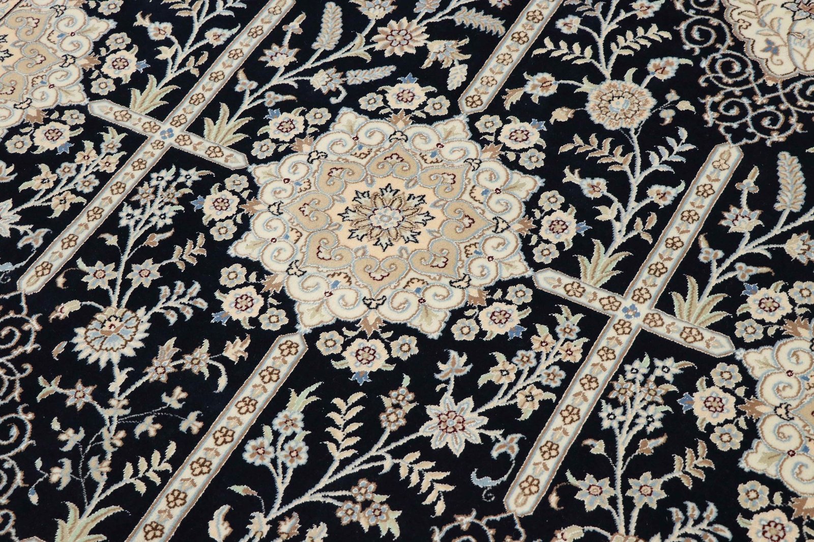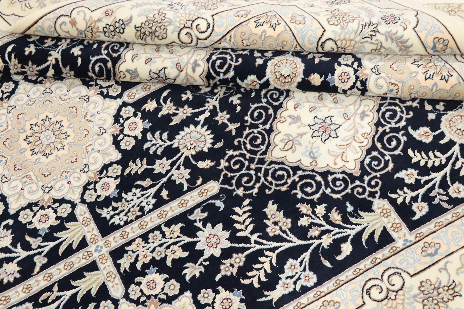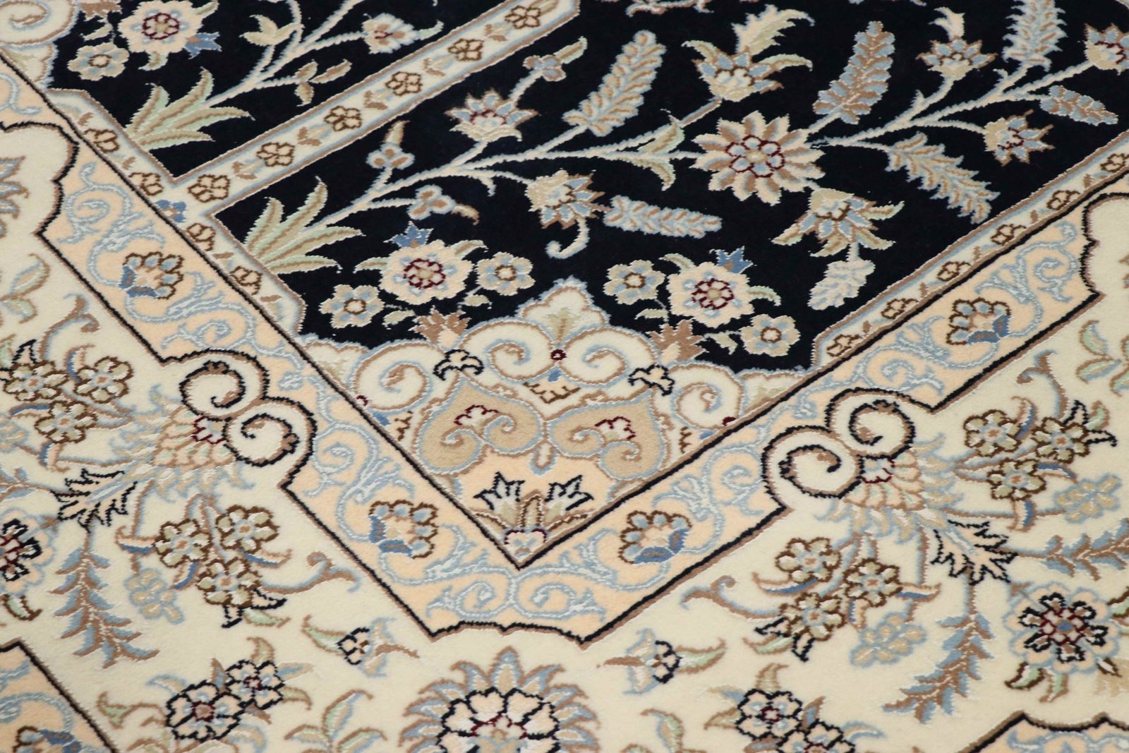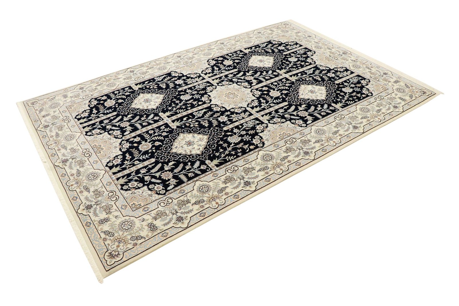 Nain is a charming city in southern Persia, known for its exquisite carpets. These carpets captivate with their fine quality and elegant aesthetics, often in soft colours such as white and light blue and decorated with fine silk. Nain has produced numerous famous master weavers whose works are prized for their delicacy and soothing beauty. Classic oriental carpets from Nain are hand-knotted, unique pieces that retain their typical patterns as they are passed down from generation to generation. The manufacturing method, material and motifs of a carpet are strongly influenced by its origin. Particularly high-quality Persian carpets bear the name of their city of origin and are characterised by first-class materials, knot density, unique colour harmonies and traditional design. Whether made of precious silk or soft cork wool, a carpet from Nain adds a special and elegant touch to any room.