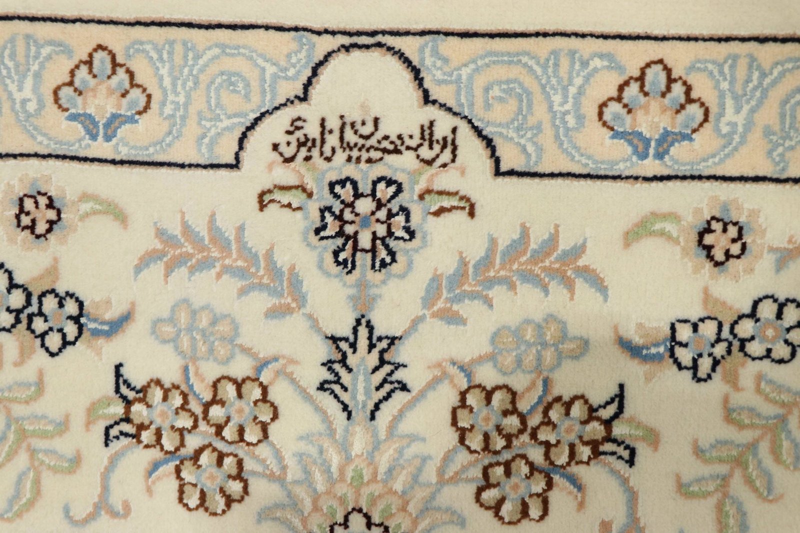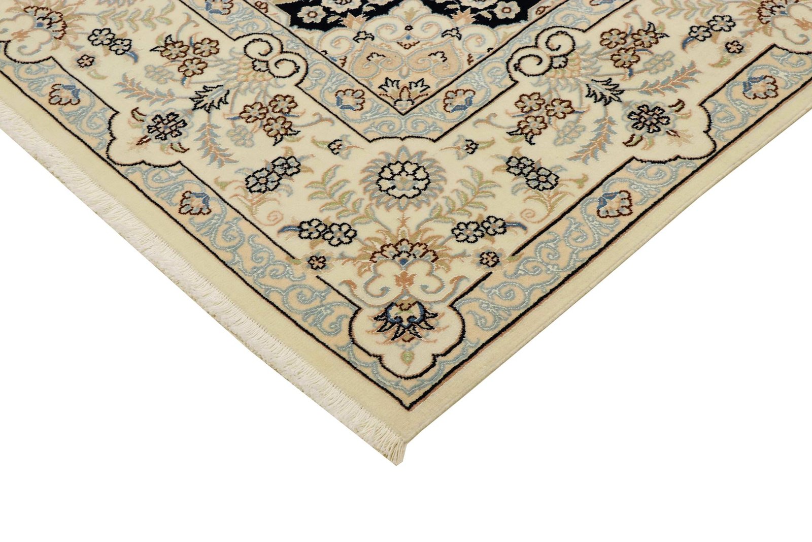 Nain, a charming city in southern Persia, is famous for its exquisite carpets, which captivate with their fine quality and artistic designs. Carpets from Nain are characterised by their dominant white and light blue tones and are often decorated with fine silk. These carpets are the result of masterful craftsmanship that has been passed down from generation to generation. Classic oriental carpets, such as those from Nain, are hand-knotted unique pieces that captivate with their high knot density, high-quality materials and unique colour harmonies. Persian carpets from Nain in particular are known for their fine details and traditional designs. Whether made from precious silk or soft cork wool, these carpets lend every room an elegant and luxurious atmosphere.