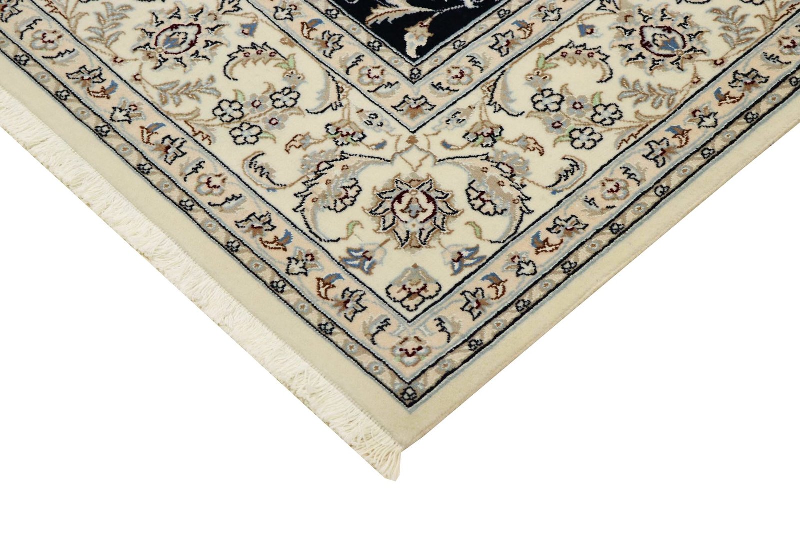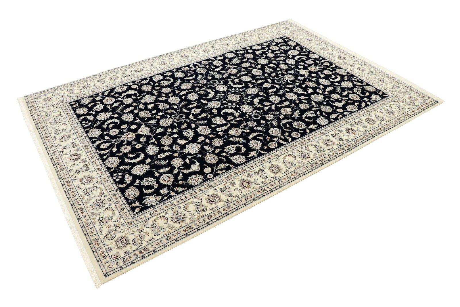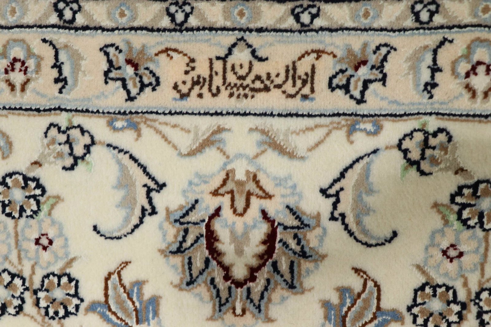 Nain, a picturesque city in southern Persia, is famous for its exquisite carpets, which captivate with their simple elegance and fine craftsmanship. Carpets from Nain are characterised by their dominant white and light blue tones, often refined with silk, and offer a harmonious interplay of colours and patterns. The town has a long tradition of carpet masters who are renowned for their fine and soothing oriental carpets. Classic oriental carpets, such as those from Nain, are hand-knotted unique pieces whose patterns are passed down from generation to generation. The high knot density, first-class materials such as silk and cork wool, and traditional designs make these carpets true works of art. Whether for luxurious interiors or as a decorative highlight, a Nain carpet adds a special touch and timeless beauty to any room.