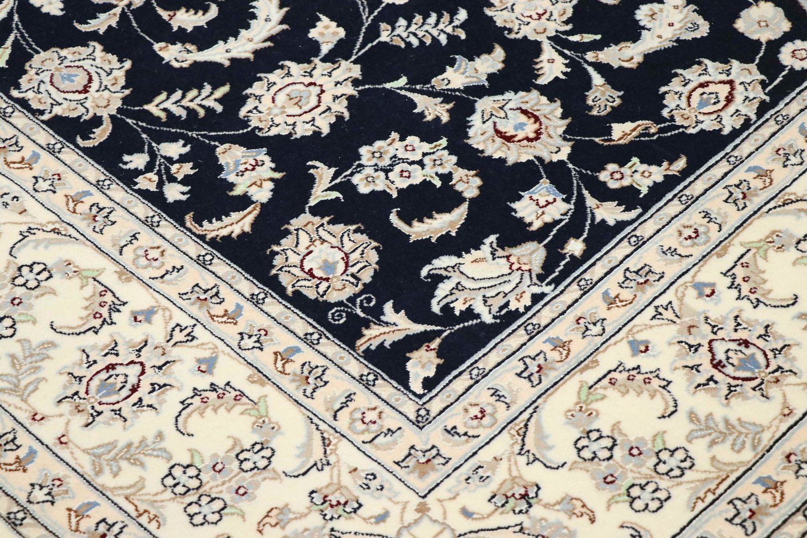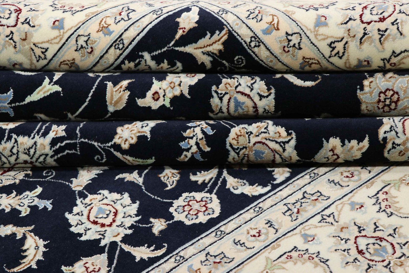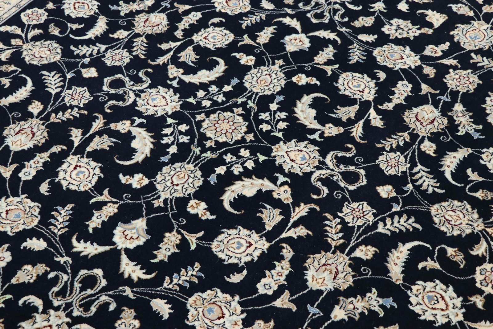 Nain, a picturesque city in southern Persia, is famous for its exquisite carpets, which captivate with their simple elegance and fine craftsmanship. Carpets from Nain are characterised by their dominant white and light blue tones, often refined with silk, and offer a harmonious interplay of colours and patterns. The town has a long tradition of carpet masters who are renowned for their fine and soothing oriental carpets. Classic oriental carpets, such as those from Nain, are hand-knotted unique pieces whose patterns are passed down from generation to generation. The high knot density, first-class materials such as silk and cork wool, and traditional designs make these carpets true works of art. Whether for luxurious interiors or as a decorative highlight, a Nain carpet adds a special touch and timeless beauty to any room.