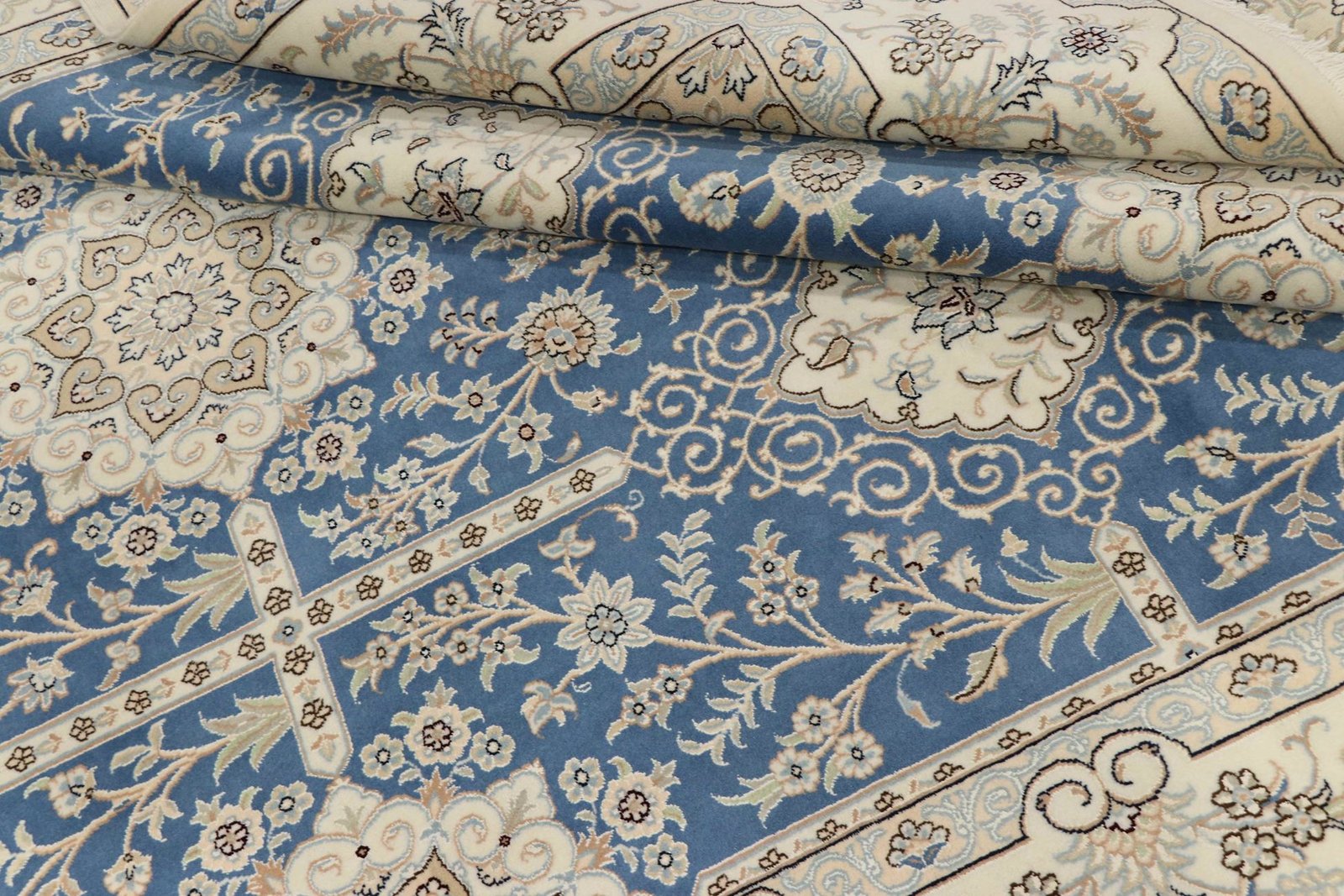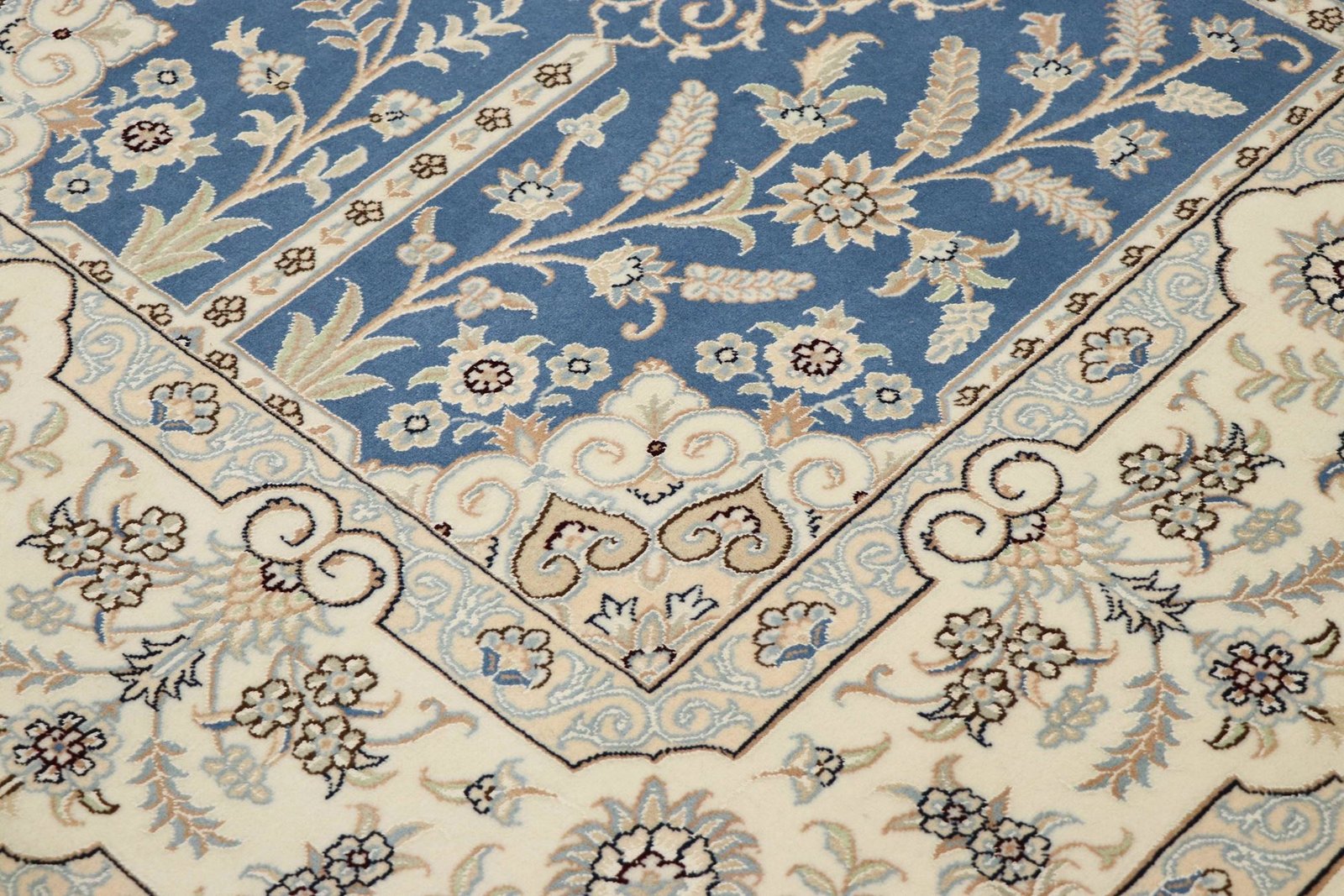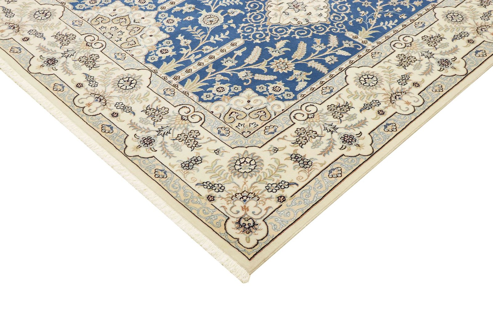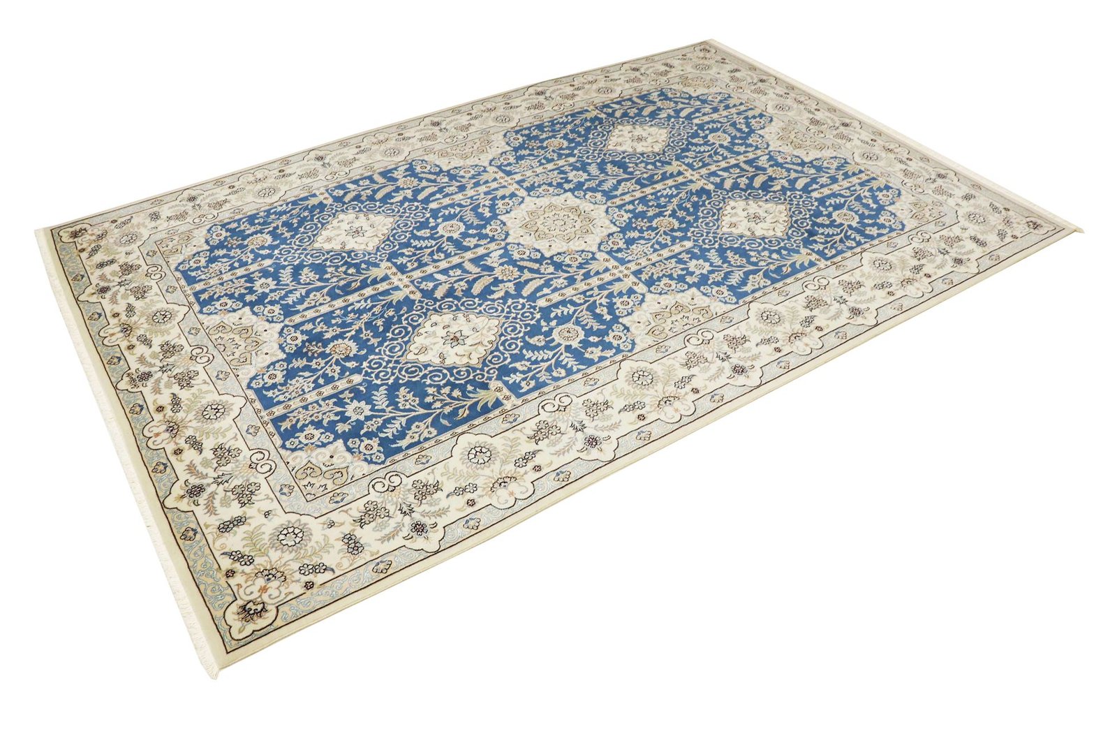 Nain, a picturesque town in southern Persia, is famous for its exquisite carpets. Nain carpets are characterised by their fine quality and elegant designs, often in white and light blue with silk. The town has a long tradition of carpet masters who are known for their detailed and soothing oriental carpets. These classic carpets are hand-knotted unique pieces that are passed down from generation to generation thanks to their unique patterns and designs. The origin of the carpets has a significant influence on the manufacturing method, the material and the motifs. High-quality Persian carpets, named after their city of origin, are characterised by first-class materials, high knot density and harmonious colours. Whether made of fine silk or soft cork wool, an oriental carpet from Nain adds a special touch to any room.