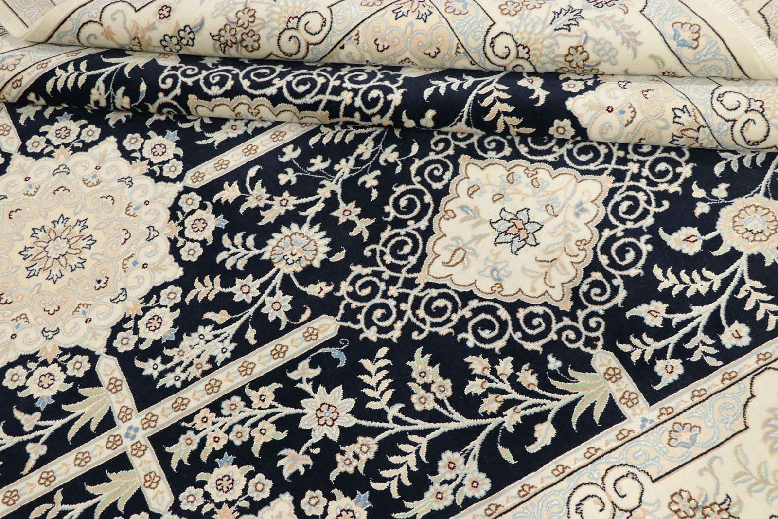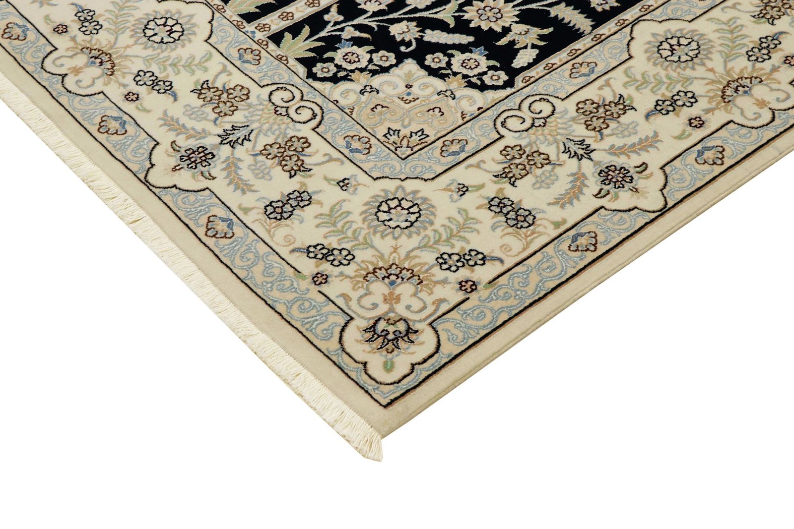 Nain is a charming city in southern Persia, known for its exquisite carpets. These carpets are characterised by their elegant colour combinations of white and light blue and the use of fine silk. The city is famous for its masterful knotting techniques, which have been passed down from generation to generation. Classic oriental carpets from Nain are hand-knotted, unique pieces that captivate with their knot density, first-class materials and unique colour harmonies. Tradition and craftsmanship make these carpets true works of art. With materials such as precious silk or soft cork wool, a Nain carpet adds a special touch to any room and reflects the fascinating beauty and tranquillity of the Orient.