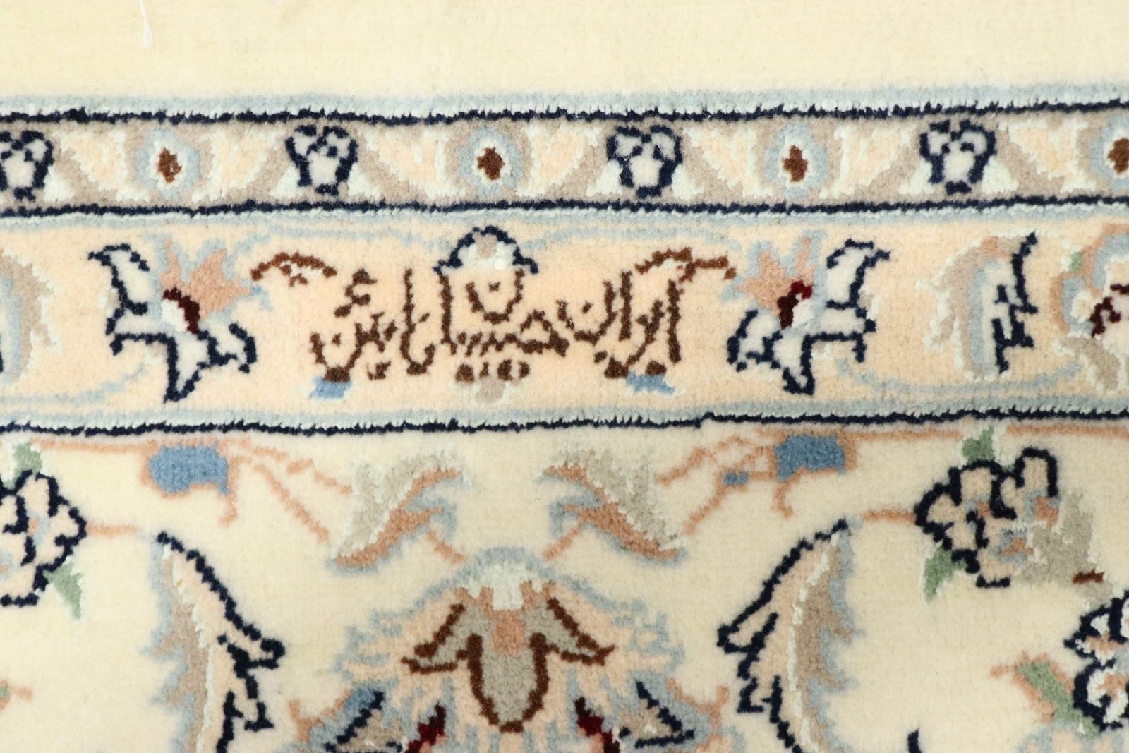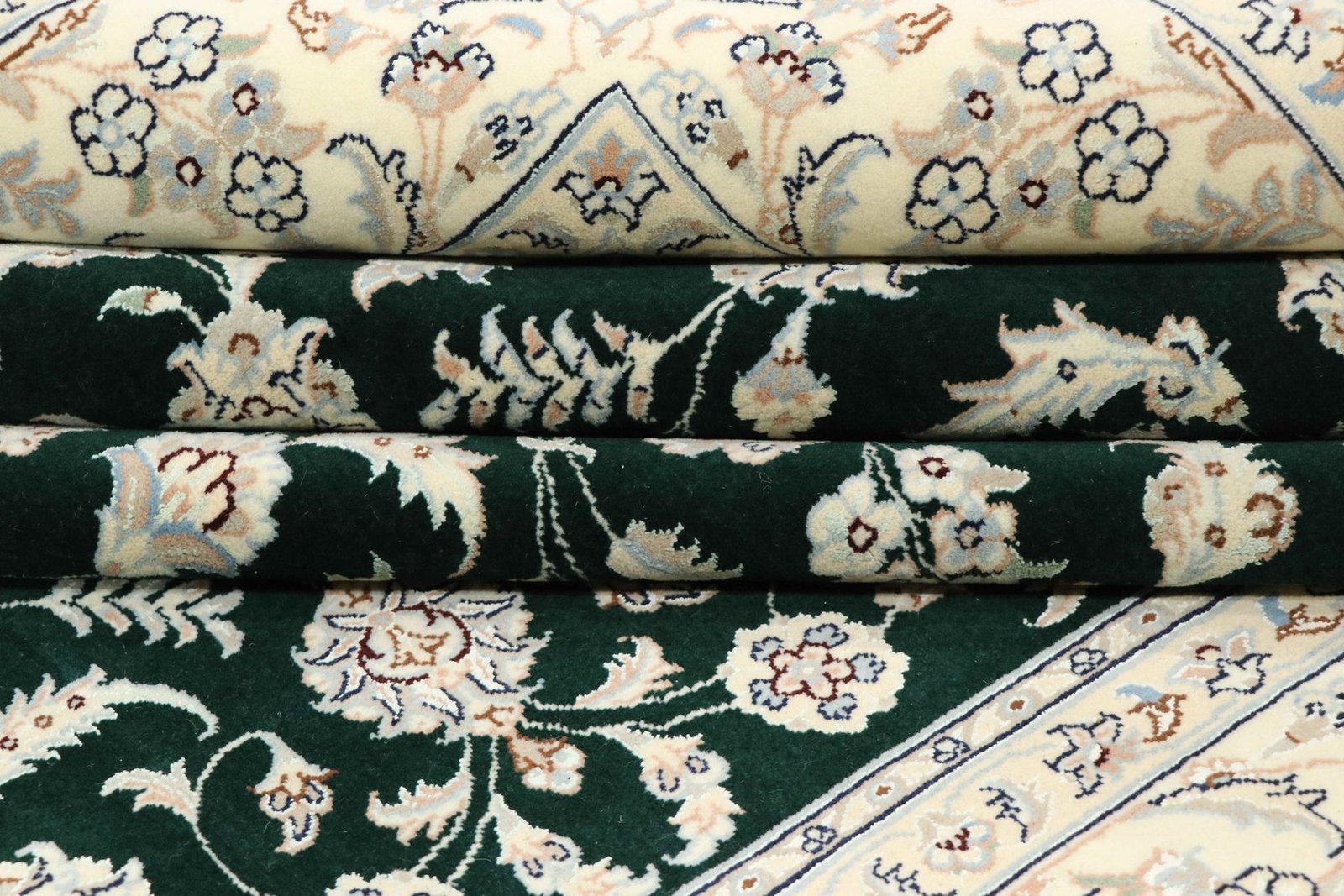 Nain, a picturesque town in southern Persia, is famous for its exquisite carpets. Carpets from Nain are characterised by their fine quality and elegant colour schemes, particularly their white and light blue silk tones. This town has a long tradition of carpet weaving, shaped by renowned masters who are known for their outstanding craftsmanship. Classic oriental carpets from Nain are unique, hand-knotted pieces whose typical patterns are passed down from generation to generation. The manufacturing method, materials and motifs reflect the cultural characteristics of the region. Particularly high-quality Persian carpets, such as those from Nain, impress with their first-class materials, high knot density and harmonious colours. Whether made from precious silk or soft cork wool, a Nain carpet adds a special and luxurious touch to any room.
