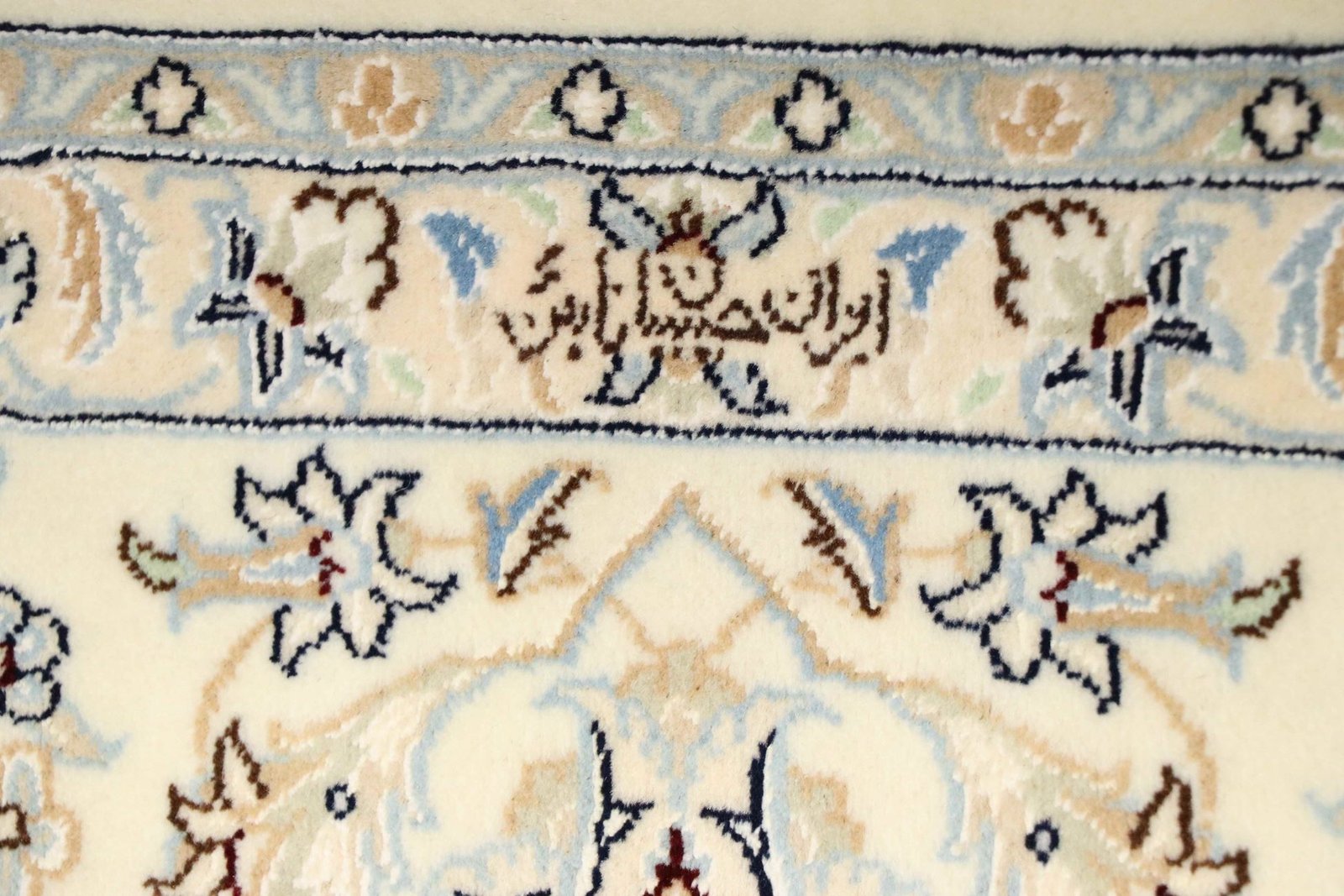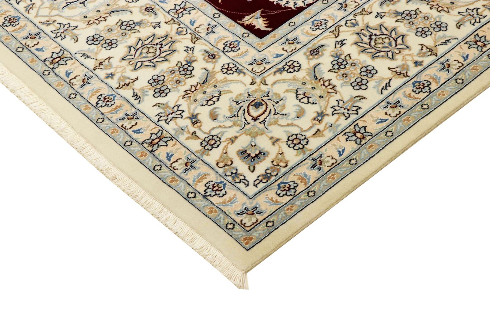 Nain, a picturesque town in southern Persia, is famous for its fine carpets, which captivate with their high quality and elegant designs. Nain carpets are often white and light blue and contain fine silk threads. The town has produced many renowned master weavers who are known for their exquisite craftsmanship. Classic oriental carpets from Nain are unique, hand-knotted pieces whose patterns have been passed down from generation to generation. The origin influences the manufacture, material and motifs of these carpets. Particularly high-quality Persian carpets, named after their city, are characterised by first-class materials, high knot density, unique colour harmonies and traditional designs. Whether made of precious silk or soft cork wool, an oriental carpet from Nain adds a special touch to any room.