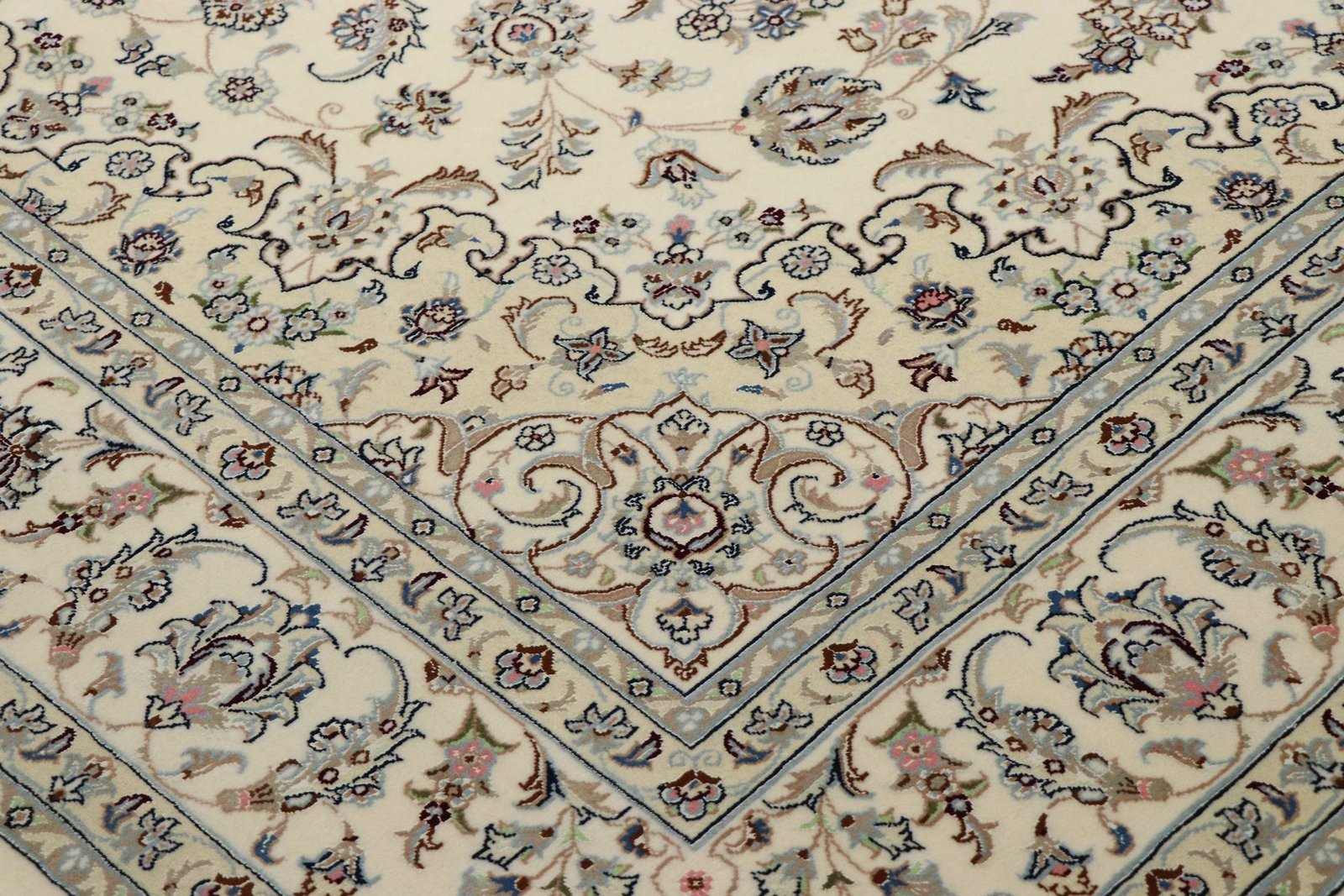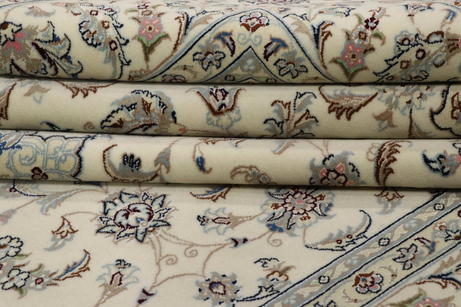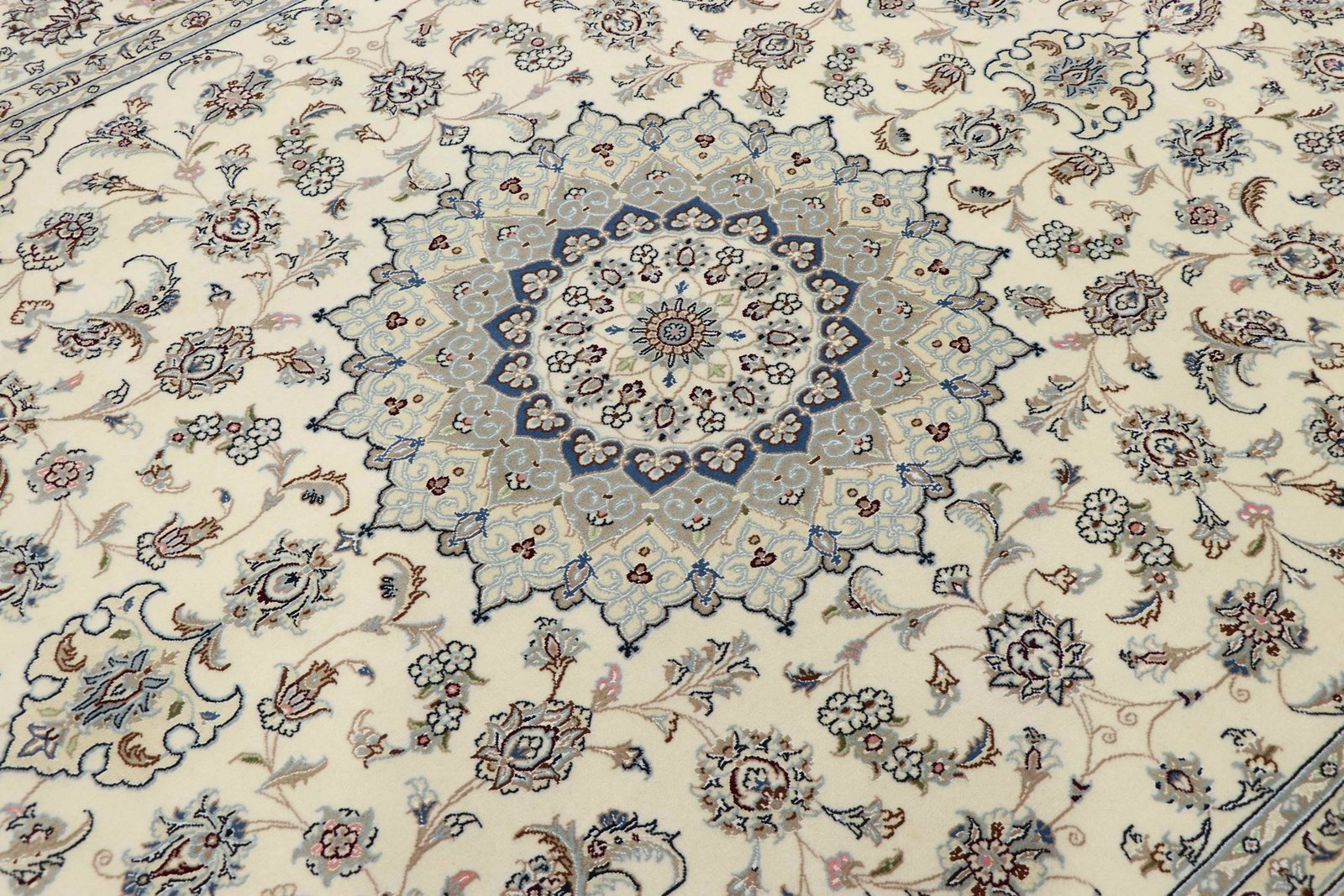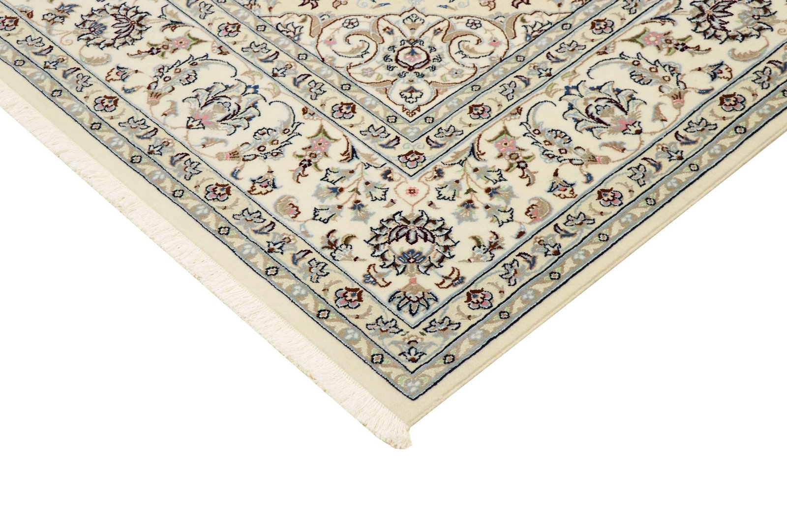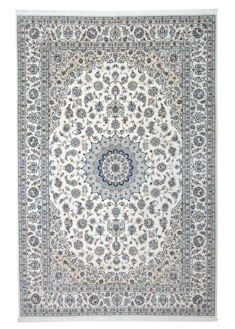 Nain, a picturesque city in southern Persia, is known for its fine carpets. These are characterised by elegant designs in white and light blue and are often decorated with silk. The city has produced many renowned carpet weavers who are valued for their precise craftsmanship and beautiful, soothing oriental carpets. Classic oriental carpets from Nain are hand-knotted unique pieces whose patterns are passed down from generation to generation. The origin influences the manufacture, materials and motifs of these carpets. Particularly high-quality Persian carpets from Nain are characterised by excellent materials, high knot density, harmonious colours and traditional designs. Whether made of precious silk or soft cork wool, a Nain carpet adds a special touch to any room.