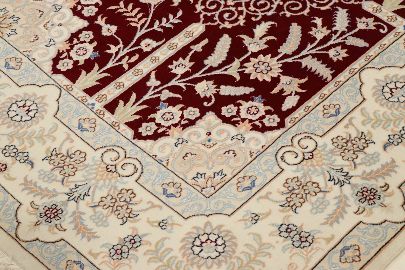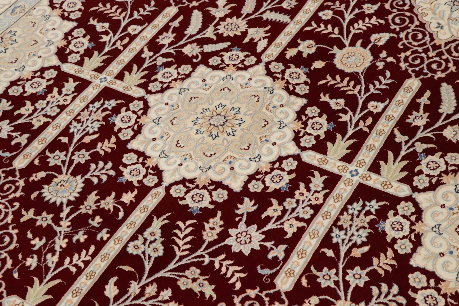 Nain, a charming city in southern Persia, is known for its fine carpets, which range from simple to the highest quality. Nain carpets captivate with their elegant designs in white and light blue, often embellished with silk. The city has a long tradition of carpet weaving and has produced many renowned masters who are known for their precise and fine work. Classic oriental carpets from Nain are hand-knotted, unique pieces whose patterns have been passed down from generation to generation. These carpets are characterised by first-class materials, high knot density and harmonious colours. Whether made of precious silk or soft cork wool, an oriental carpet from Nain adds a special touch to any room and reflects the region’s traditional craftsmanship.