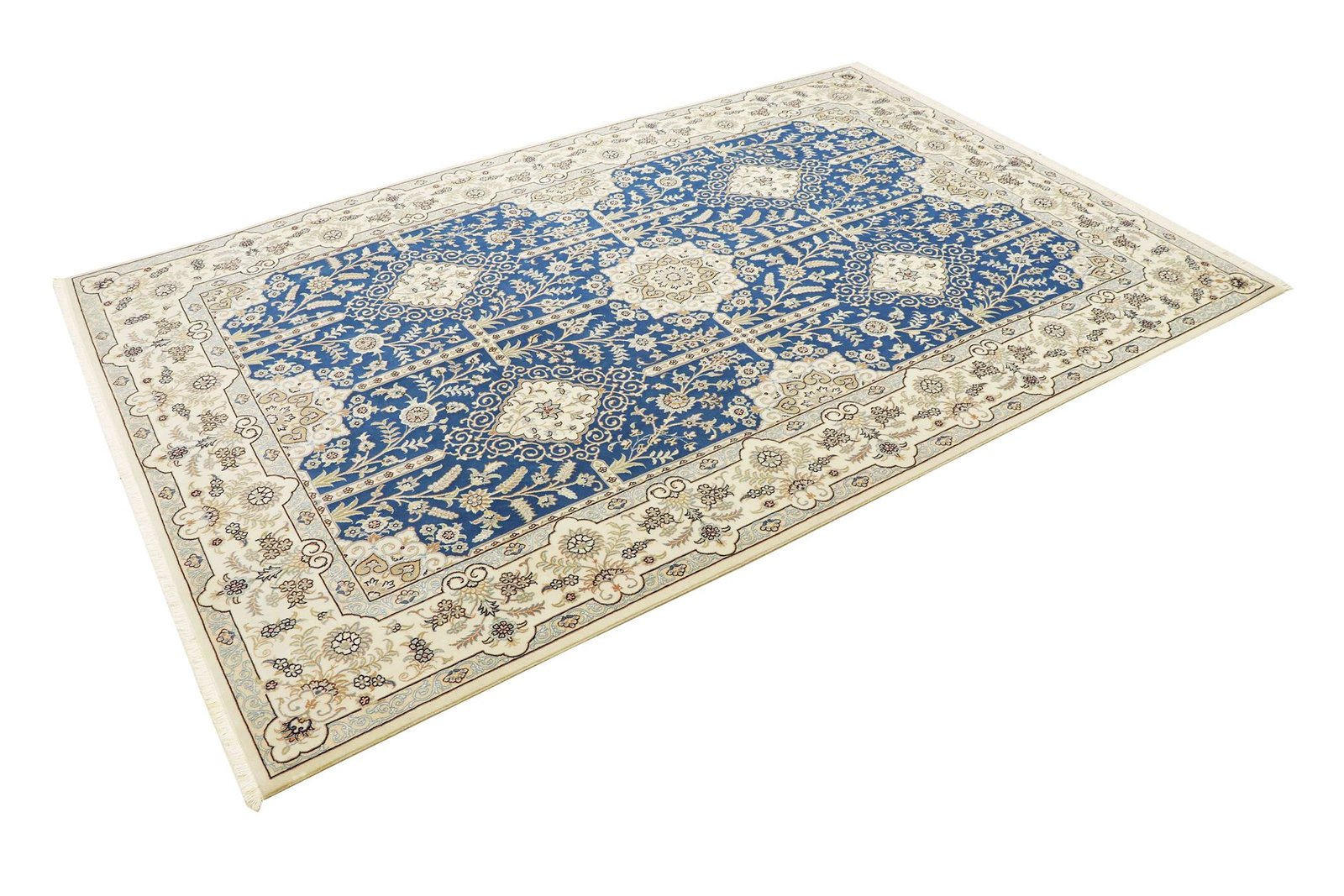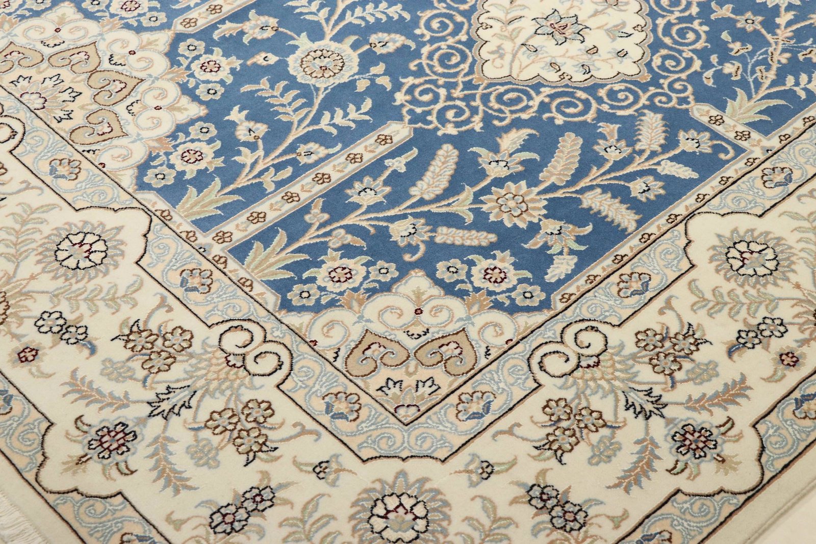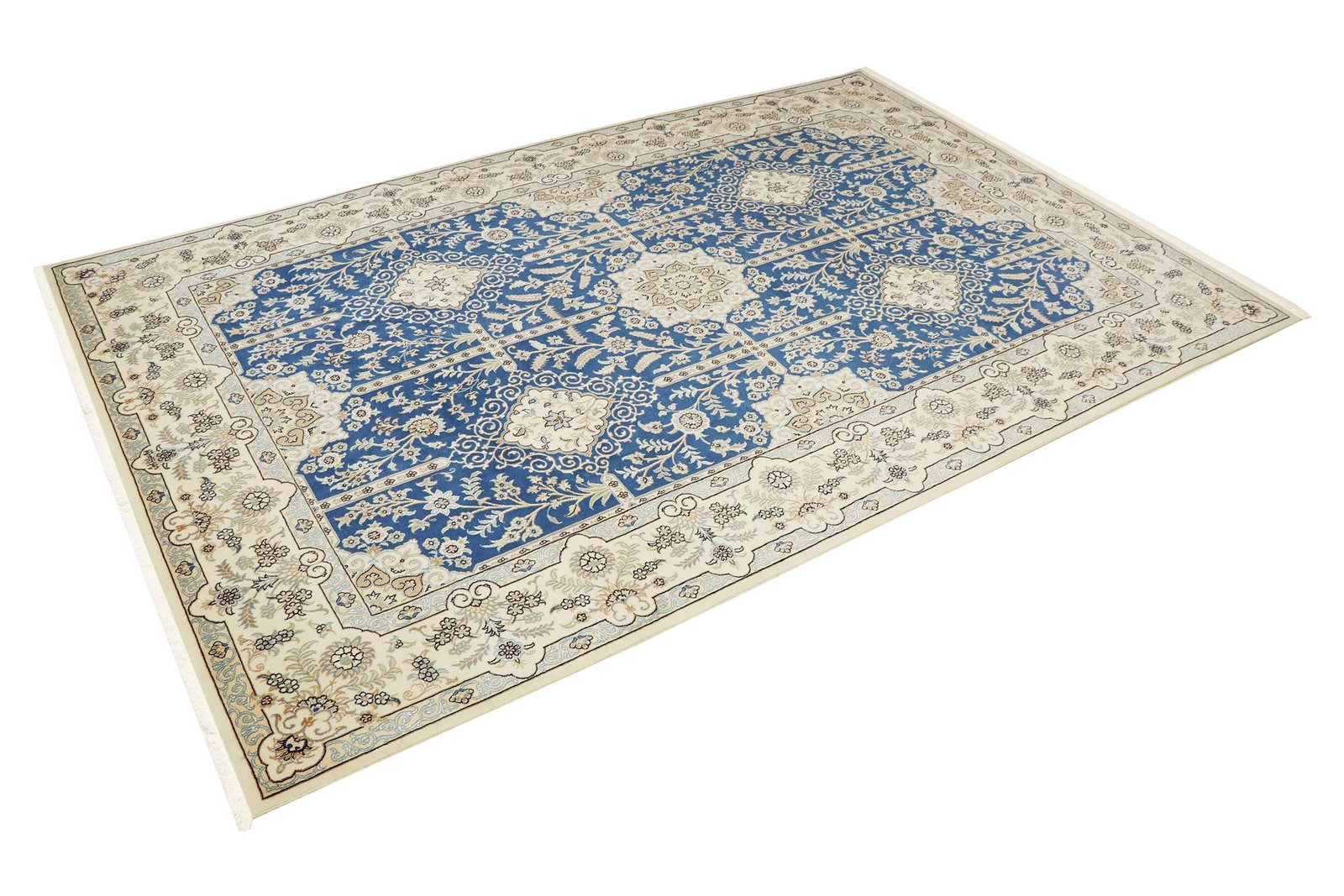 Nain, a charming city in southern Persia, is famous for its exquisite carpets. These are often in elegant shades of white and light blue and are frequently finished with silk. Nain has produced many renowned carpet weavers who are known for their fine craftsmanship. Classic oriental carpets from Nain are hand-knotted unique pieces whose patterns have been passed down through generations. The origin influences the manufacturing method, the material and the motifs of the carpets. Particularly high-quality Persian carpets from Nain are characterised by excellent materials, high knot density, harmonious colours and traditional designs. Whether made of fine silk or soft cork wool, a carpet from Nain adds a special touch to any room and impresses with its beauty and quality.