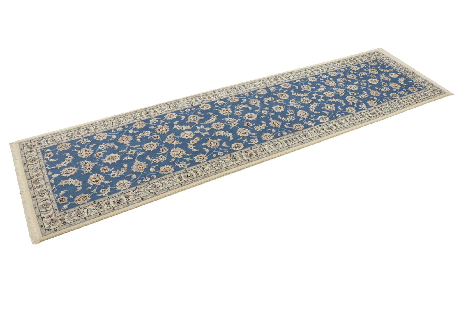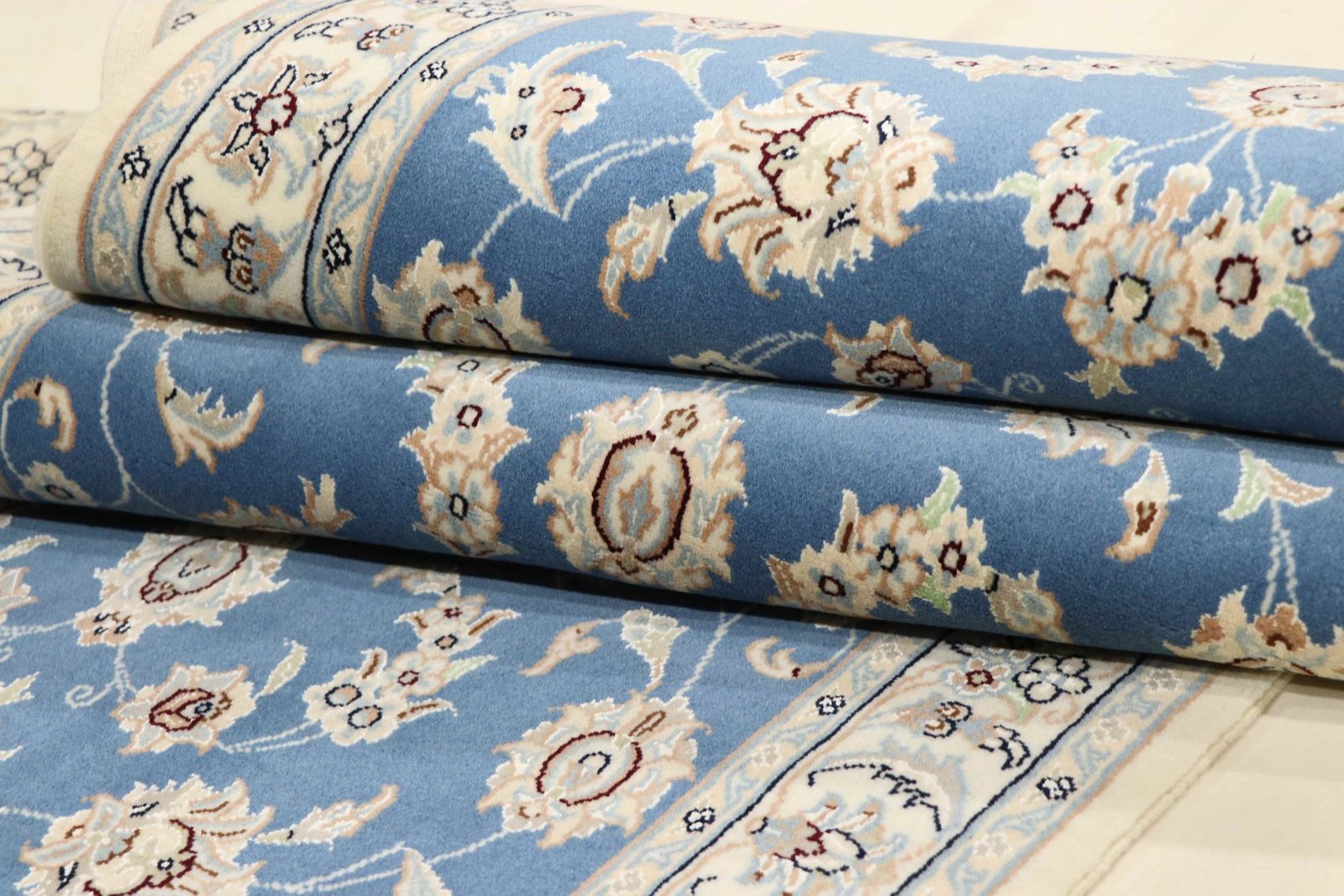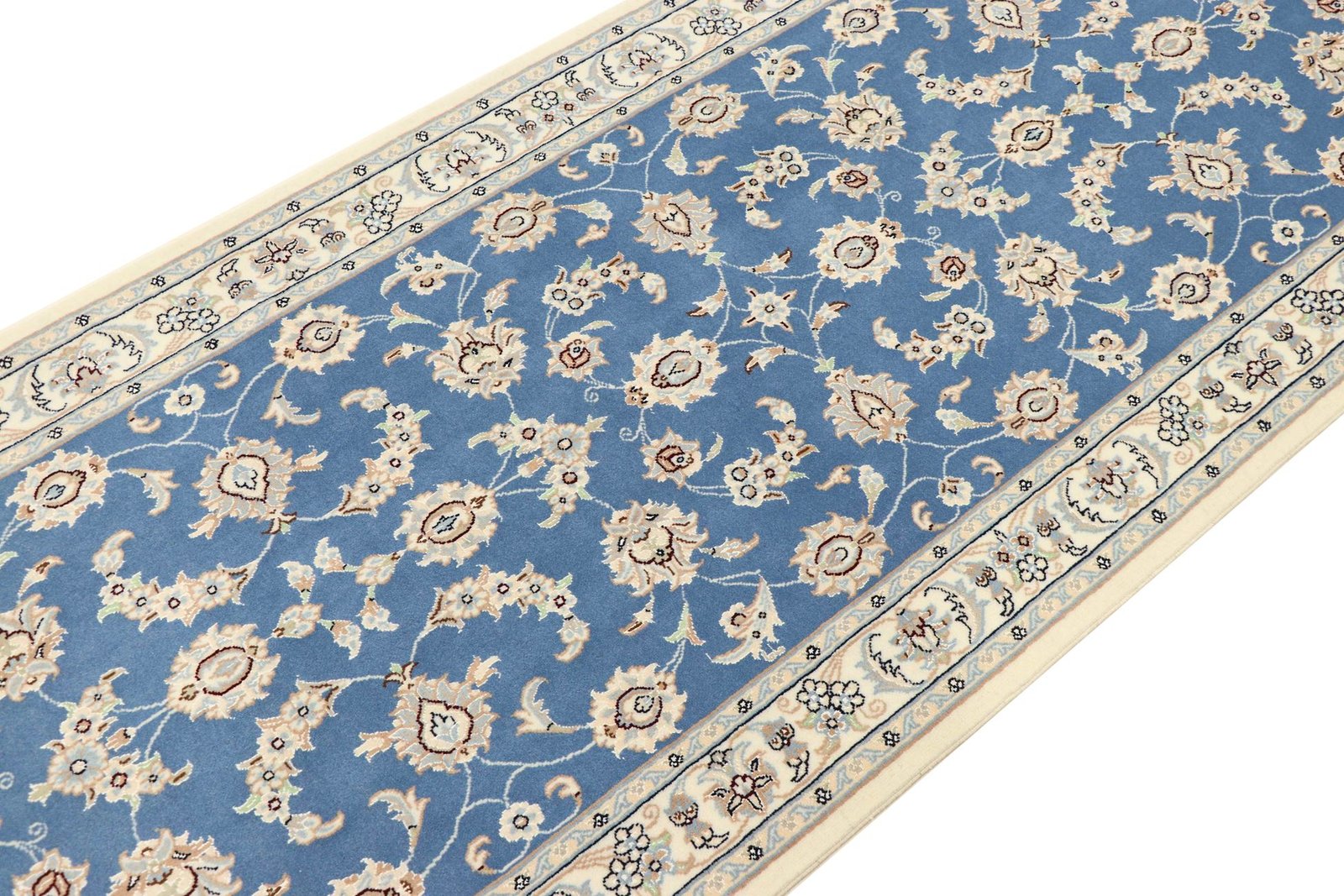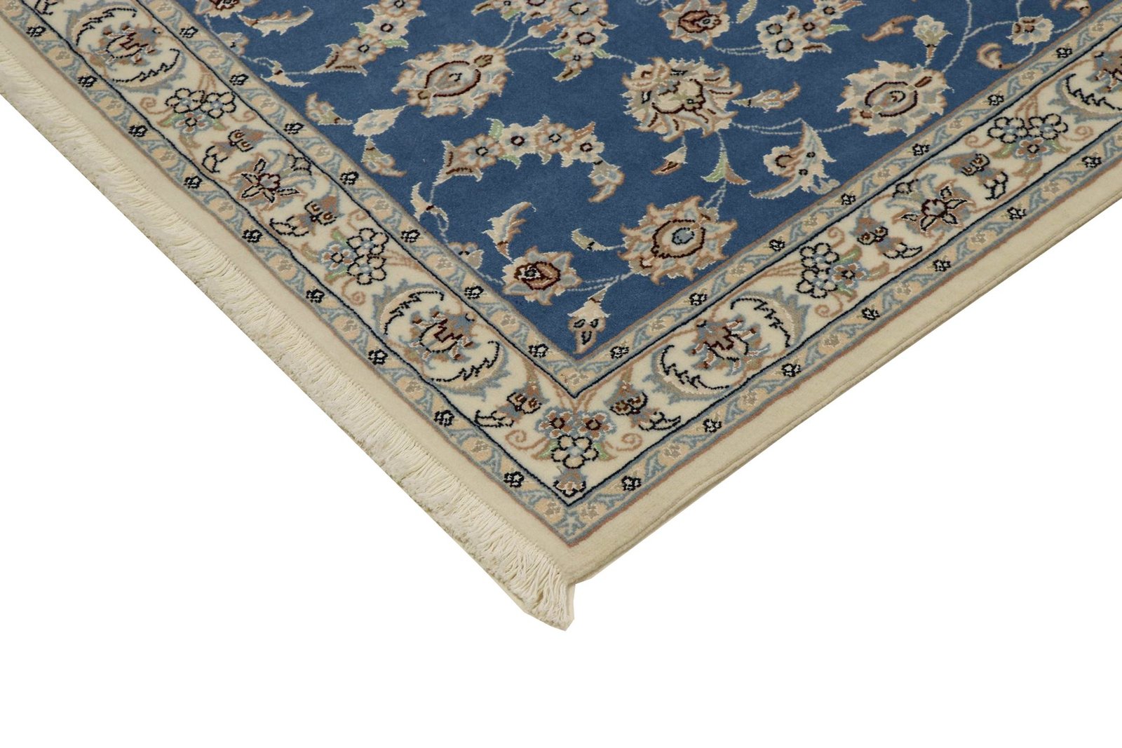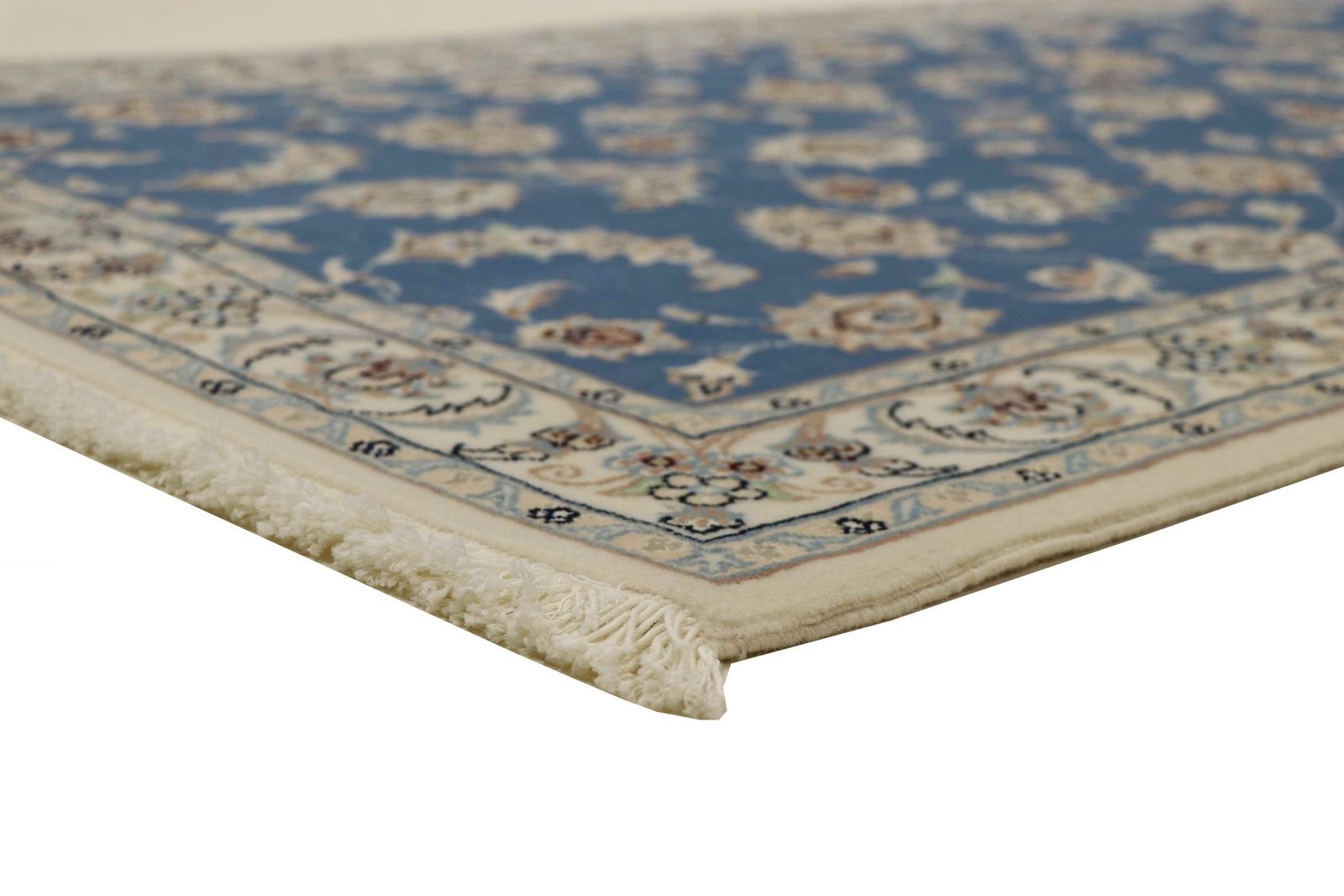 Nain, a picturesque city in southern Persia, is famous for its exquisite carpets. These carpets are often in elegant shades of white and light blue and frequently contain fine silk. Nain has a long tradition of carpet weaving and is known for its master craftsmen, who are valued for their precision and finesse. Classic oriental carpets from Nain are hand-knotted unique pieces whose patterns are passed down from generation to generation. The origin influences the material, manufacturing method and motifs of the carpets. Particularly high-quality Persian carpets from Nain are characterised by first-class materials, high knot density and harmonious colours. Whether made of precious silk or soft cork wool, Nain carpets lend every room a special and elegant touch.