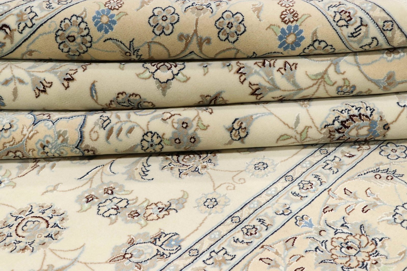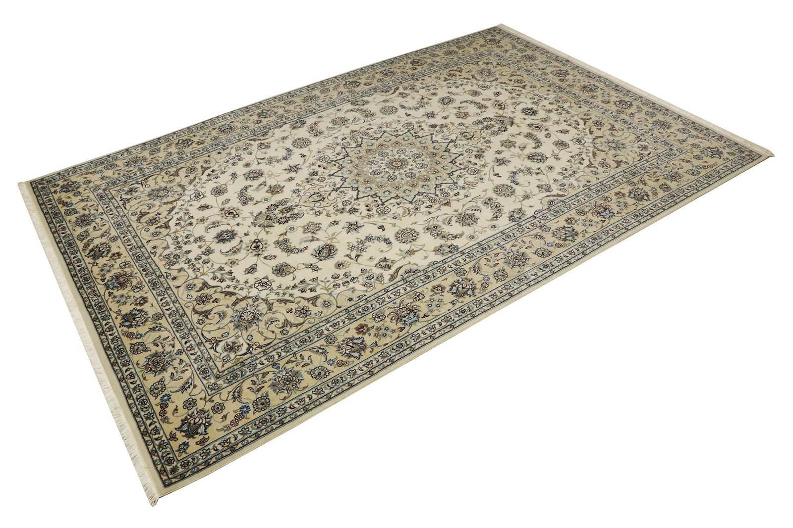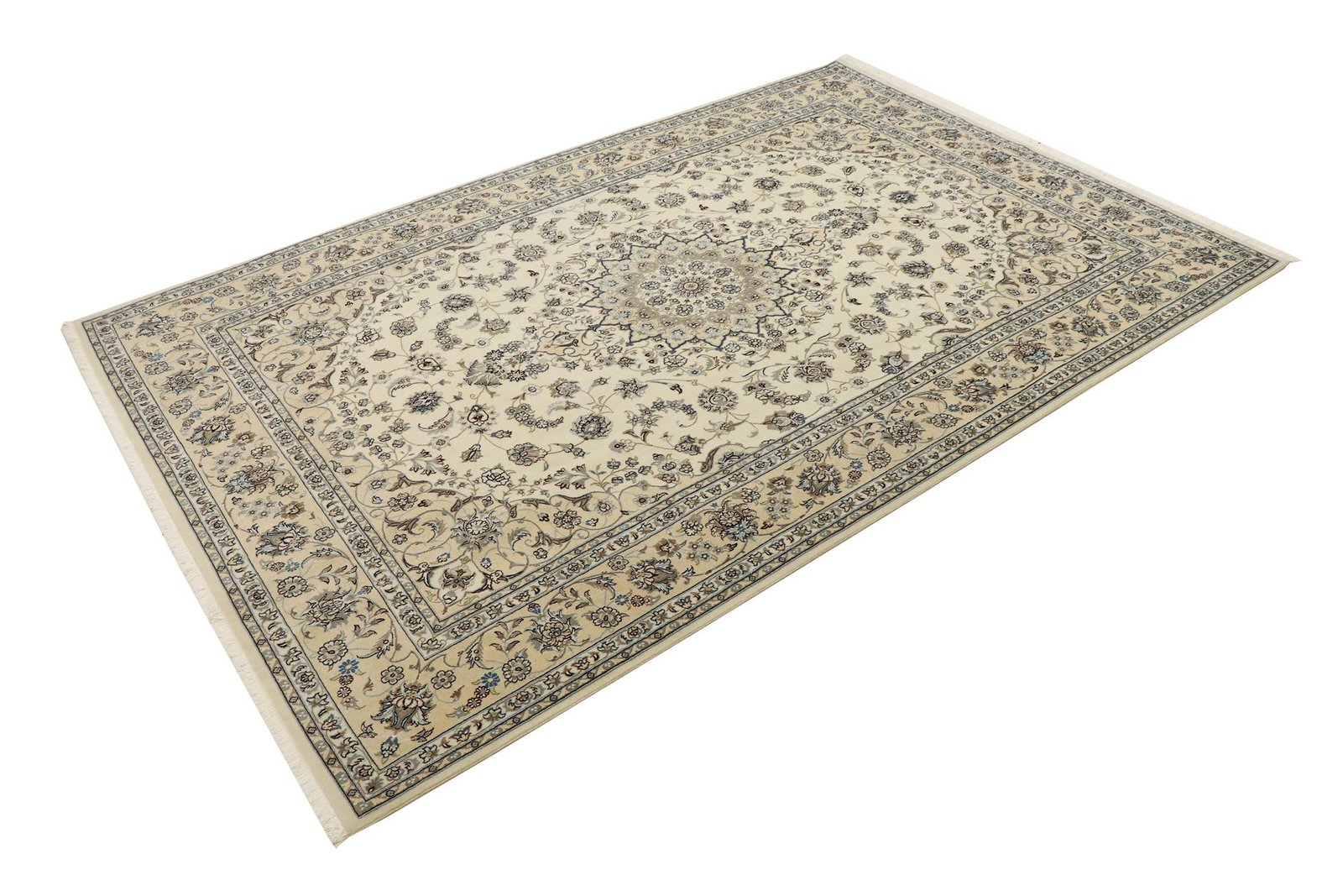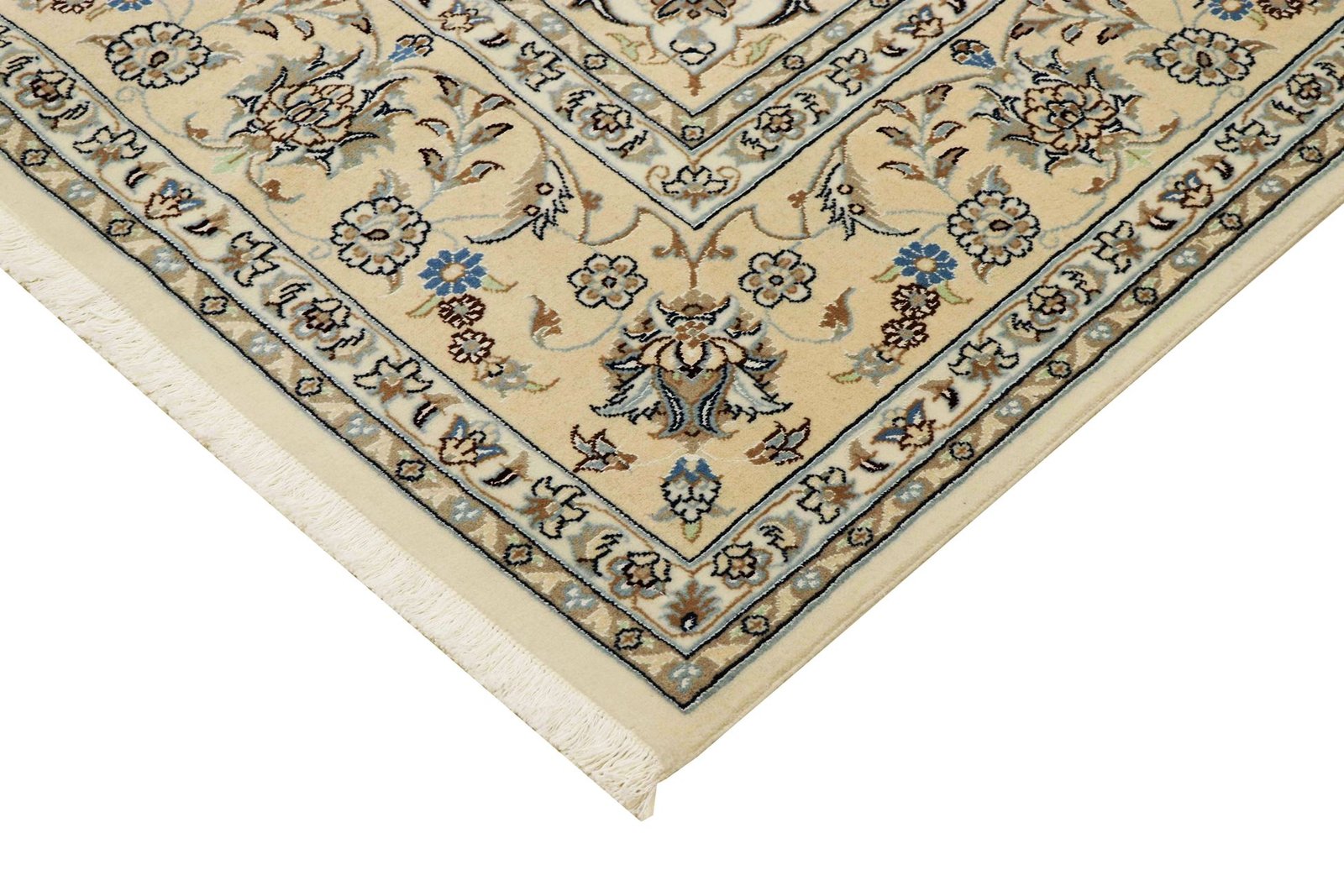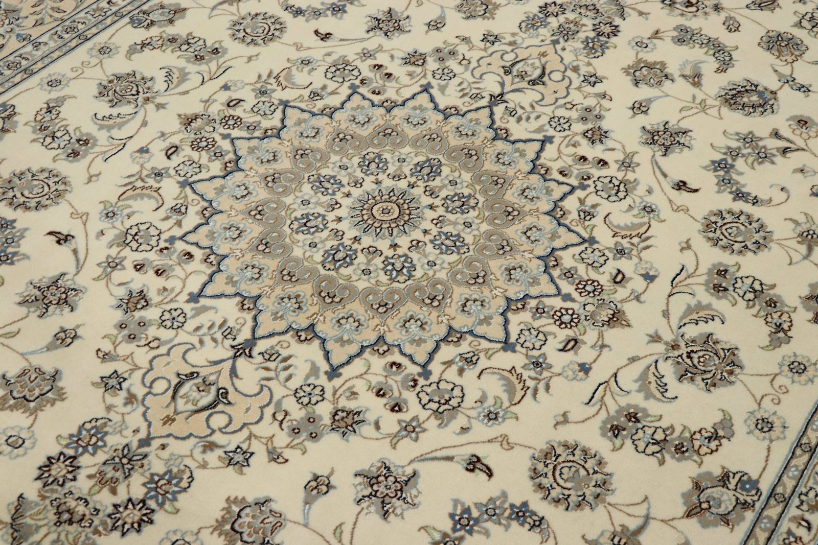 Nain, a charming town in southern Persia, is famous for its exquisite carpets, which range from fine quality to particularly elegant designs. Carpets from Nain are often in elegant shades of white and light blue and frequently decorated with silk. This town has a long tradition of carpet weaving and is home to many renowned masters who are known for their precise and artistic work. Classic oriental carpets from Nain are unique, hand-knotted pieces whose patterns have been passed down from generation to generation. The origin influences the material, manufacture and motifs of the carpets. Particularly high-quality Persian carpets from Nain impress with their first-class materials, high knot density and harmonious colours. Whether made of silk or soft cork wool, a Nain carpet adds a special touch to any room.