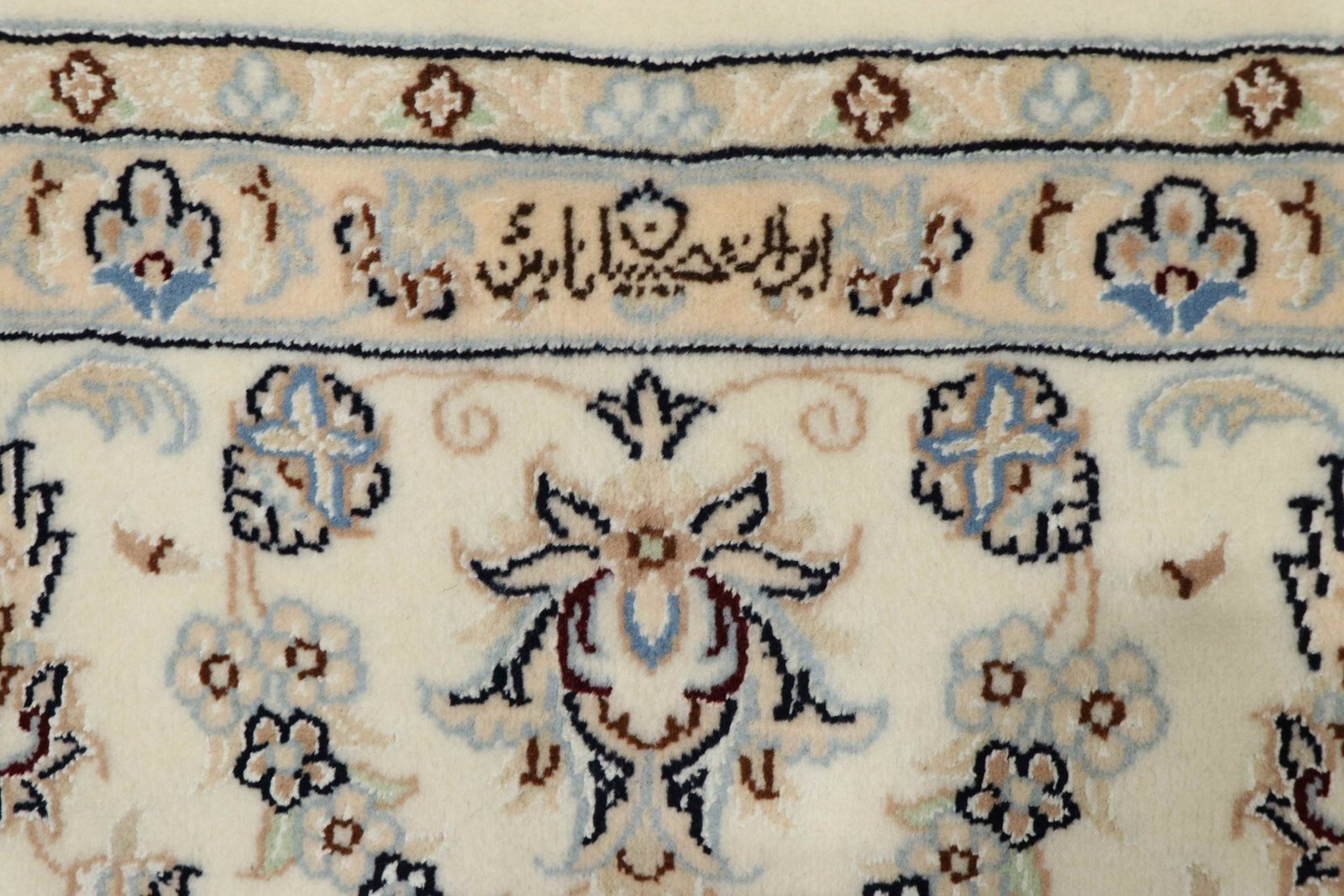 Nain, a charming city in southern Persia, is known for its high-quality carpets. Nain carpets captivate with their fine quality and often elegant colours such as white and light blue, frequently complemented with silk. The city has a long tradition in the art of carpet weaving and has produced many renowned masters who are valued for their artistic and detailed carpets. Classic oriental carpets from Nain are hand-knotted unique pieces whose patterns are passed down from generation to generation. The origin influences the manufacturing method, the material and the motifs of the carpets. Particularly high-quality Persian carpets, named after their city, are characterised by excellent materials, high knot density and harmonious colours. Whether made of precious silk or soft cork wool, Nain carpets add a special touch to any room.