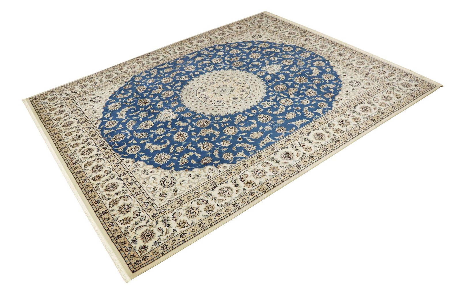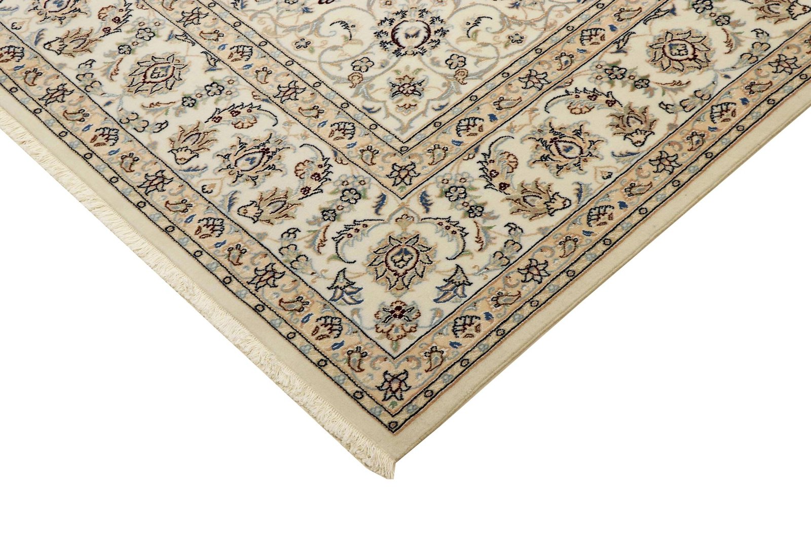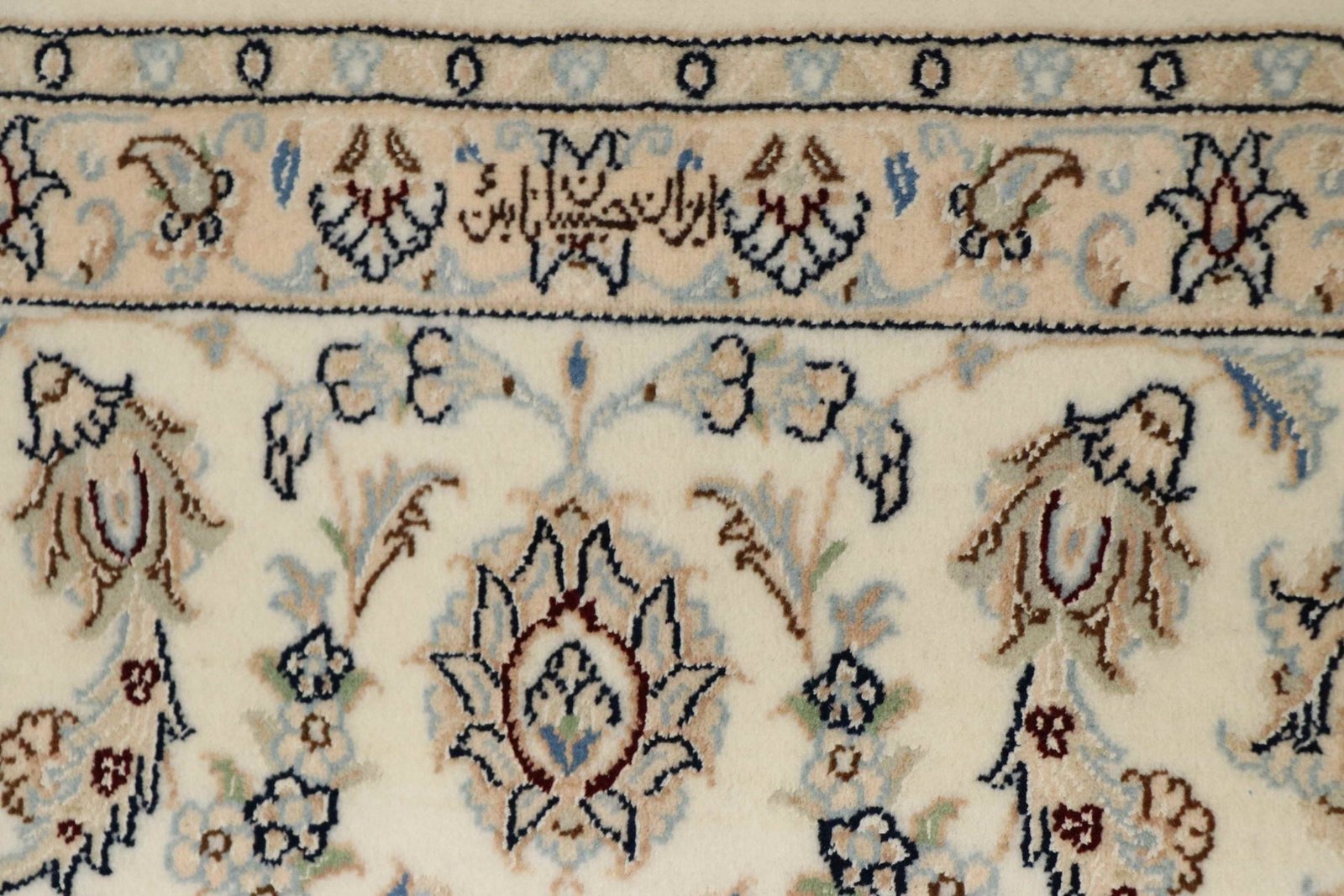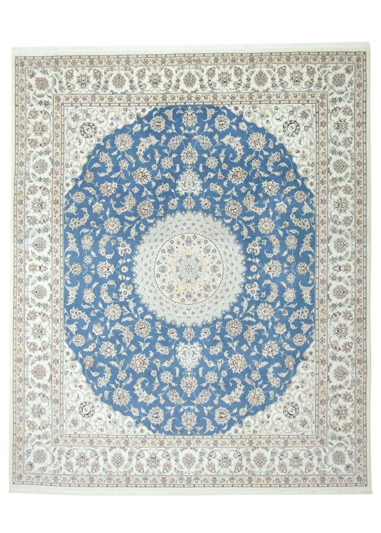 Nain, a picturesque town in southern Persia, is famous for its exquisite carpets. These carpets are characterised by their elegant colour combinations, especially white and light blue, and are often decorated with fine silk. Nain has a long tradition of carpet weaving and is known for the outstanding masterpieces that are created here. The classic oriental carpets from Nain are hand-knotted, unique pieces that are passed down from generation to generation. Their quality is evident in the use of first-class materials, such as precious silk and soft cork wool, as well as in the fine knot density and harmonious colour combinations. These carpets are not only decorative, but also lend every room a special, timeless elegance.