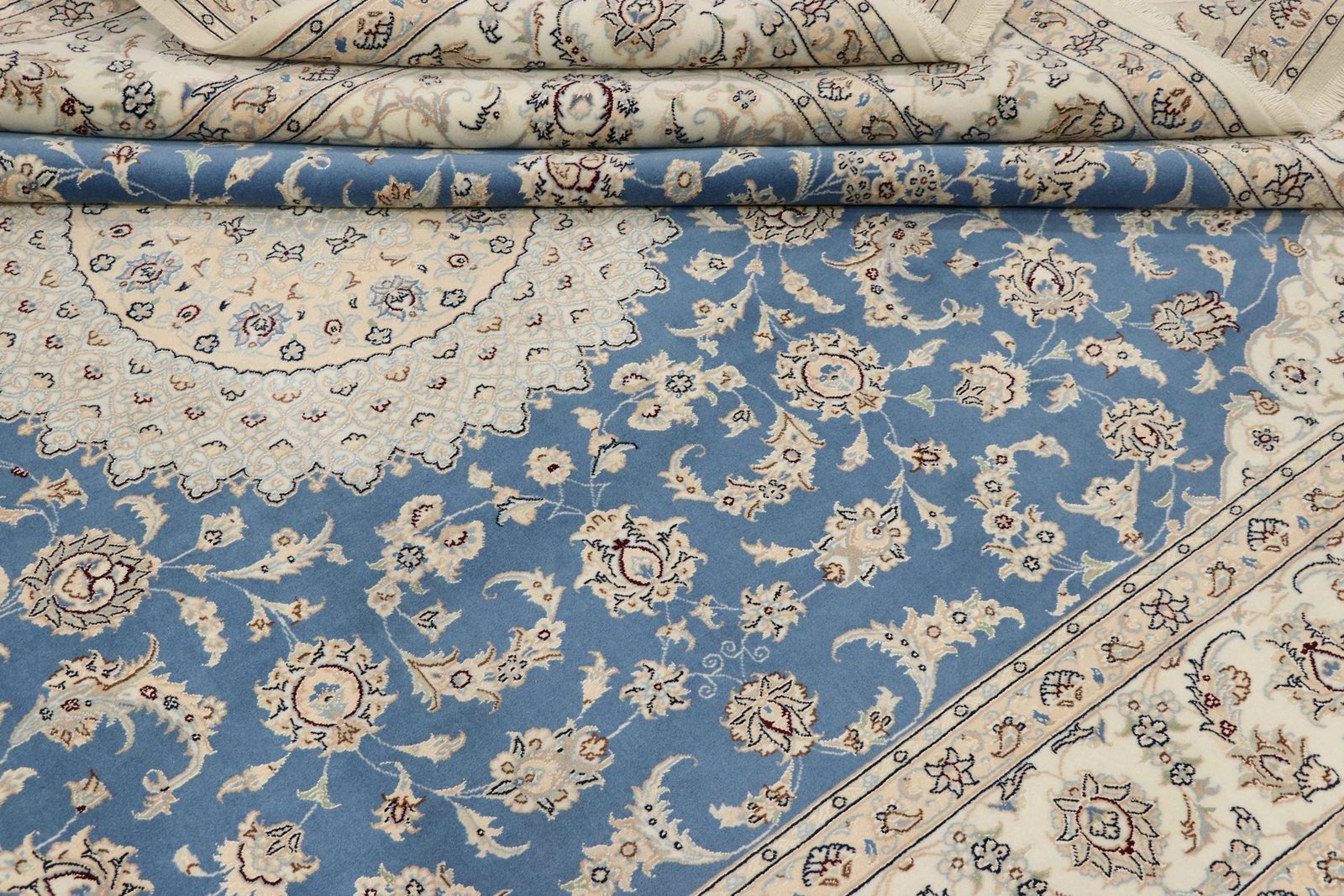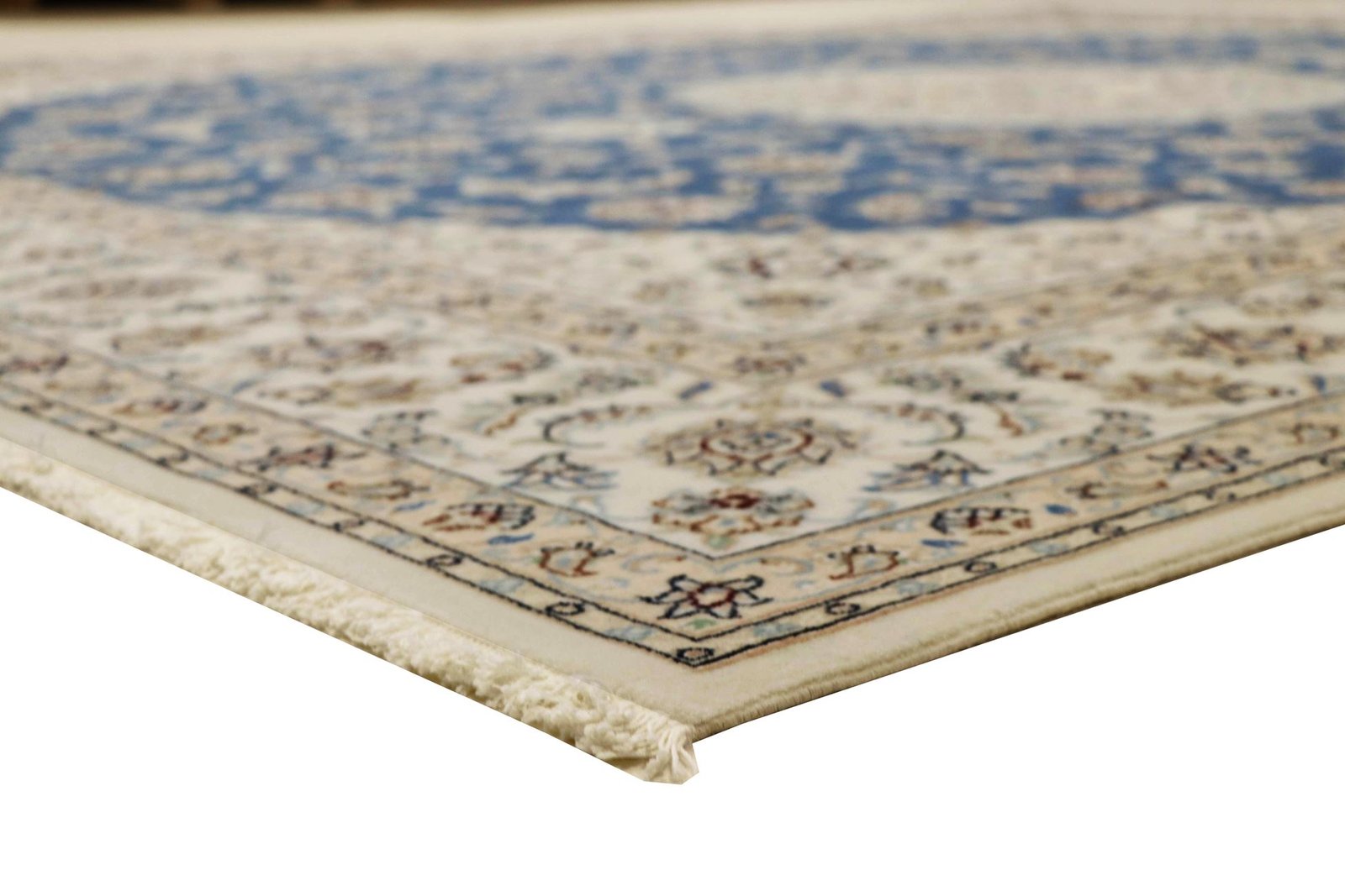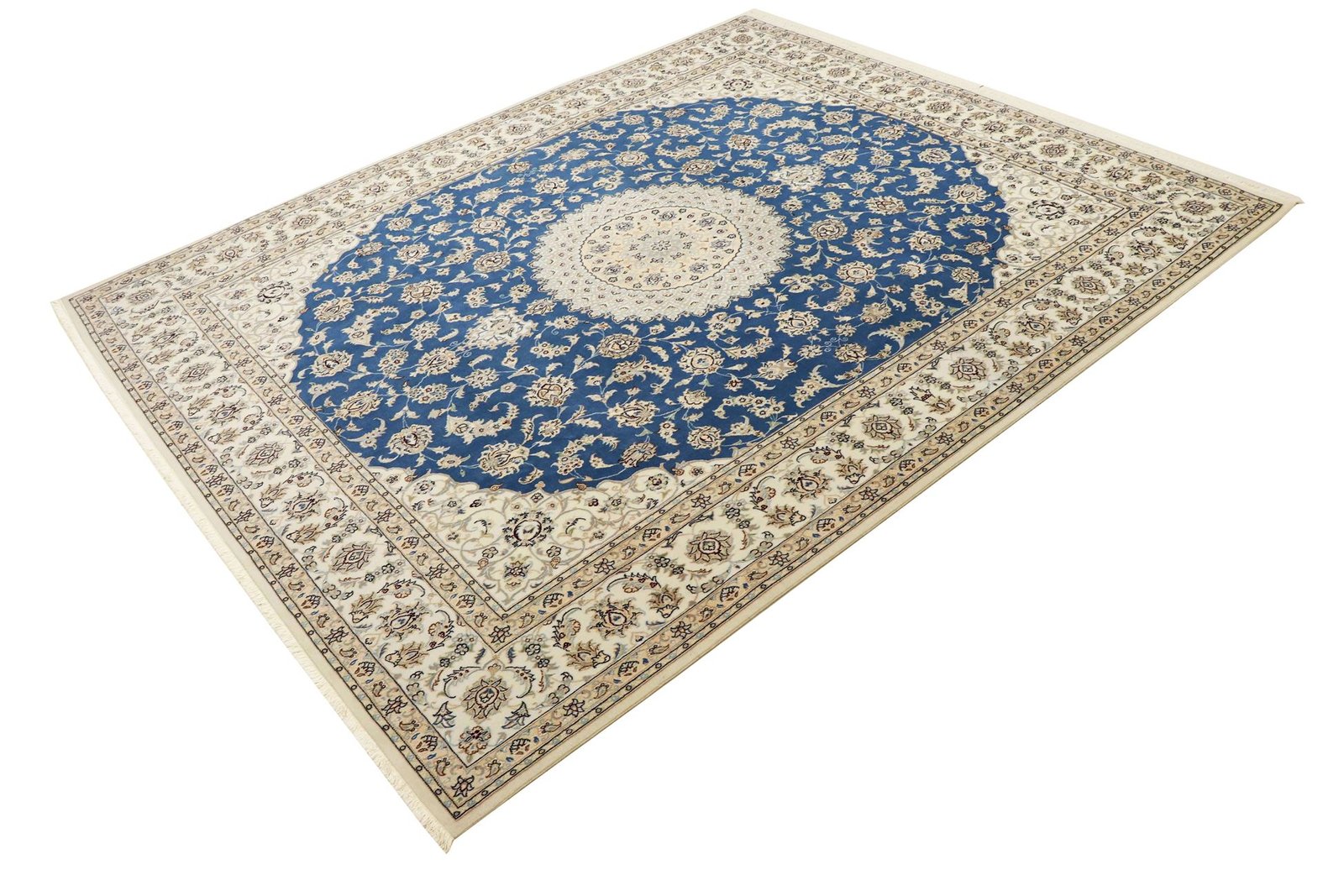 Nain, a picturesque town in southern Persia, is famous for its exquisite carpets. These carpets are characterised by their elegant colour combinations, especially white and light blue, and are often decorated with fine silk. Nain has a long tradition of carpet weaving and is known for the outstanding masterpieces that are created here. The classic oriental carpets from Nain are hand-knotted, unique pieces that are passed down from generation to generation. Their quality is evident in the use of first-class materials, such as precious silk and soft cork wool, as well as in the fine knot density and harmonious colour combinations. These carpets are not only decorative, but also lend every room a special, timeless elegance.
