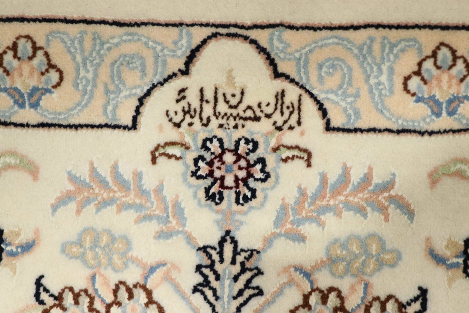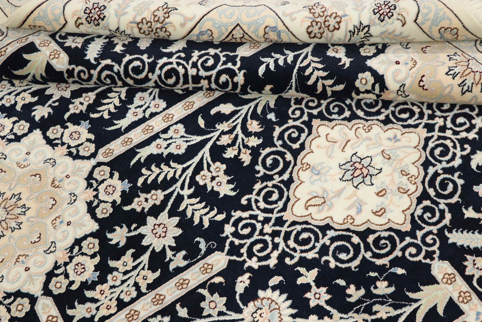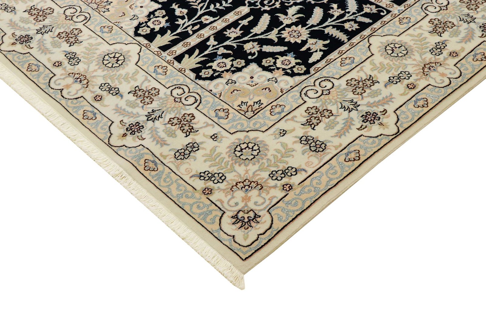 Nain is a picturesque town in southern Persia, known for its exquisite carpets. Carpets from Nain are characterised by their elegance and quality, often woven in white and light blue with silk. The town has produced many renowned master weavers, whose works are prized for their fineness and soothing oriental patterns. Classic oriental carpets are hand-knotted, unique pieces whose patterns have been passed down through generations. The origin of the carpet influences the material, manufacturing method and motifs. The first-class quality is particularly evident in high-quality Persian carpets, which are named after their city of origin: fine materials, high knot density and harmonious colours characterise these works of art. Whether made of precious silk or soft cork wool, an oriental carpet from Nain adds a special touch to any room.