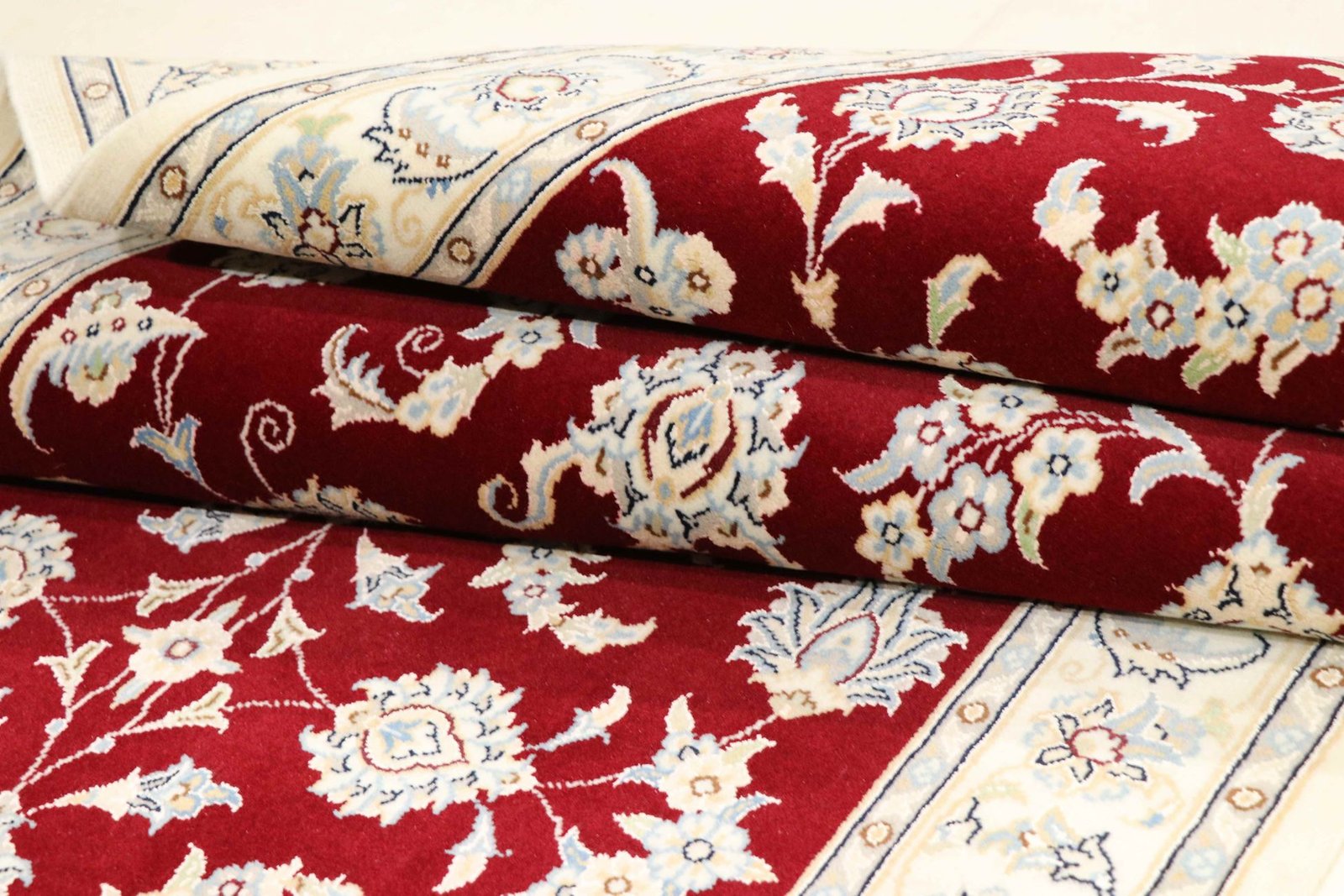 Nain, a picturesque town in southern Persia, is famous for its high-quality carpets, which captivate with their fine craftsmanship. Carpets from Nain are characterised by their elegant design in white and light blue and the use of fine silk. The town has a long tradition of masterful knotting craftsmen who are known for their magnificent and soothing oriental carpets. These classic carpets are hand-knotted unique pieces that pass on their unique patterns from generation to generation. The origin of the carpet has a significant influence on its method of manufacture, material and motifs. High-quality Persian carpets, such as those from Nain, combine first-class materials, knot density, harmonious colours and traditional designs. Whether made of precious silk or soft cork wool, an oriental carpet adds a special touch to any room.