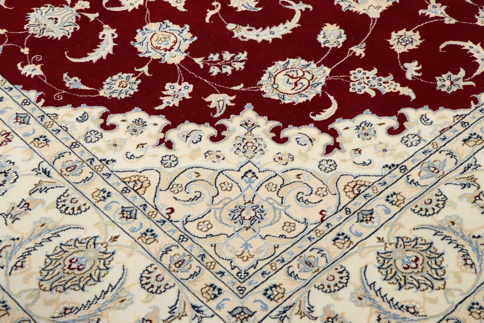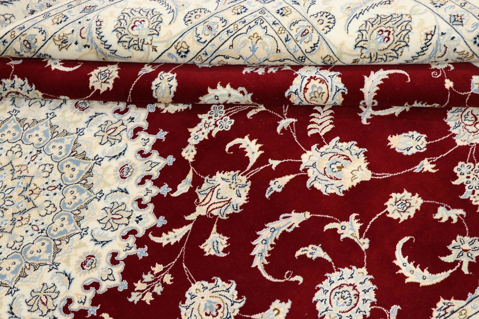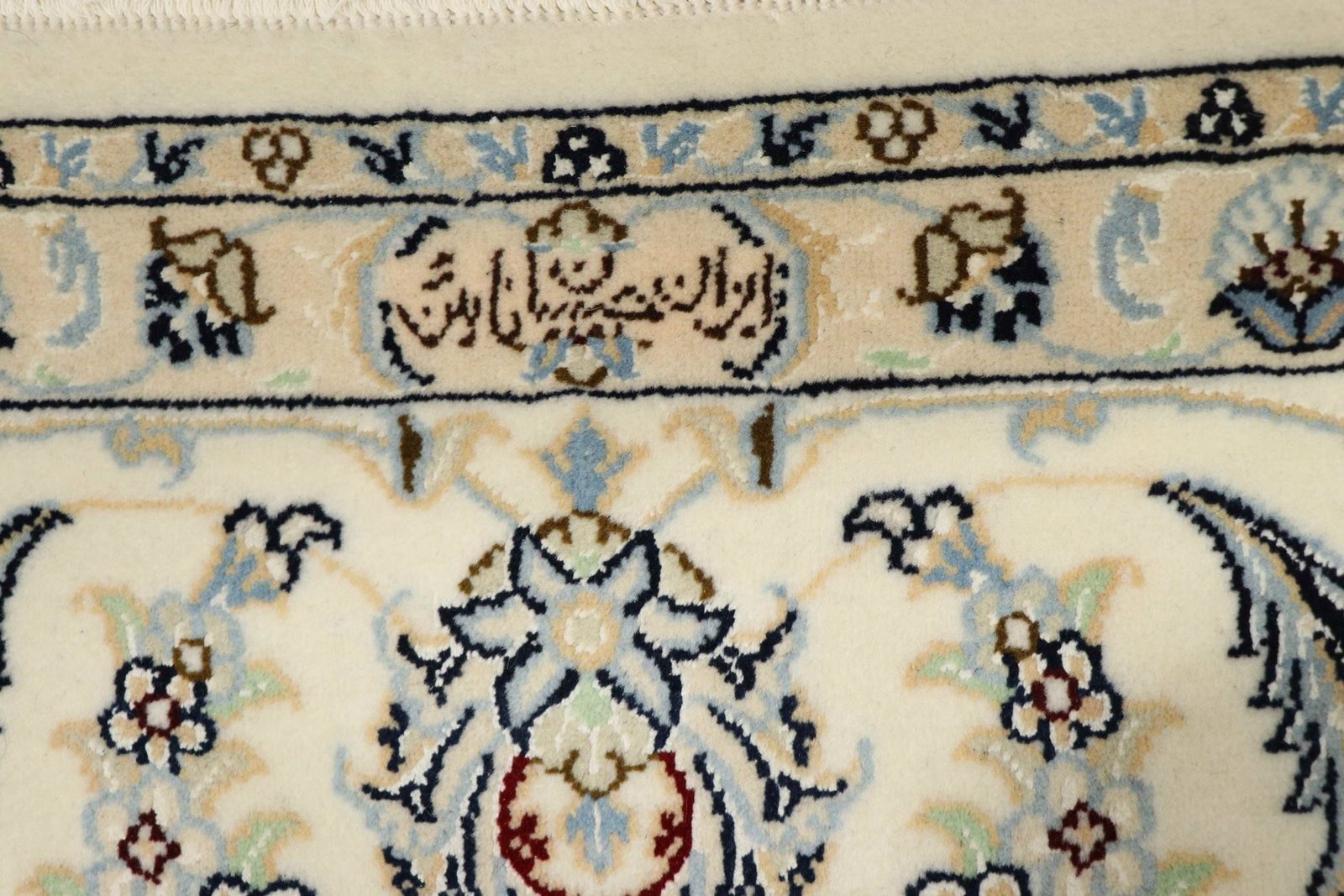 Nain, a charming city in southern Persia, is famous for its exquisite carpets. These carpets are characterised by their elegant combination of white and light blue and the use of silk. Nain has a long tradition of carpet weaving and is home to many renowned masters who are known for their fine and soothing oriental carpets. Classic oriental carpets, hand-knotted and unique, are passed down through generations and reflect the cultural heritage of their origin. They are known for their first-class materials, knot density and unique colour harmonies. Whether made of fine silk or soft cork wool, a Nain carpet adds a special and elegant touch to any room.