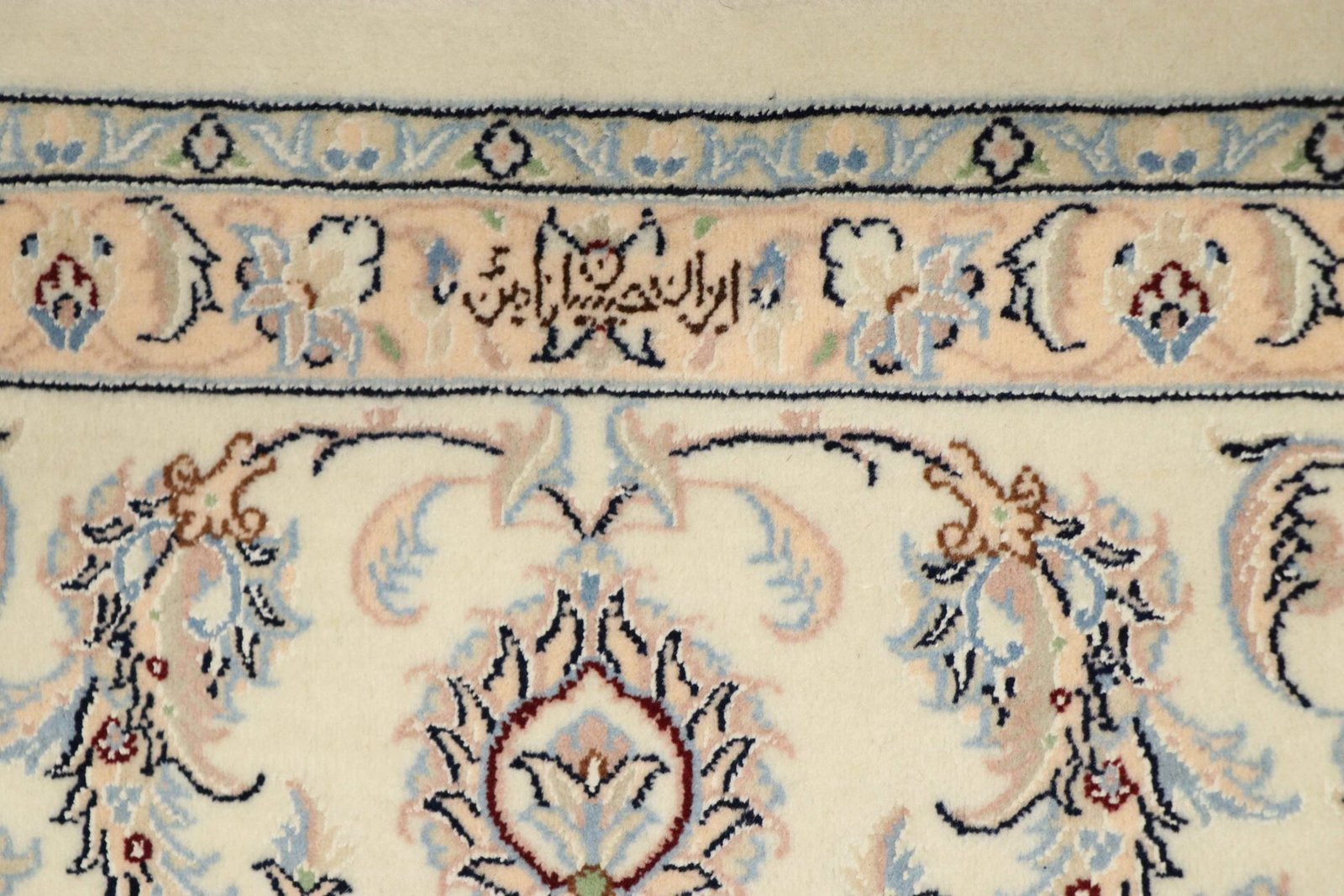 Nain, a charming city in southern Persia, is famous for its fine carpets, which captivate with their exquisite quality and elegant designs. Nain carpets are known for their dominant white and light blue tones and the luxurious use of silk. The city has a long tradition of carpet weaving and is home to many renowned masters who are valued for their artistic and precise work. Classic oriental carpets, especially those from Nain, are hand-knotted unique pieces whose patterns are passed down from generation to generation. The origin influences the material, manufacture and motifs of the carpets. These artistic works are characterised by first-class materials, high knot density and harmonious colours that lend every room a special touch.