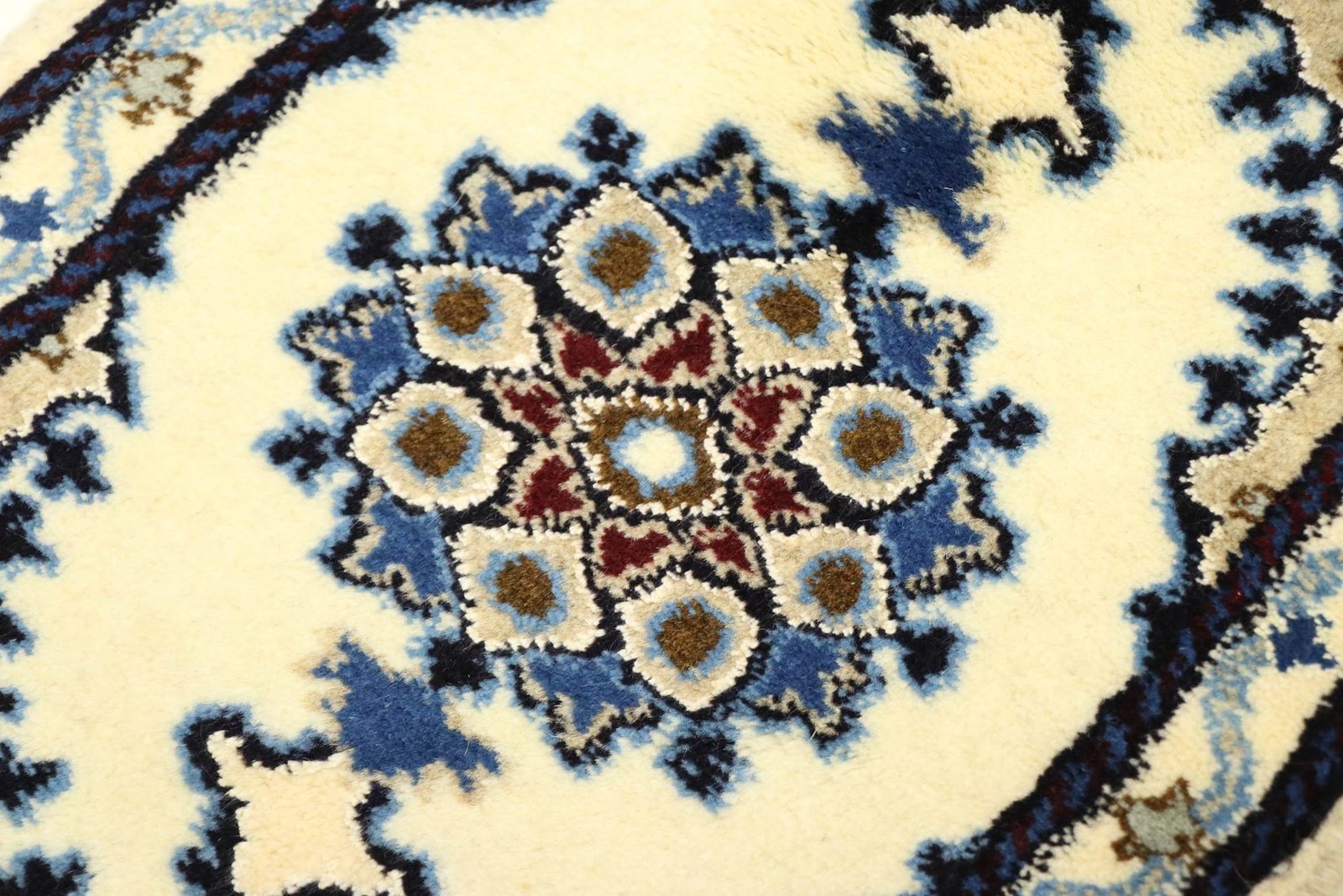 Nain Kashmar is known for its beautiful carpets, which exude a special elegance through the use of lots of white and light blue as well as silk. This city is famous for its fine yet affordable Nain carpets. Classic oriental carpets, such as those from Nain Kashmar, are hand-knotted unique pieces whose typical patterns are preserved by being passed down from generation to generation. The region of origin influences the manufacturing method, the materials used and the motifs of Oriental carpets. High-quality Persian carpets, named after their city of origin, are characterised by first-class materials, high knot density and unique colour harmonies. Whether made of precious silk or soft wool, a Nain Kashmar carpet gives every room a special and stylish atmosphere.