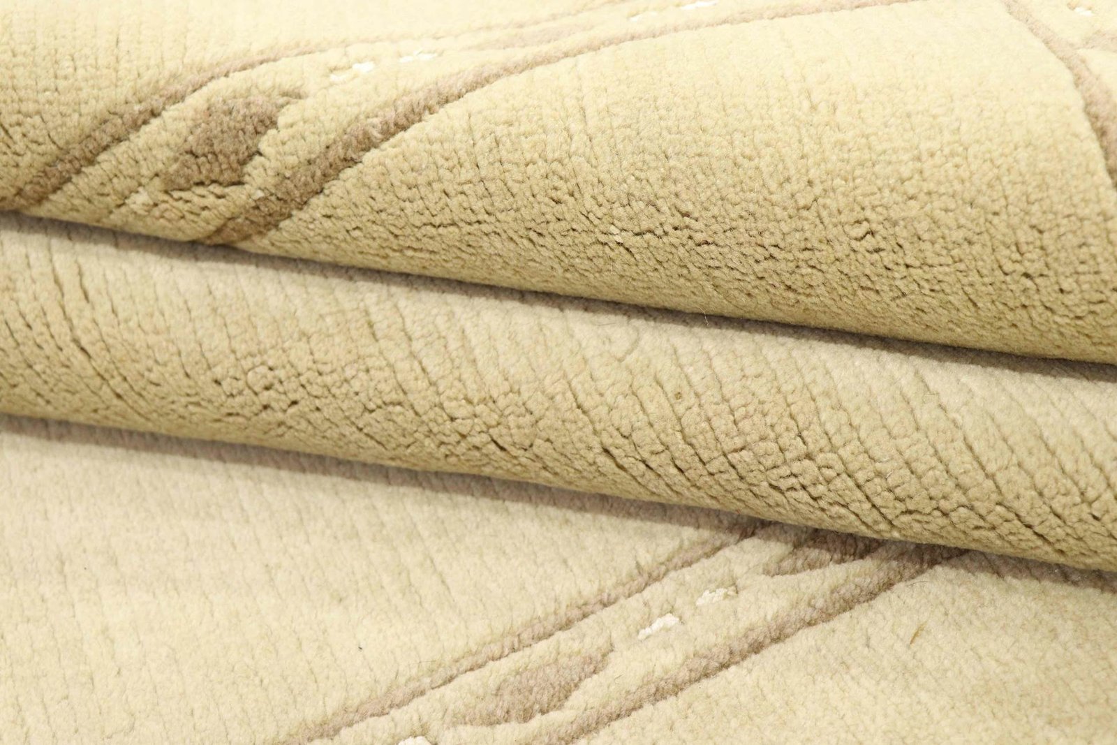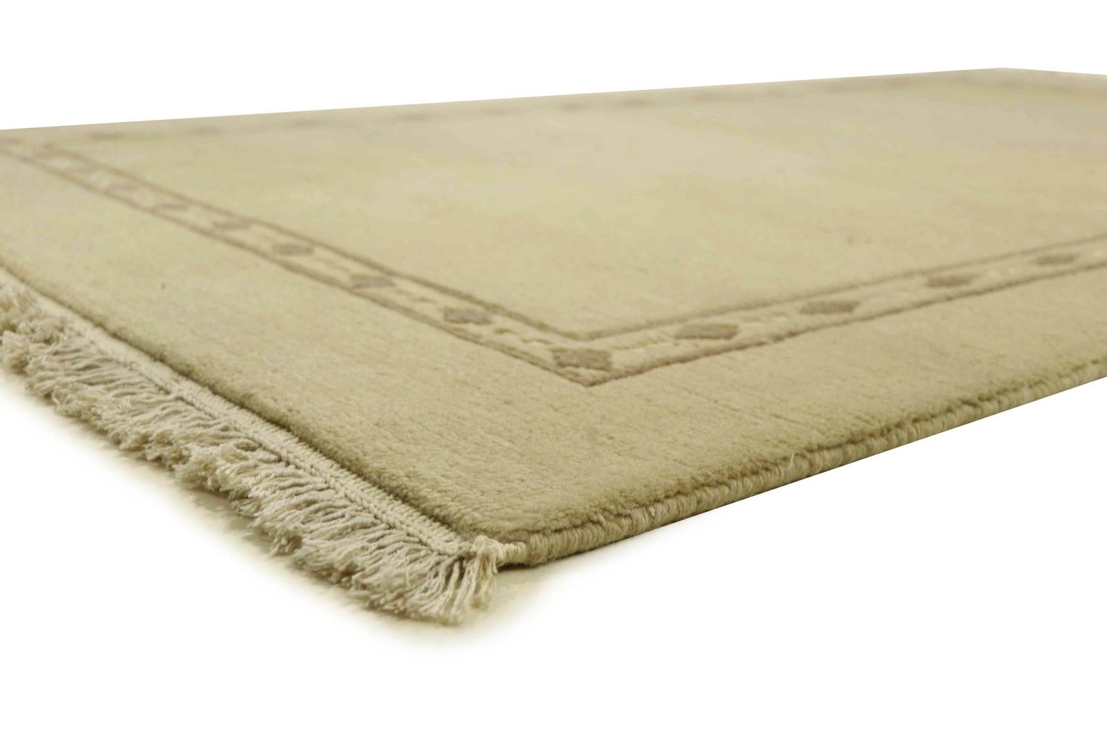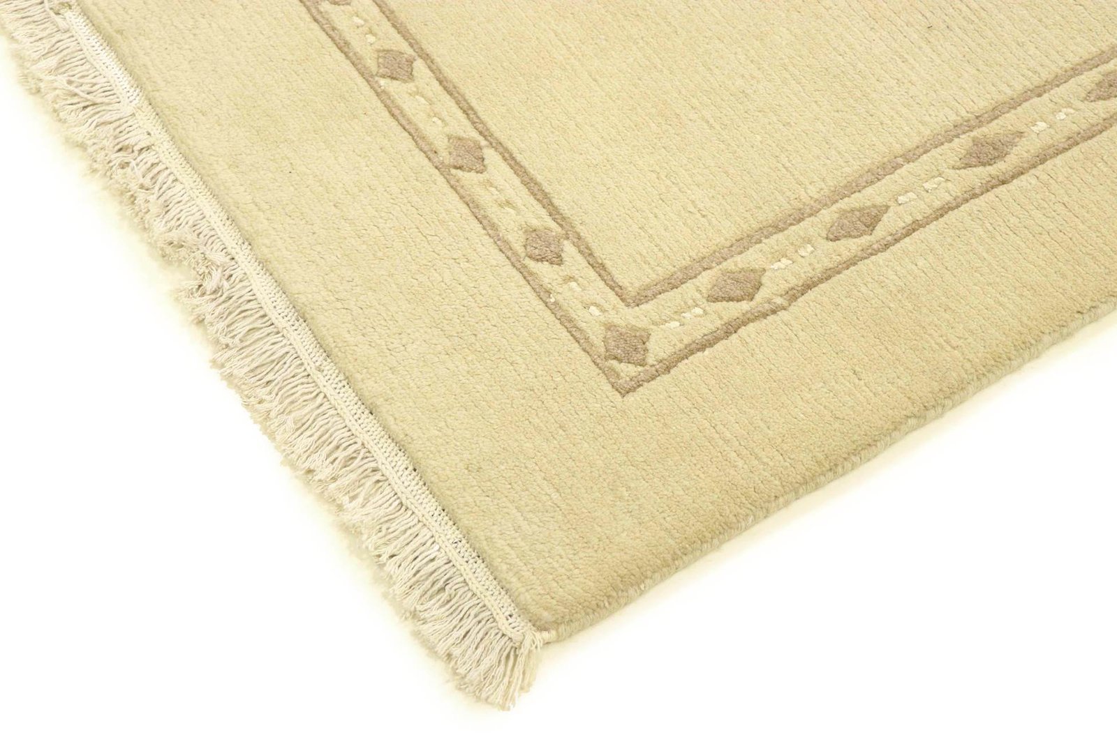 This carpet comes from Nepal and was traditionally hand-knotted, giving it a unique, authentic quality. Nepal carpets are characterised by their coarser structure and the use of high-quality virgin wool from the highlands. This wool ensures exceptional robustness and durability. Over time, the designs have adapted to the tastes of Western markets, which is why carpets in pastel colours and with modern, geometric patterns are often found today. These adaptations are reflected in the contemporary aesthetic, which combines classic craftsmanship with current design trends. The result is a carpet that combines traditional craftsmanship with modern elegance, adding a special touch to any room.