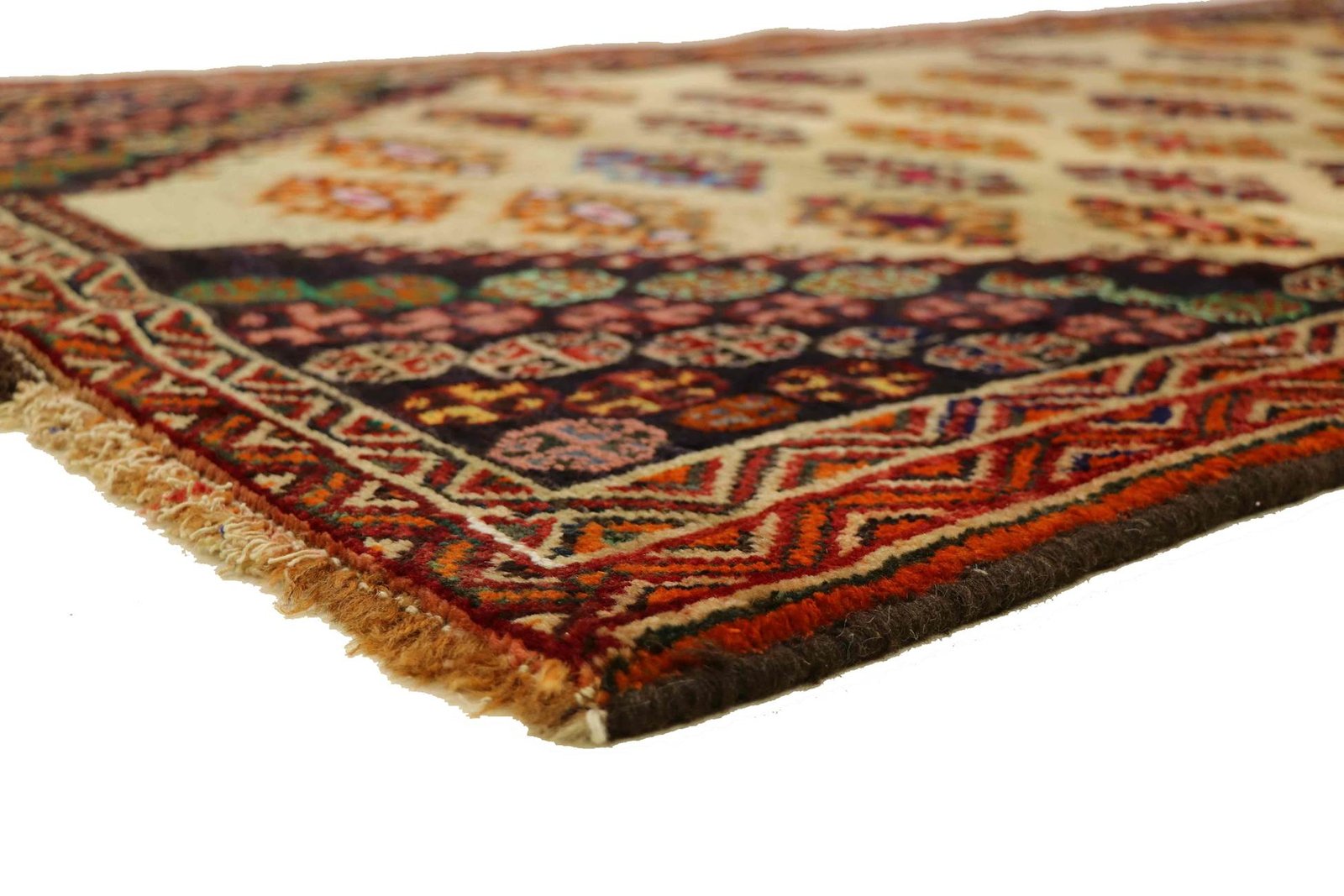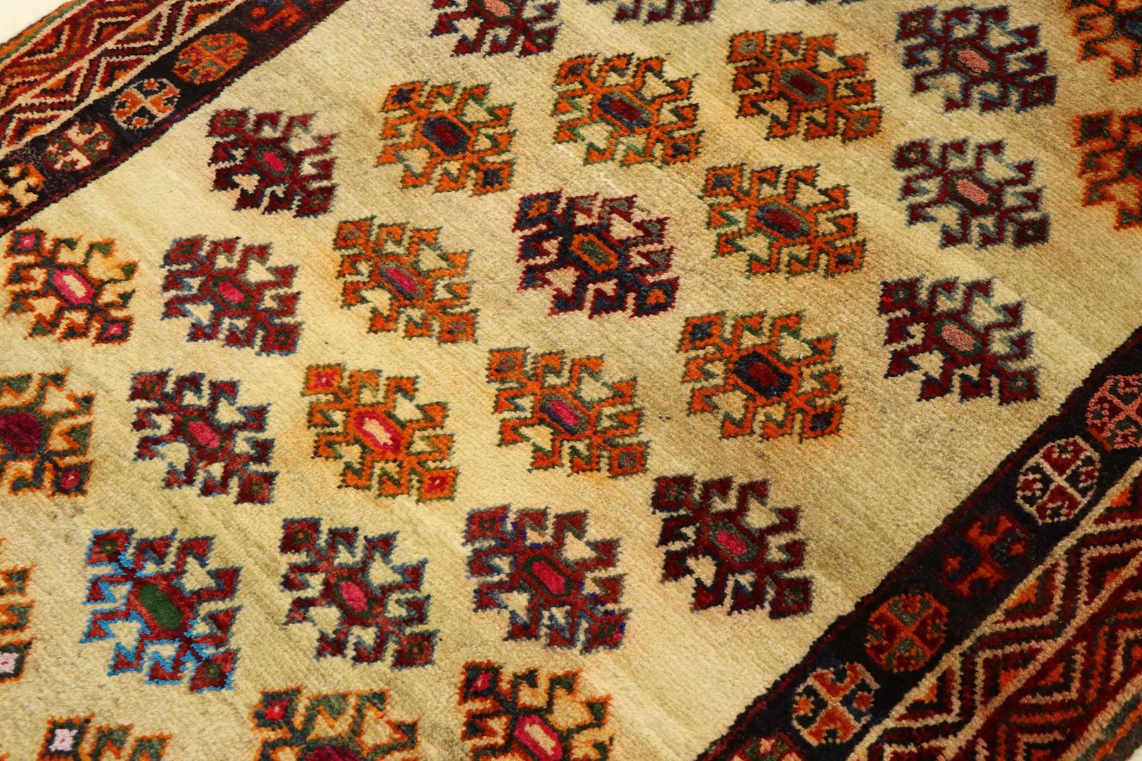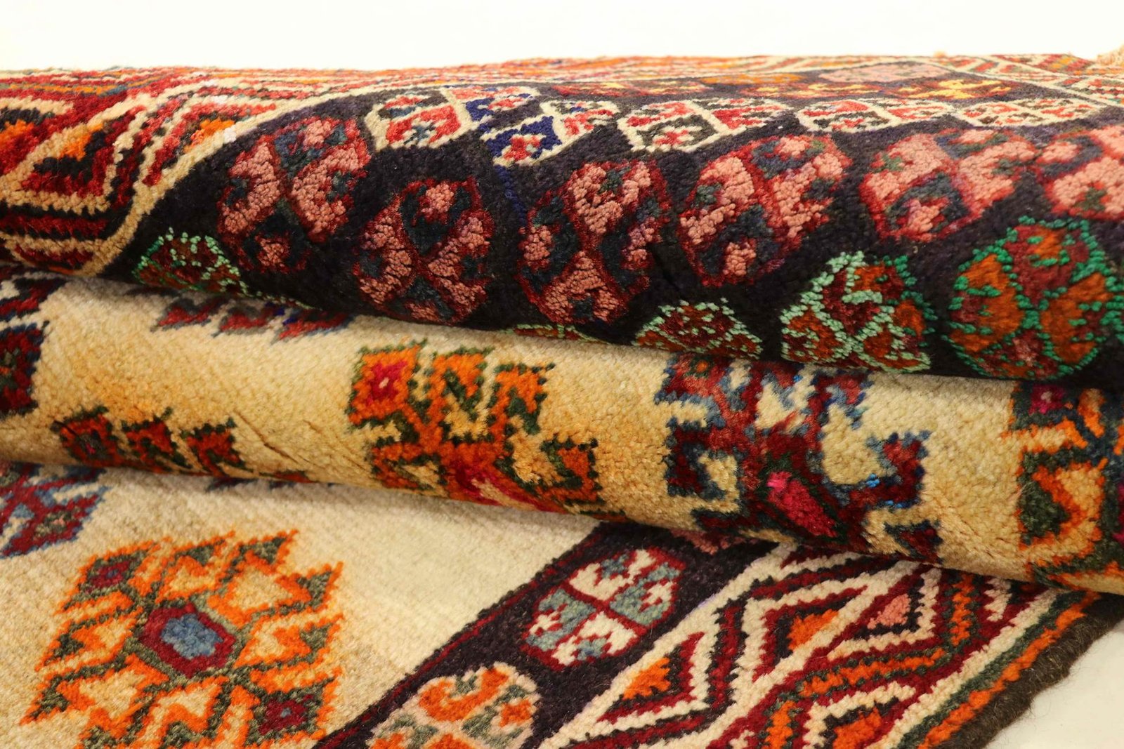 Gabbeh, meaning “raw” in Persian, have been growing in popularity since the early 1990s. These rustic rugs offer a relaxed alternative to traditional Persian rugs. With their thick pile, diverse colours and bold geometric patterns, they are unique. The designs can be abstract or representational, often featuring animal or human motifs. Mostly made of wool, there are also cotton variants. Gabbehs range from small mats to large rugs and fit into any room in the house.