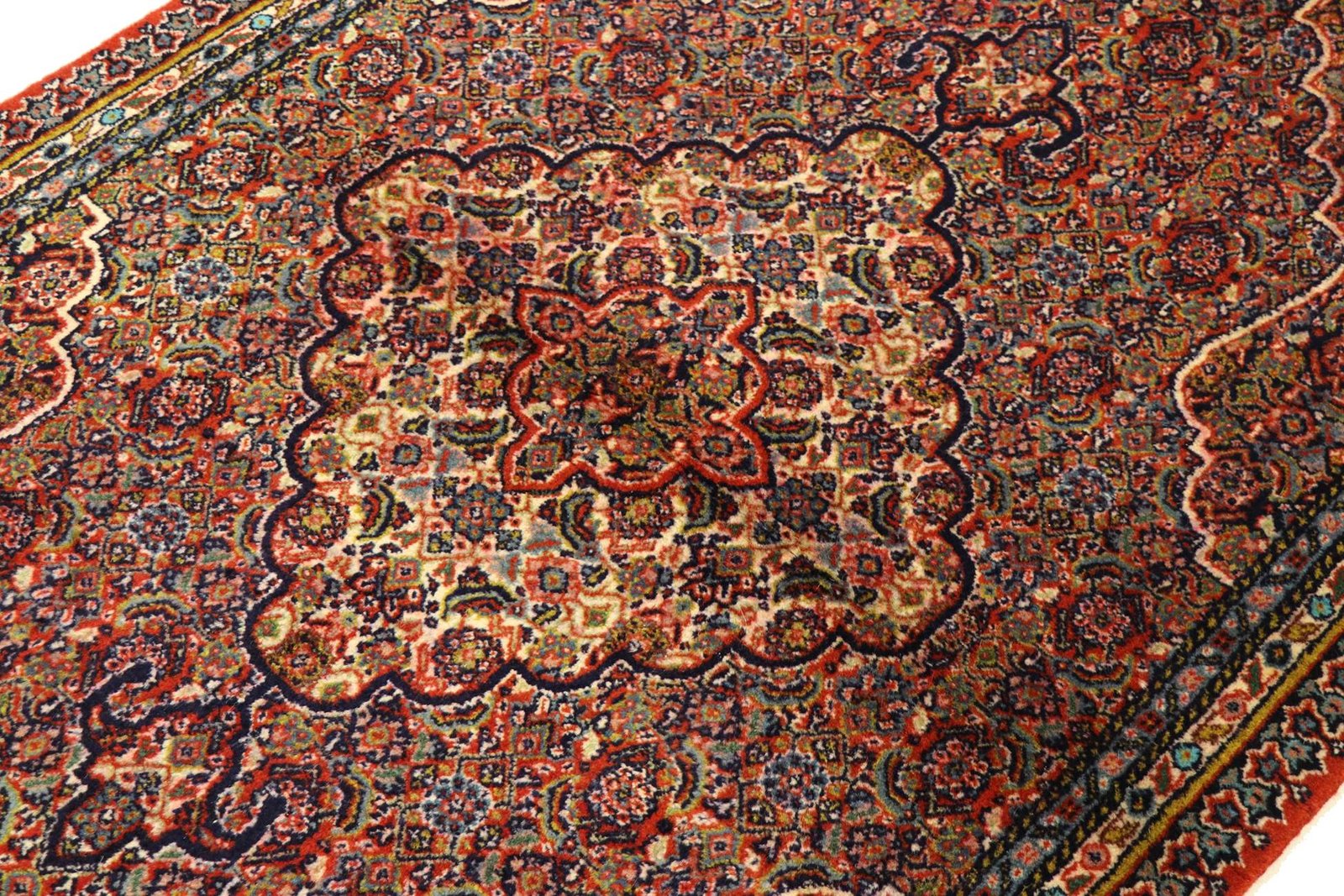 This Sarab carpet was hand-knotted by talented weavers from the city of Sarab in western Iran. It features a beautiful design that complements almost any environment. Sarab carpets are known for their high quality, fine herringbone pattern and muted colours. The dense wool pile and special knotting technique make these carpets particularly wear-resistant. The unique design with a camel-coloured background consists of repeating hexagons, some of which are interrupted by diamonds.
