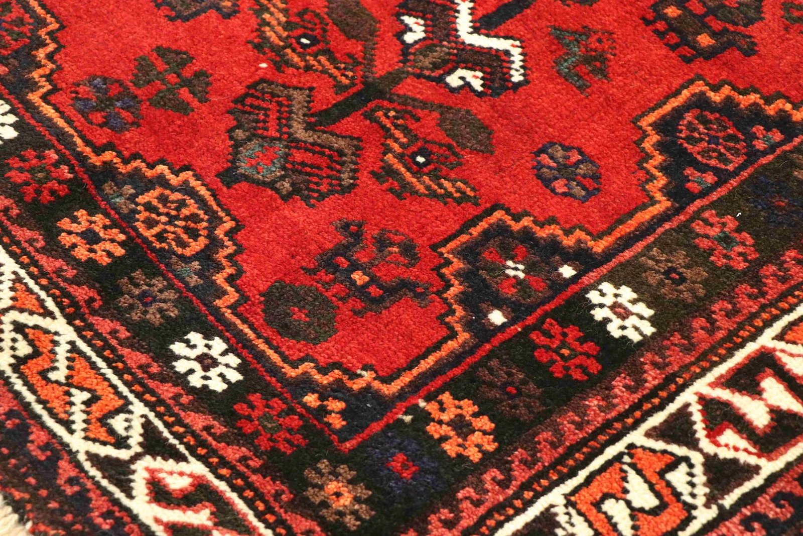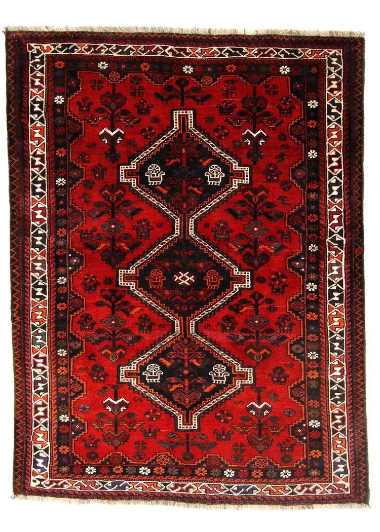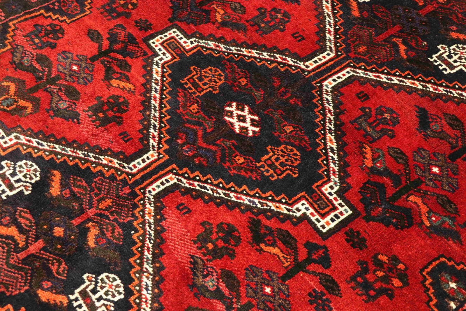 This carpet is one of the village and nomadic carpets from Iran. In small towns and villages, as well as in the open air, nomads still weave Shiraz and Ghashghai carpets according to ancient traditions. These carpets are woven without a template, purely from memory, and are characterised by their linear and geometric patterns. Their cultural and traditional origins give them a unique character that embodies ancient Persia. The craftsmanship and authentic designs make each carpet a distinctive work of art that reflects the rich history and culture of the region.