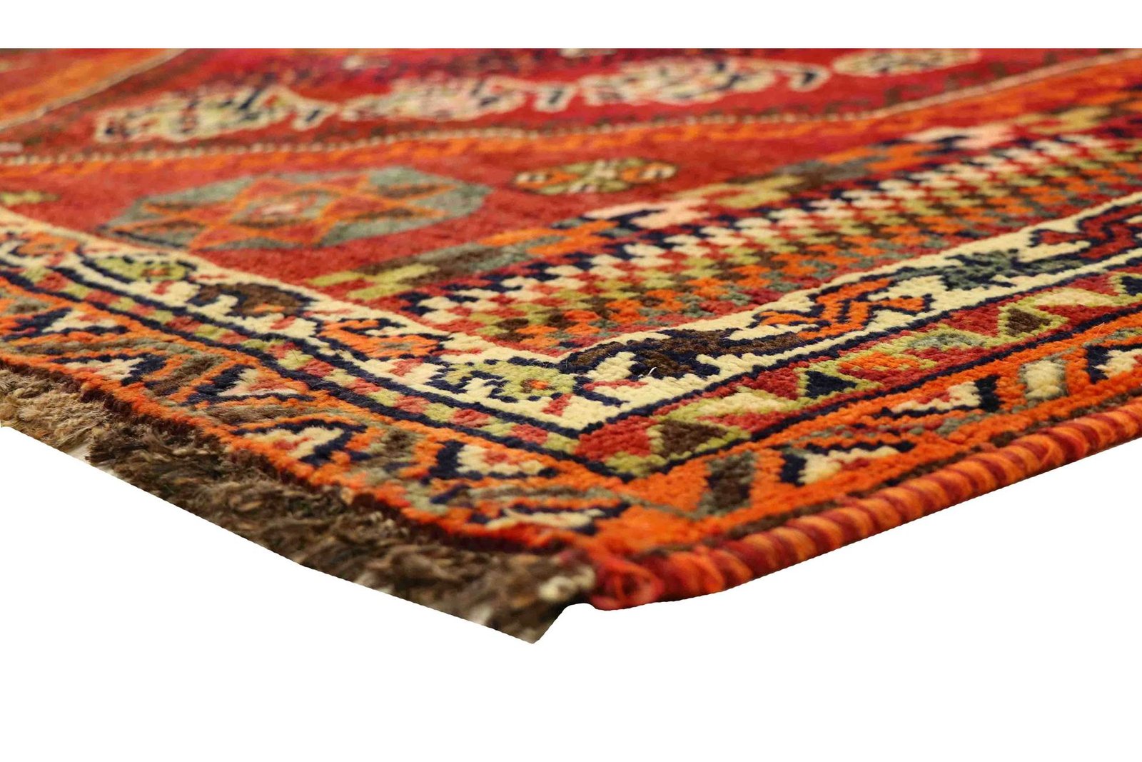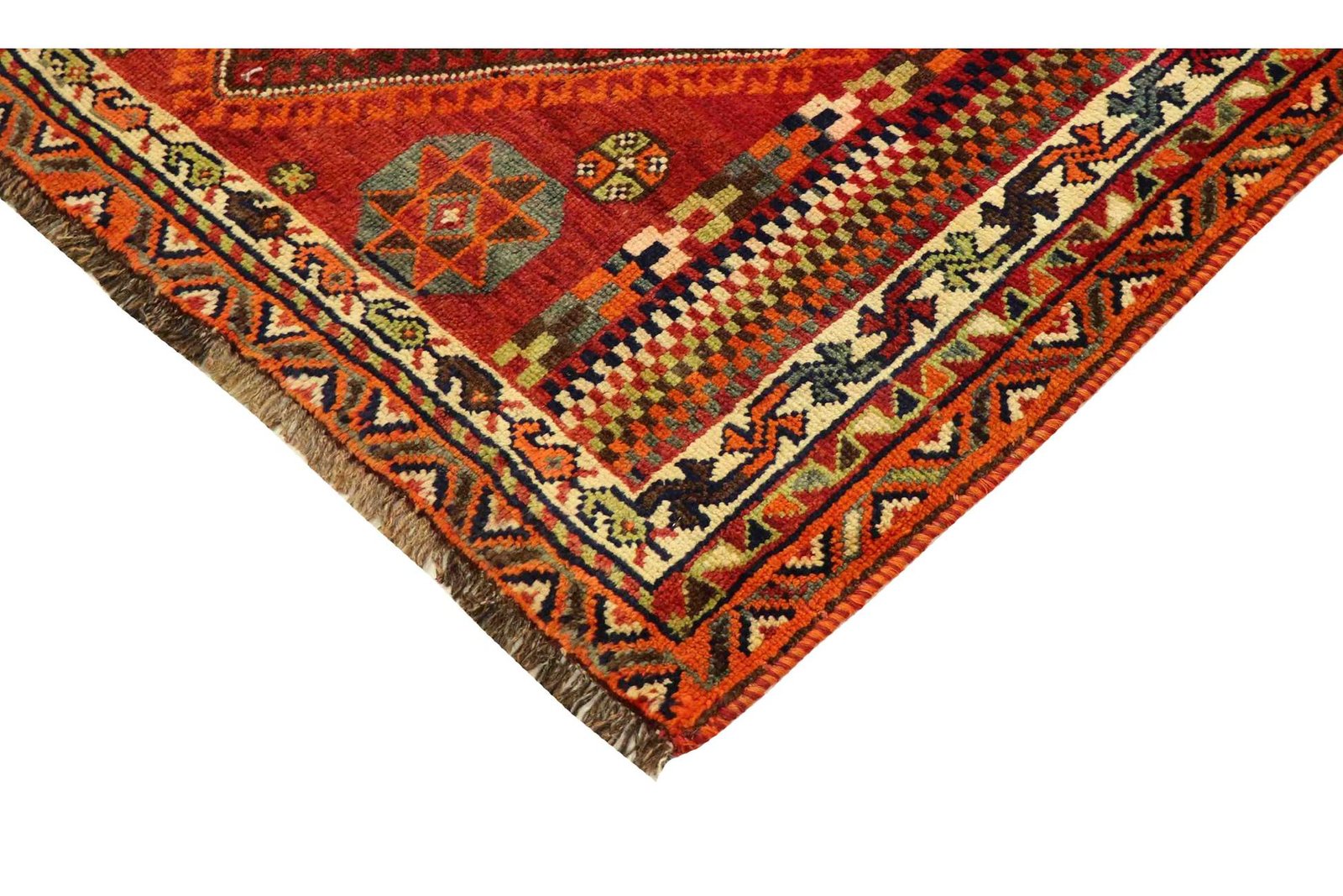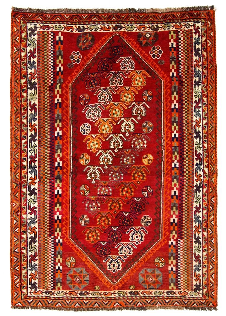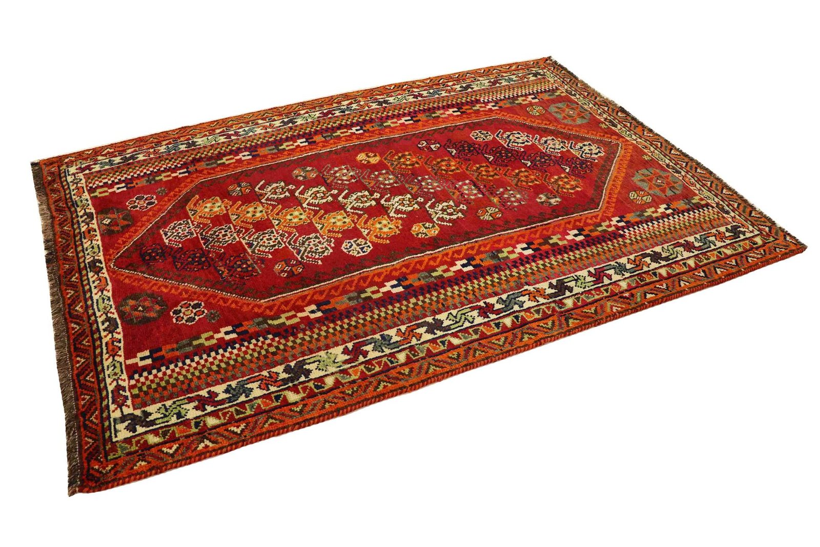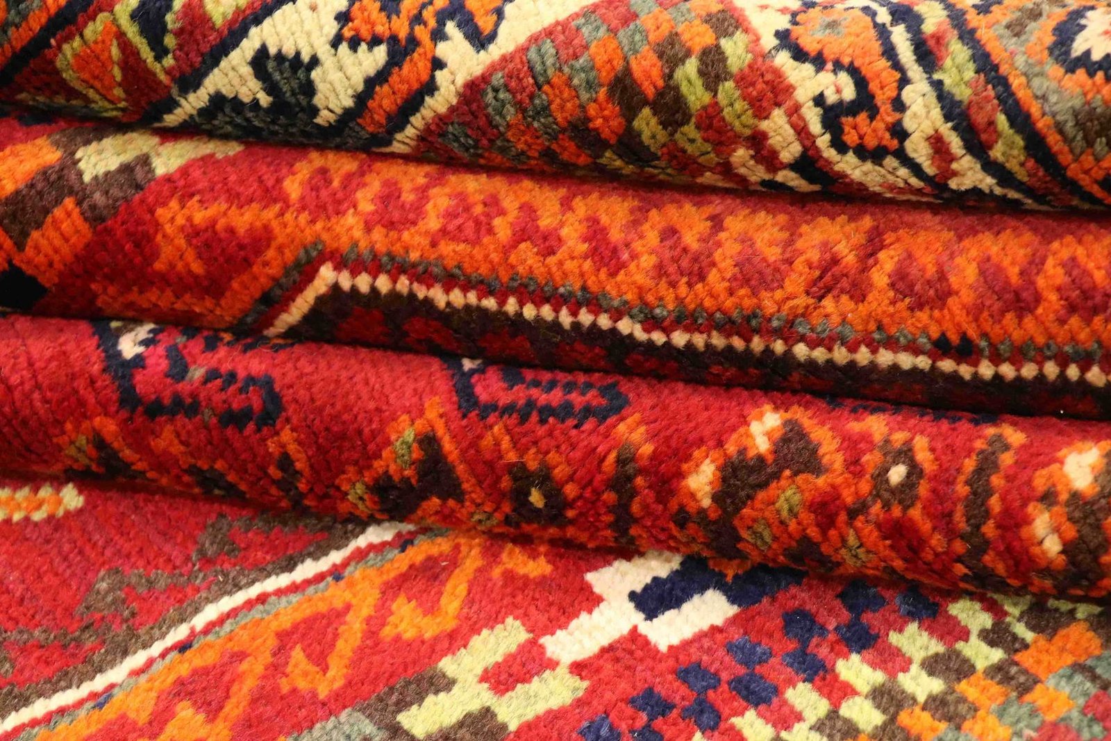 This carpet is one of the village and nomadic carpets from Iran and is hand-knotted in small towns and villages according to ancient tradition. Nomads also still make Shiraz and Ghashghai carpets outdoors, without a template and exclusively from memory. The carpets are characterised by straight lines and geometric patterns, which give them a unique aesthetic. Their cultural and traditional origins are reflected in every detail and embody ancient Persia. The craftsmanship and authentic designs make these carpets valuable works of art that bring the rich history and culture of Iran to life in any room.