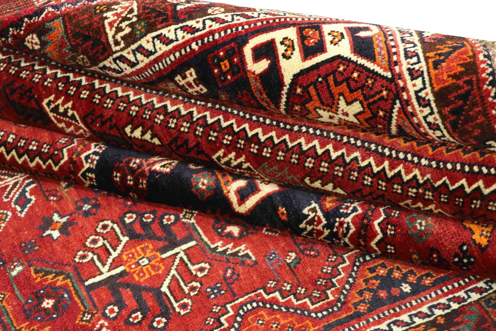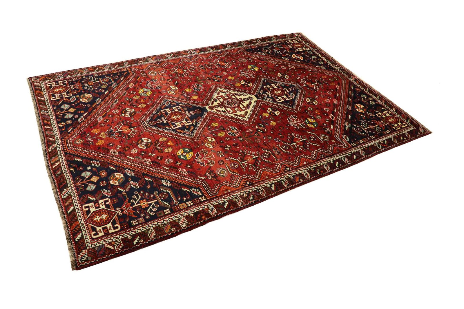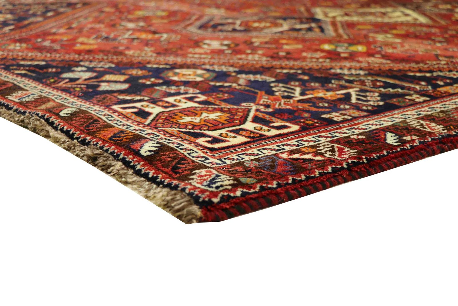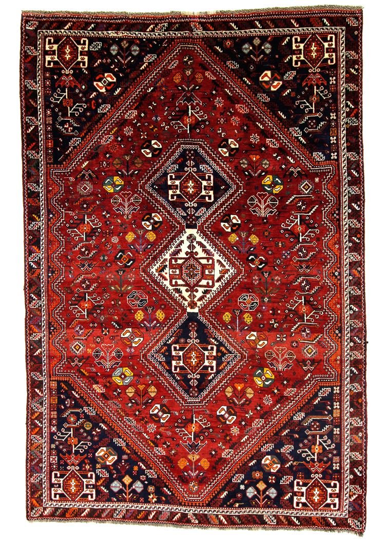 This carpet belongs to the village and nomadic carpets from Iran and is woven in small towns and villages as well as by nomads in the open air according to ancient tradition. Shiraz and Ghashghai carpets, which are made without a template and from memory, are particularly well known. These carpets are characterised by linear and geometric patterns that embody the cultural tradition and unique character of ancient Persia. Thanks to their handcrafted production and authentic design, they carry a deeply rooted cultural history and lend every room a touch of Persian tradition.