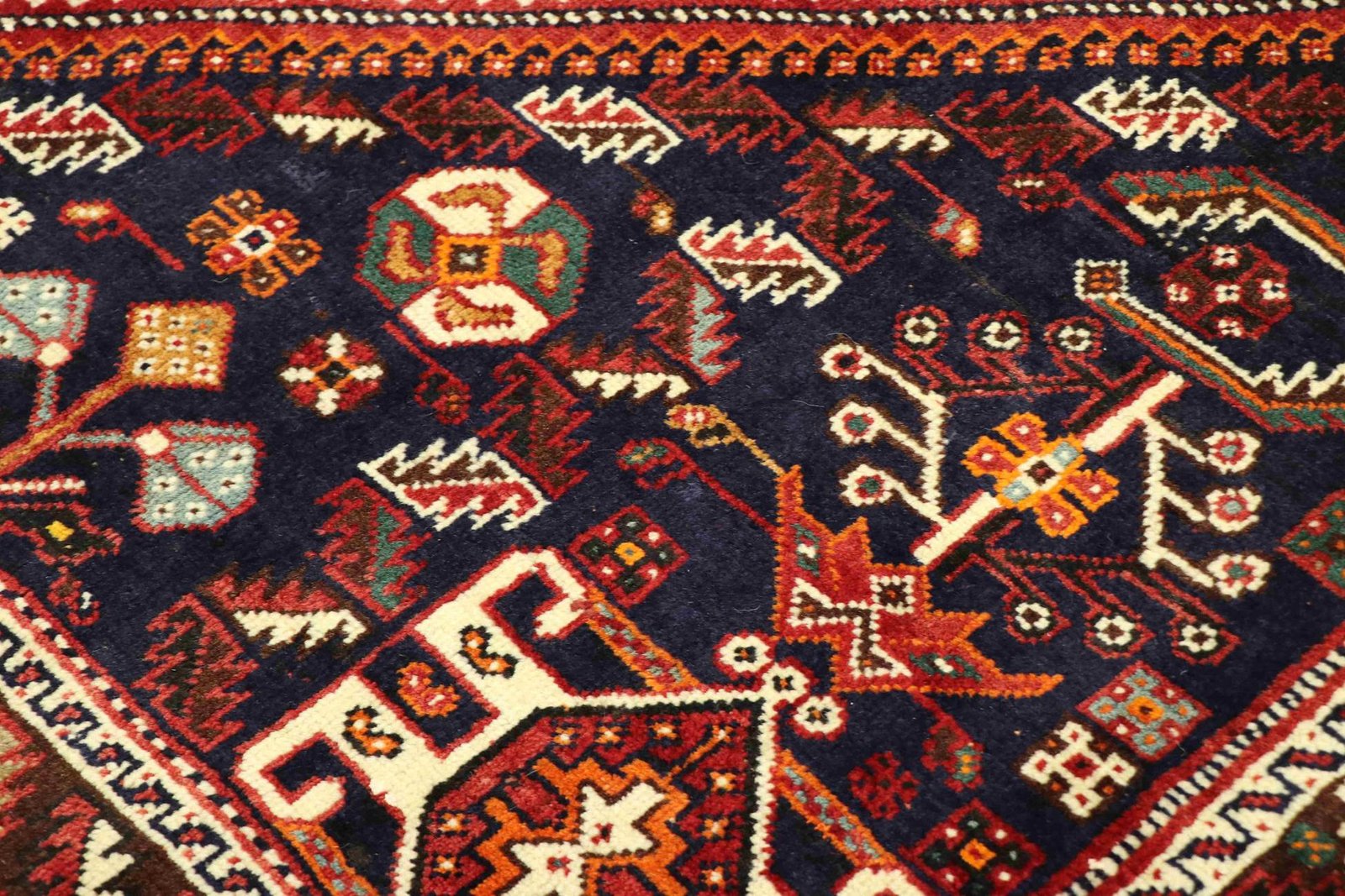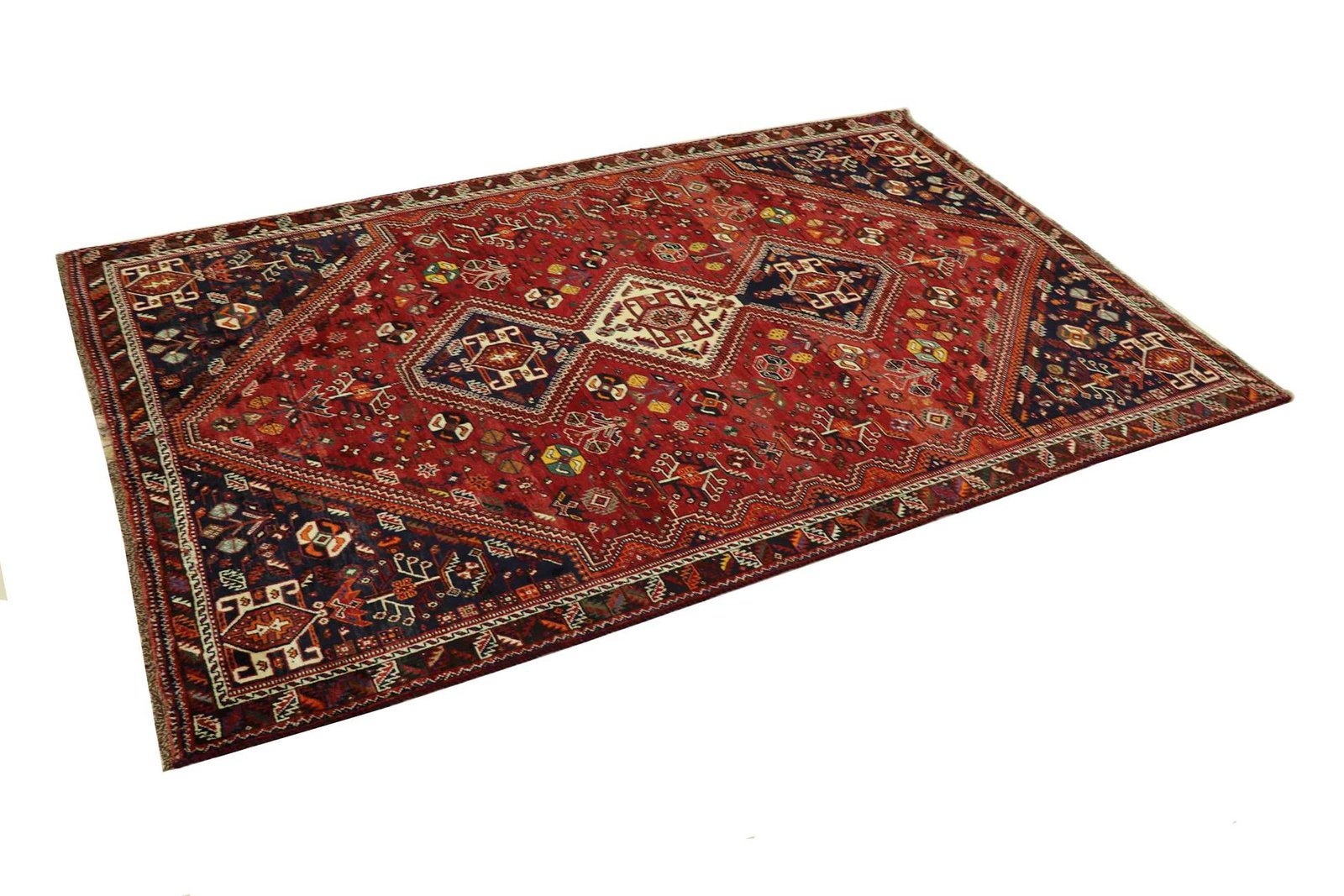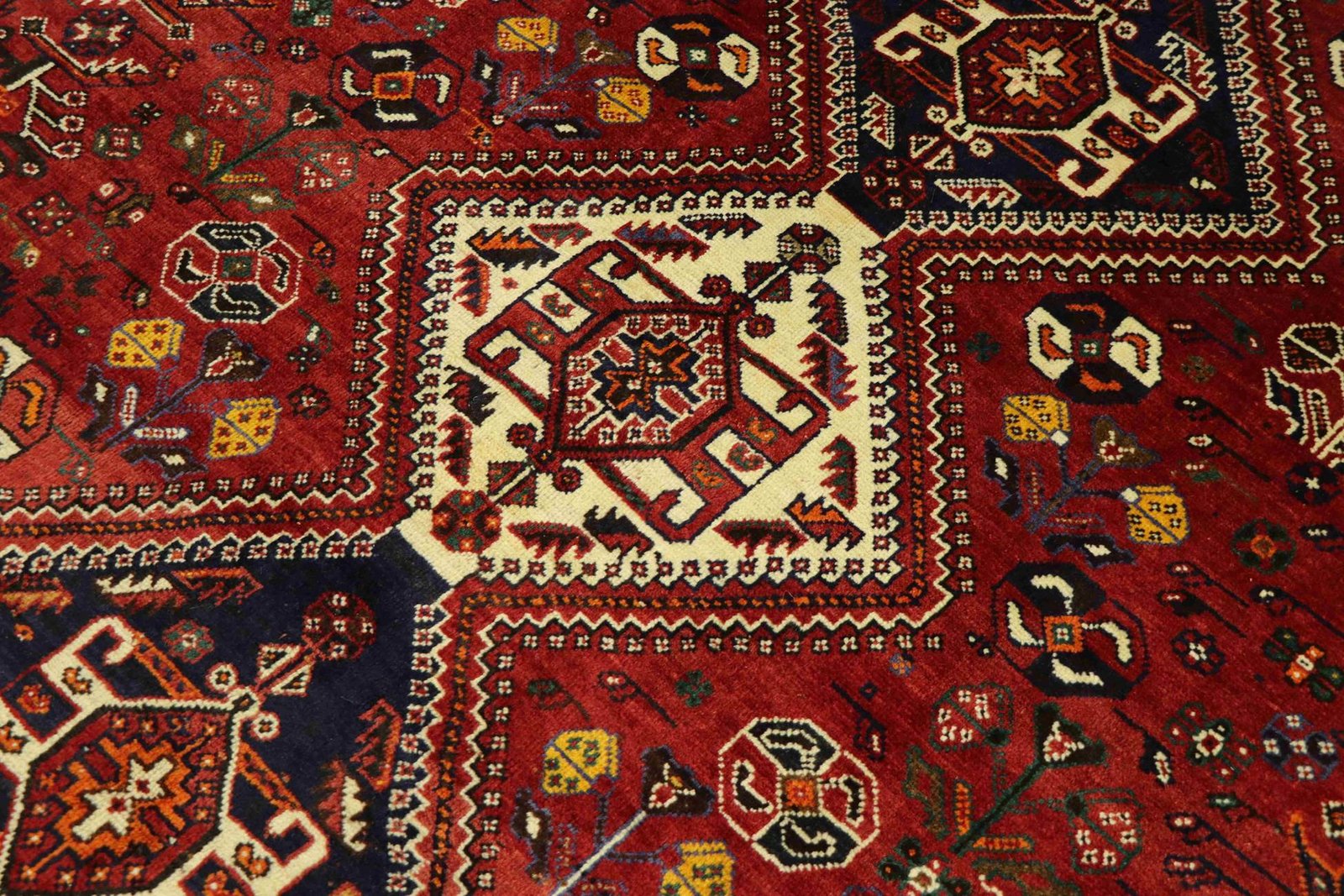 This carpet belongs to the village and nomadic carpets from Iran and is woven in small towns and villages as well as by nomads in the open air according to ancient tradition. Shiraz and Ghashghai carpets, which are made without a template and from memory, are particularly well known. These carpets are characterised by linear and geometric patterns that embody the cultural tradition and unique character of ancient Persia. Thanks to their handcrafted production and authentic design, they carry a deeply rooted cultural history and lend every room a touch of Persian tradition.