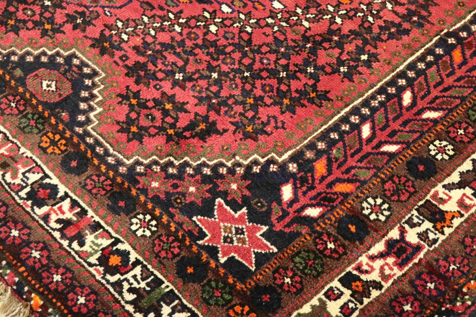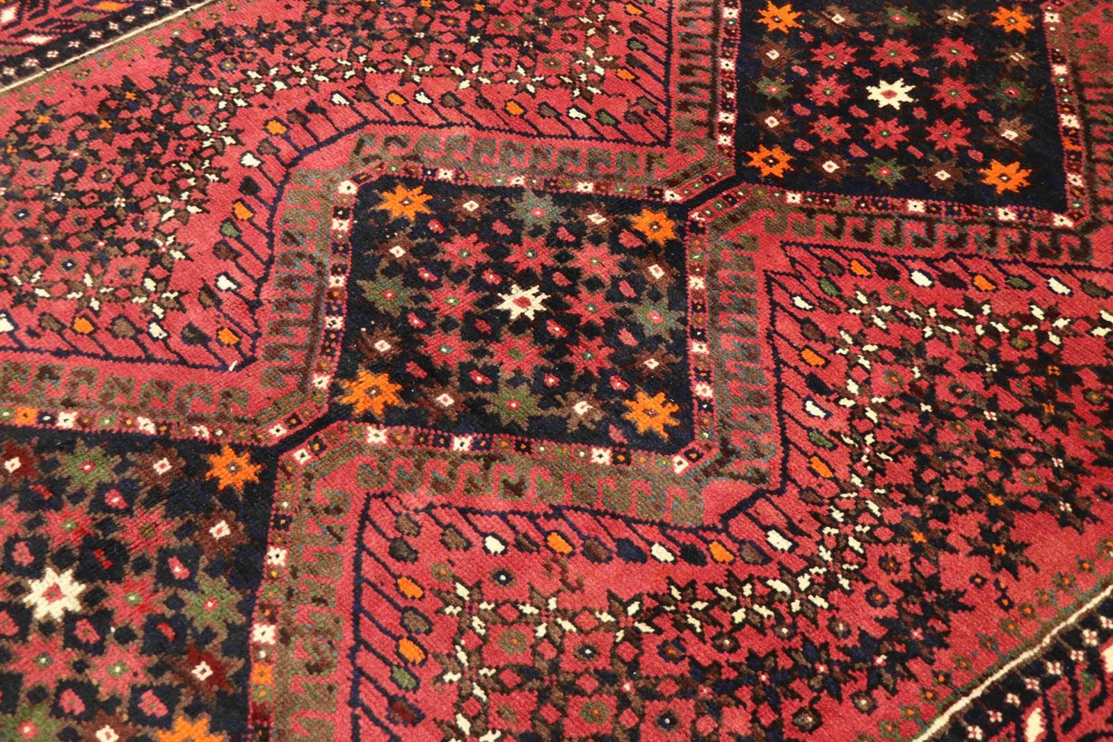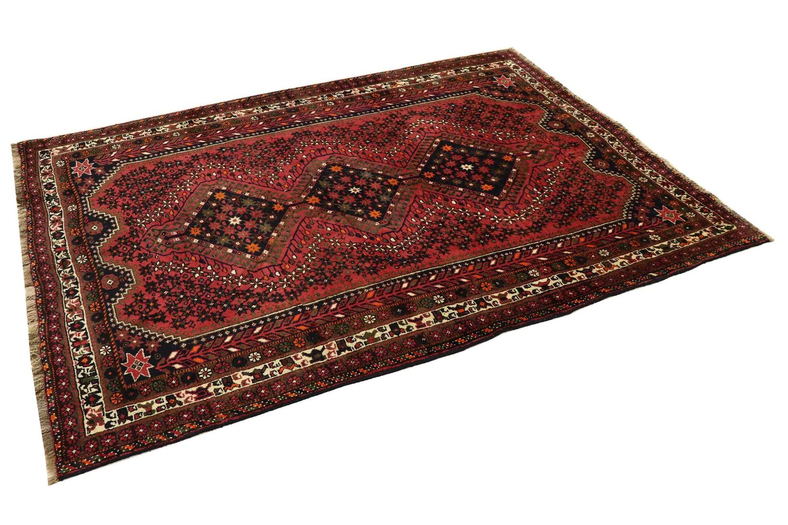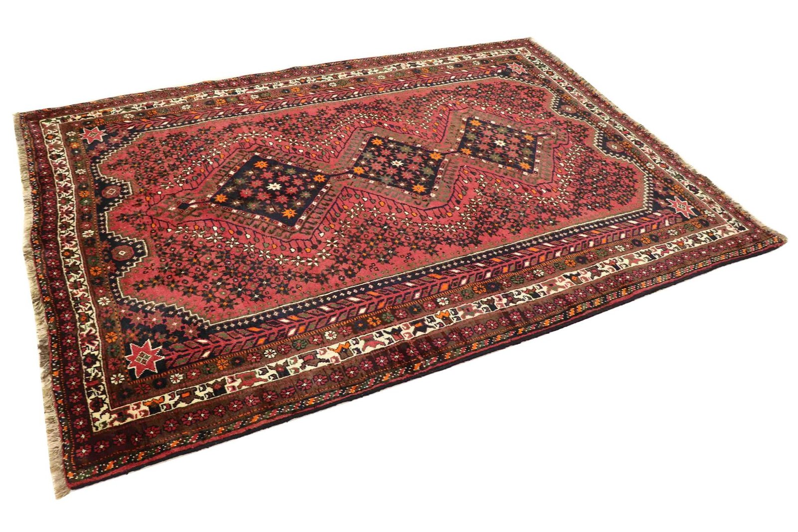 This carpet belongs to the village and nomadic carpets from Iran and is hand-knotted in smaller towns and villages according to old traditions. Nomads also still knot Shiraz and Ghashghai carpets outdoors, working directly from memory without a template. The carpets are characterised by their linear and geometric patterns. Their cultural and traditional origins give them a unique character that reflects ancient Persia. These carpets are not only artistic handicrafts, but also living testimonies to the Iranian carpet tradition and history.