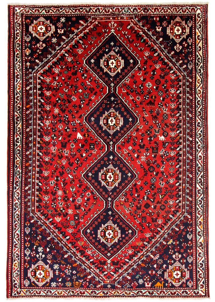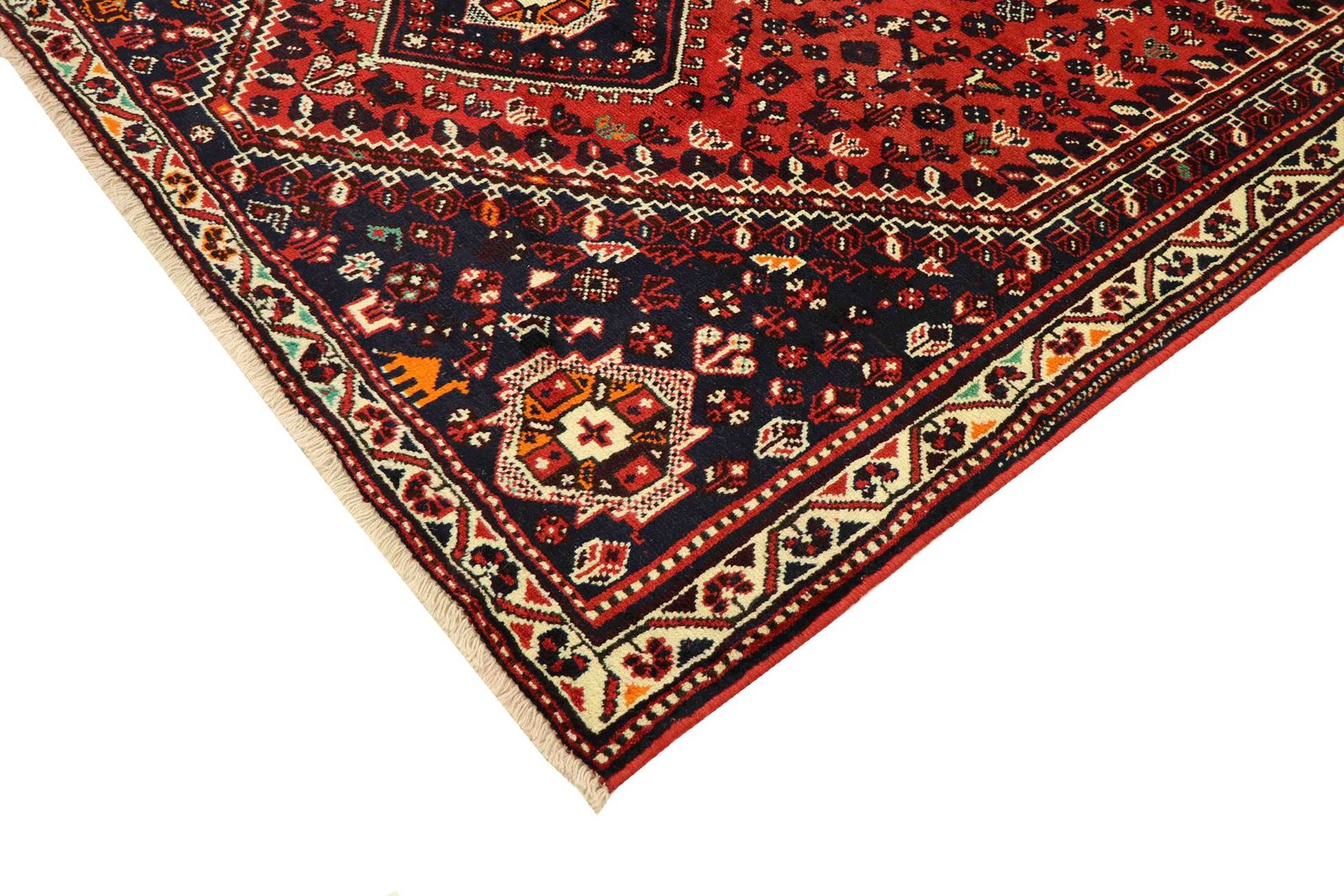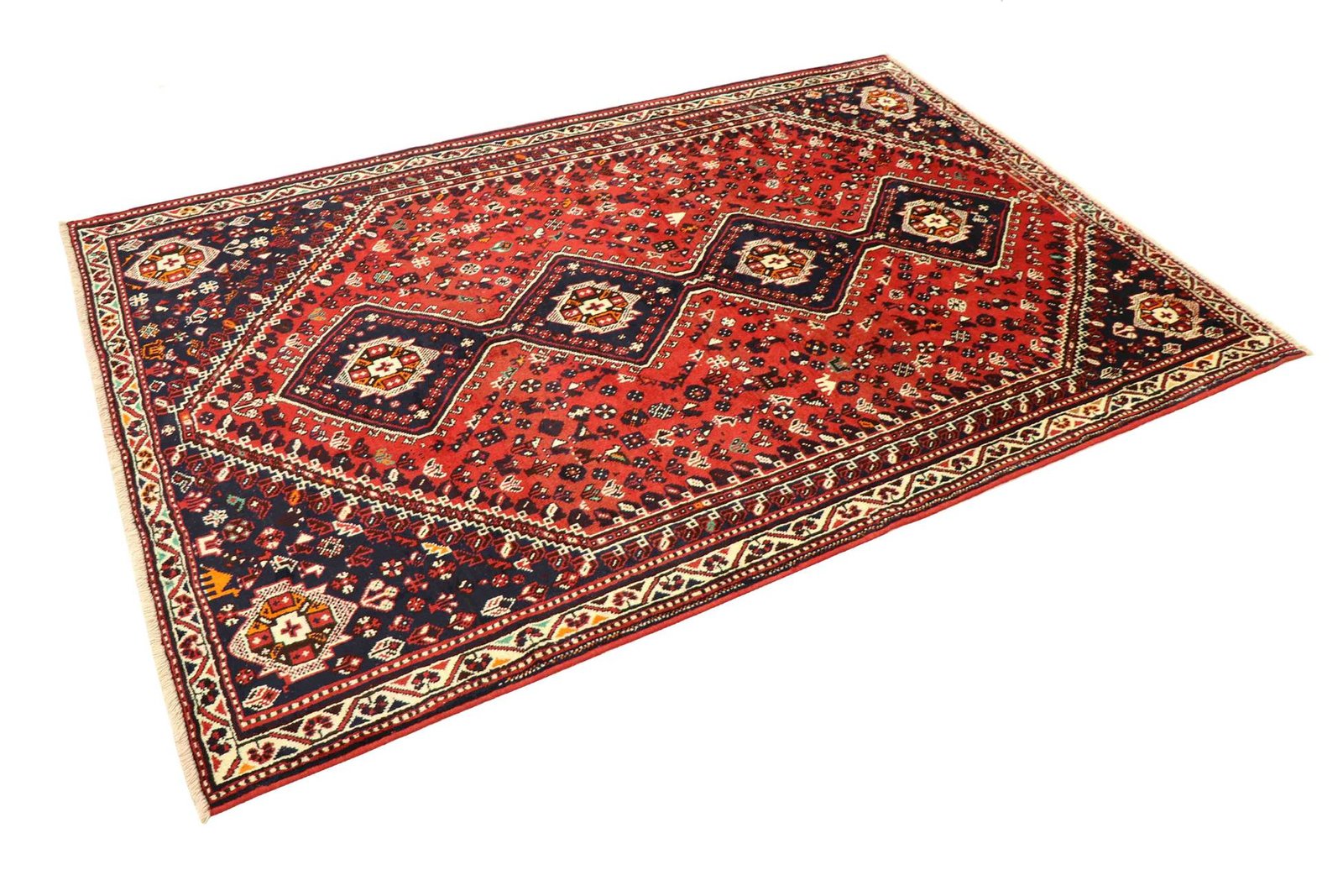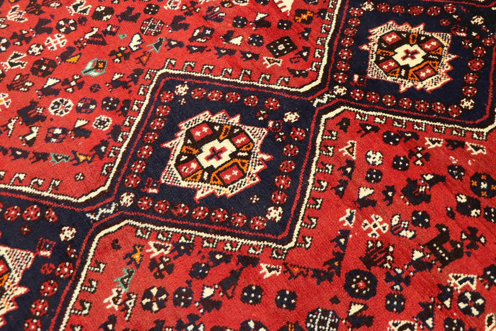 This carpet belongs to the village and nomadic carpets from Iran. It is woven by hand in small towns and villages as well as by nomads in the open air using traditional methods. Carpets such as those from Shiraz and Ghashghai are created without a template and entirely from memory. They are known for their linear and geometric patterns. The cultural and traditional origins of these carpets give them a unique character that reflects ancient Persia. Each carpet is an expression of centuries-old craftsmanship and cultural identity, lending a special historical touch to any room.
