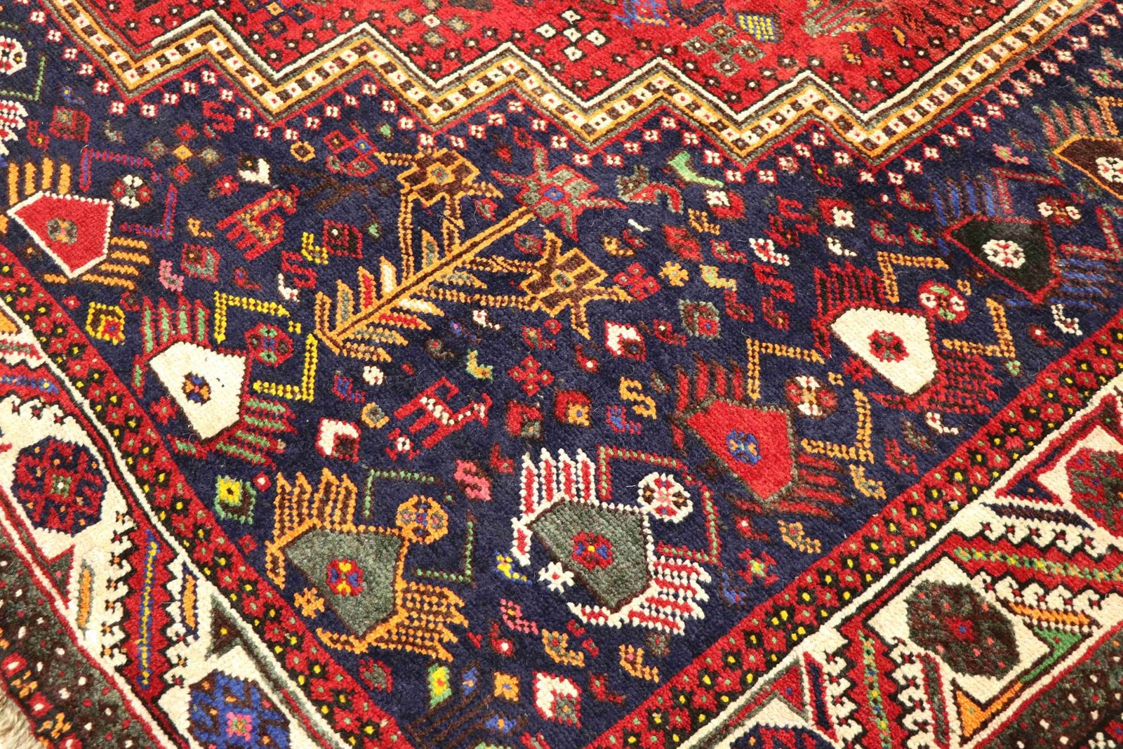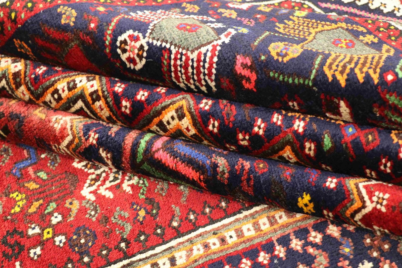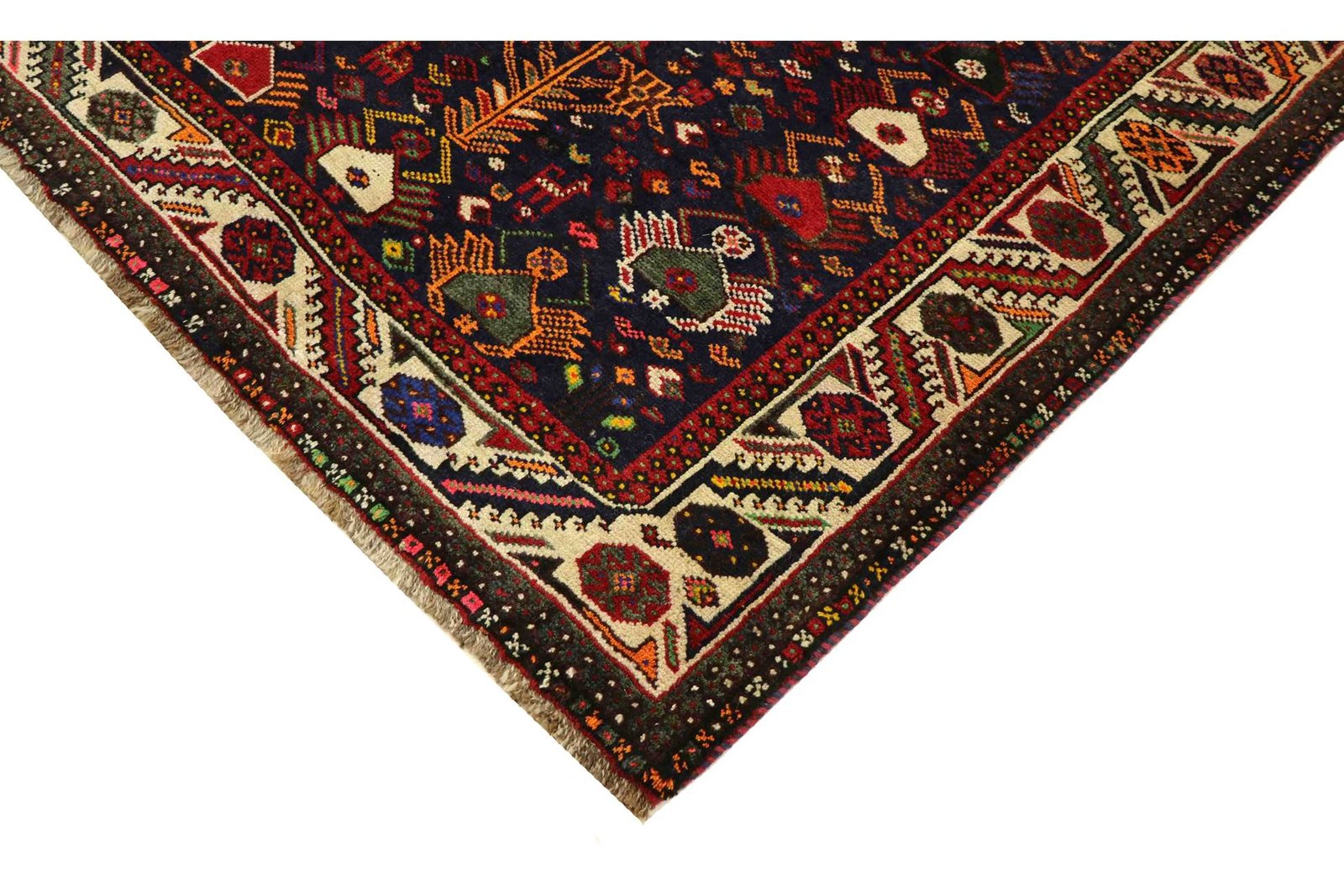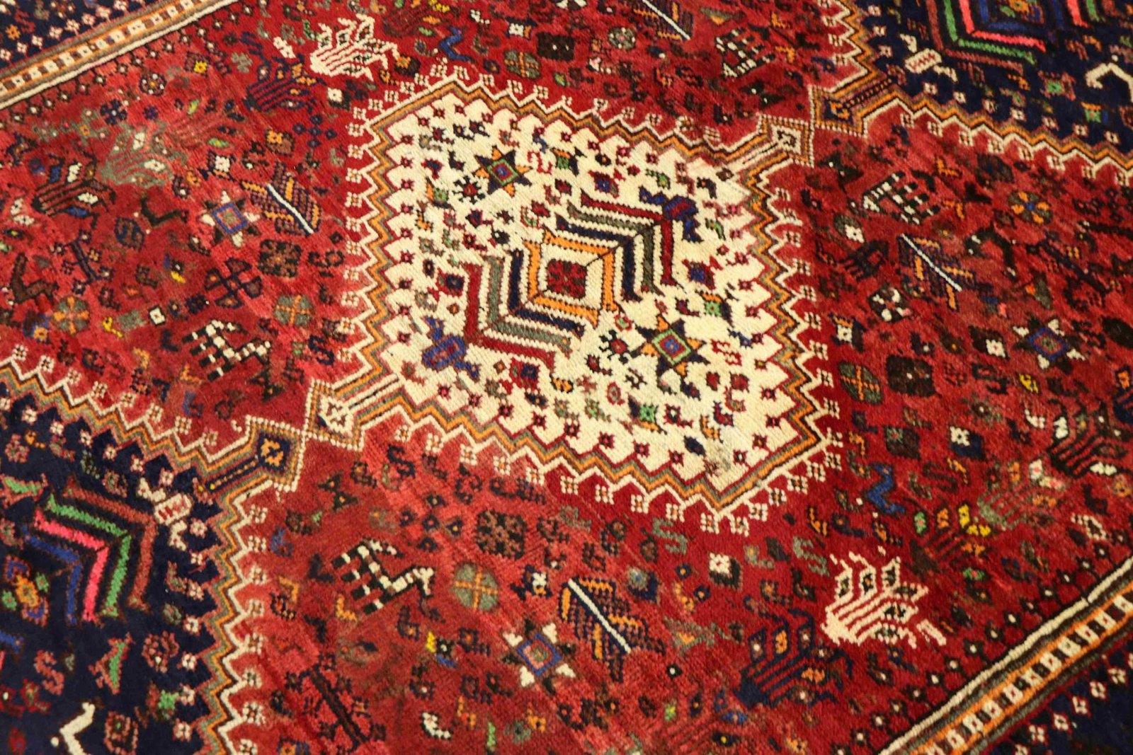 This carpet is one of the traditional village and nomadic carpets from Iran. In small towns and villages, as well as by nomads in the open air, carpets such as those from Shiraz and Ghashghai are made according to ancient craftsmanship. These carpets are knotted directly from the mind without a template, and are characterised by straight lines and geometric patterns. Their manufacturing method and cultural heritage give them a unique character that embodies ancient Persia. Thanks to this traditional manufacturing method and authentic design, these carpets bring not only aesthetic beauty but also a piece of history and cultural depth to any room.