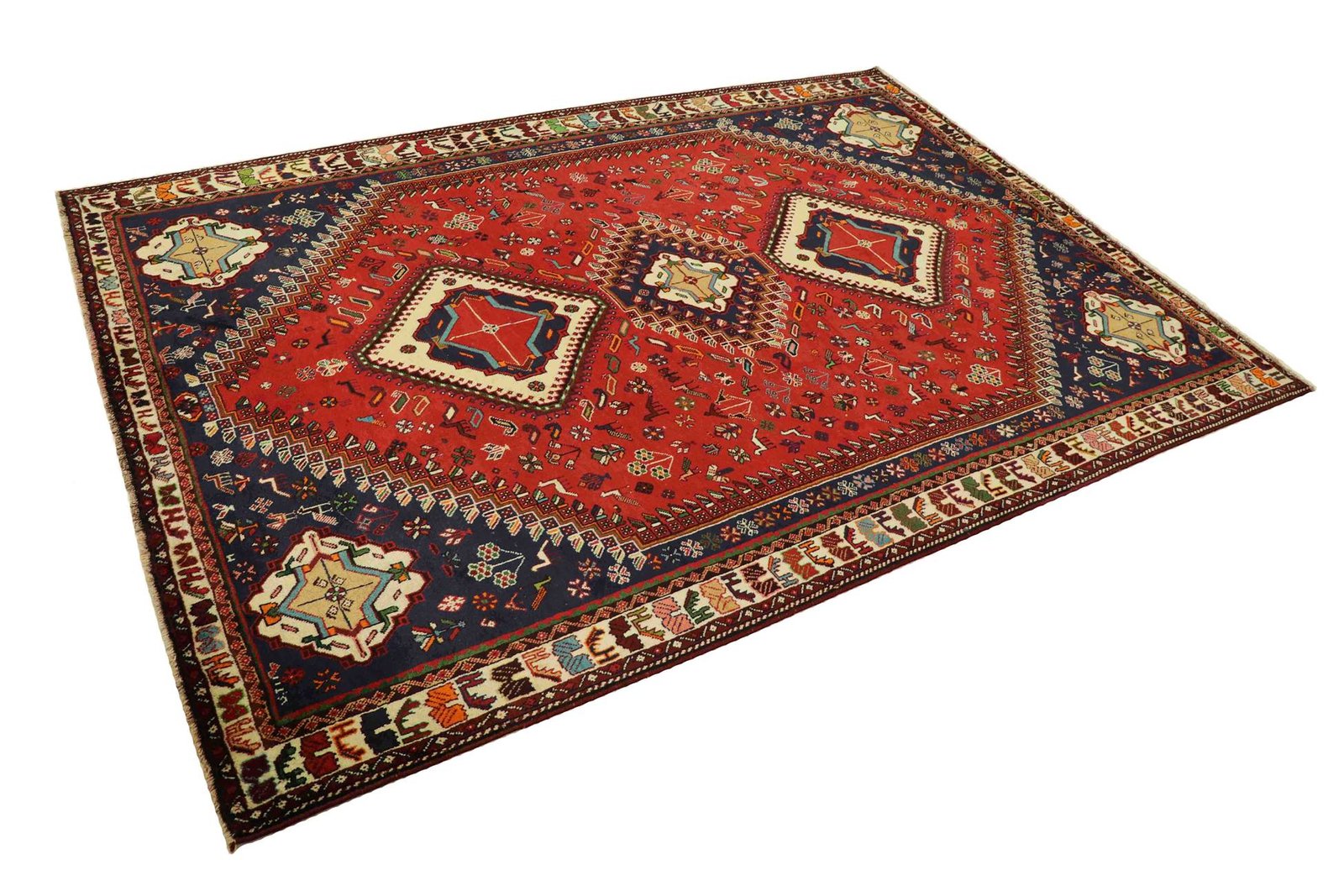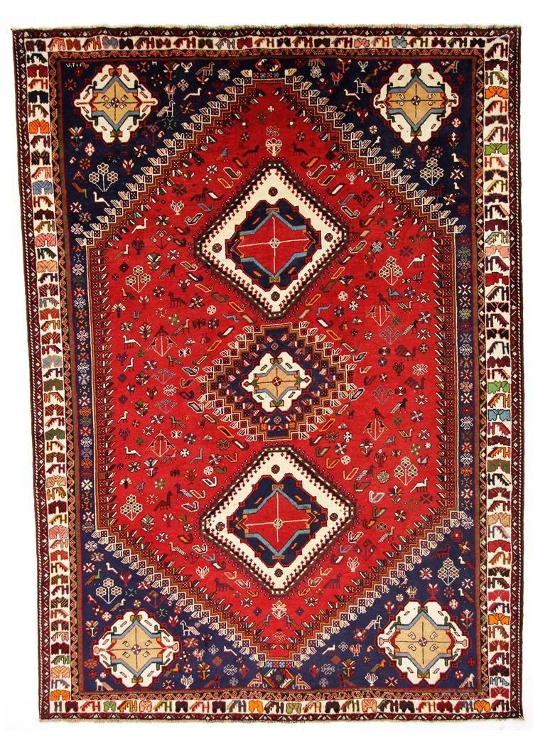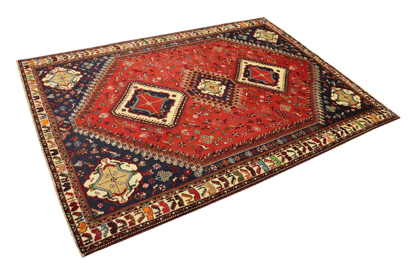 This carpet is one of the village and nomadic carpets from Iran that are hand-knotted by nomads in small towns, villages and even in the open air. Carpets such as those from Shiraz and Ghashghai are created without a template, directly from the knotters’ minds, and are characterised by linear and geometric patterns. This tradition preserves ancient craftsmanship and conveys the unique character of ancient Persia. The carpets are an expression of a deeply rooted cultural history and reflect the authenticity and creativity of their creators. Their special manufacturing method and unique design make them valuable testimonies to cultural heritage and artistic accents in any room.