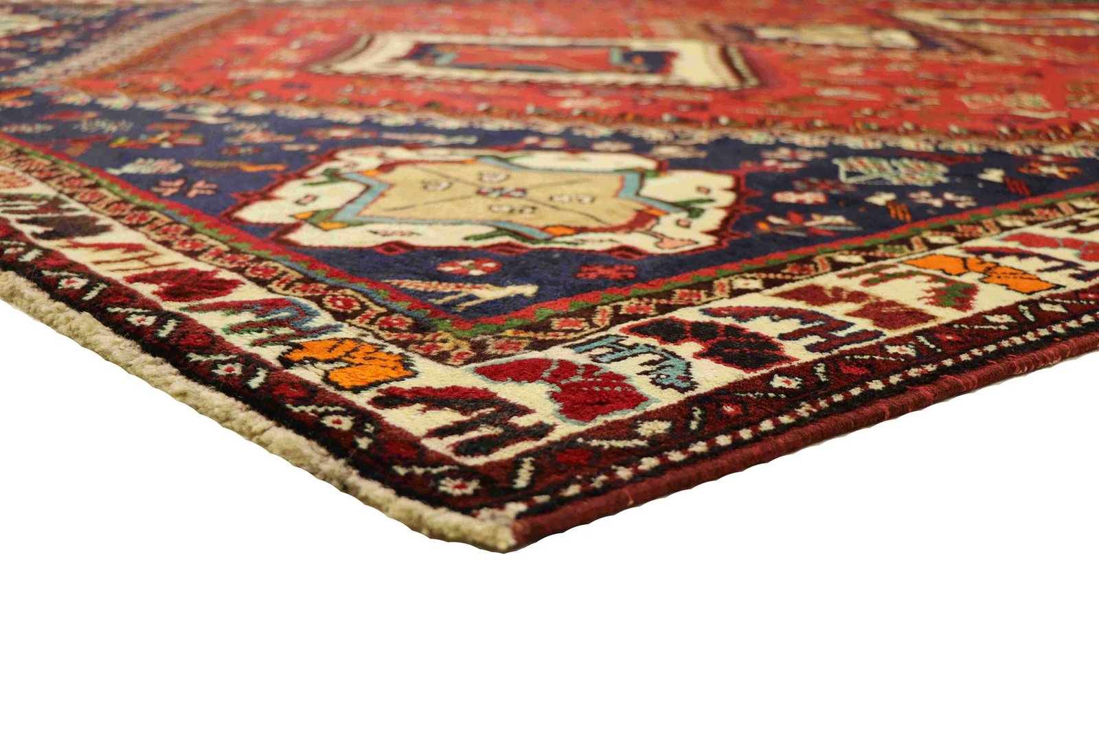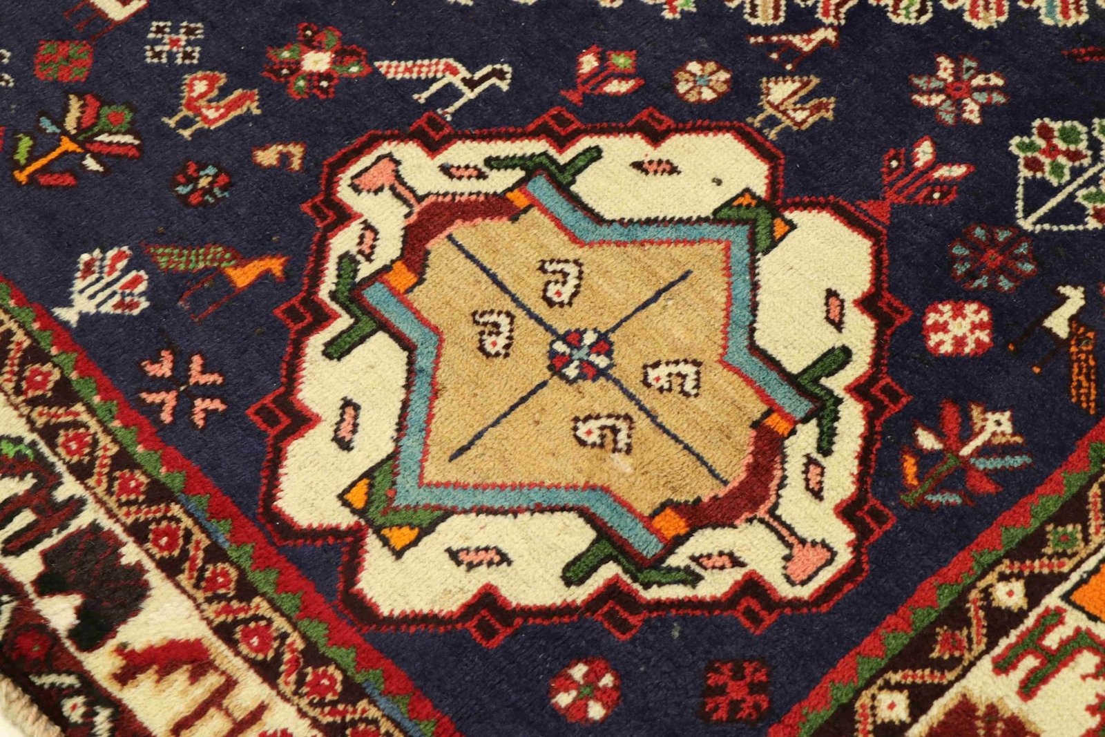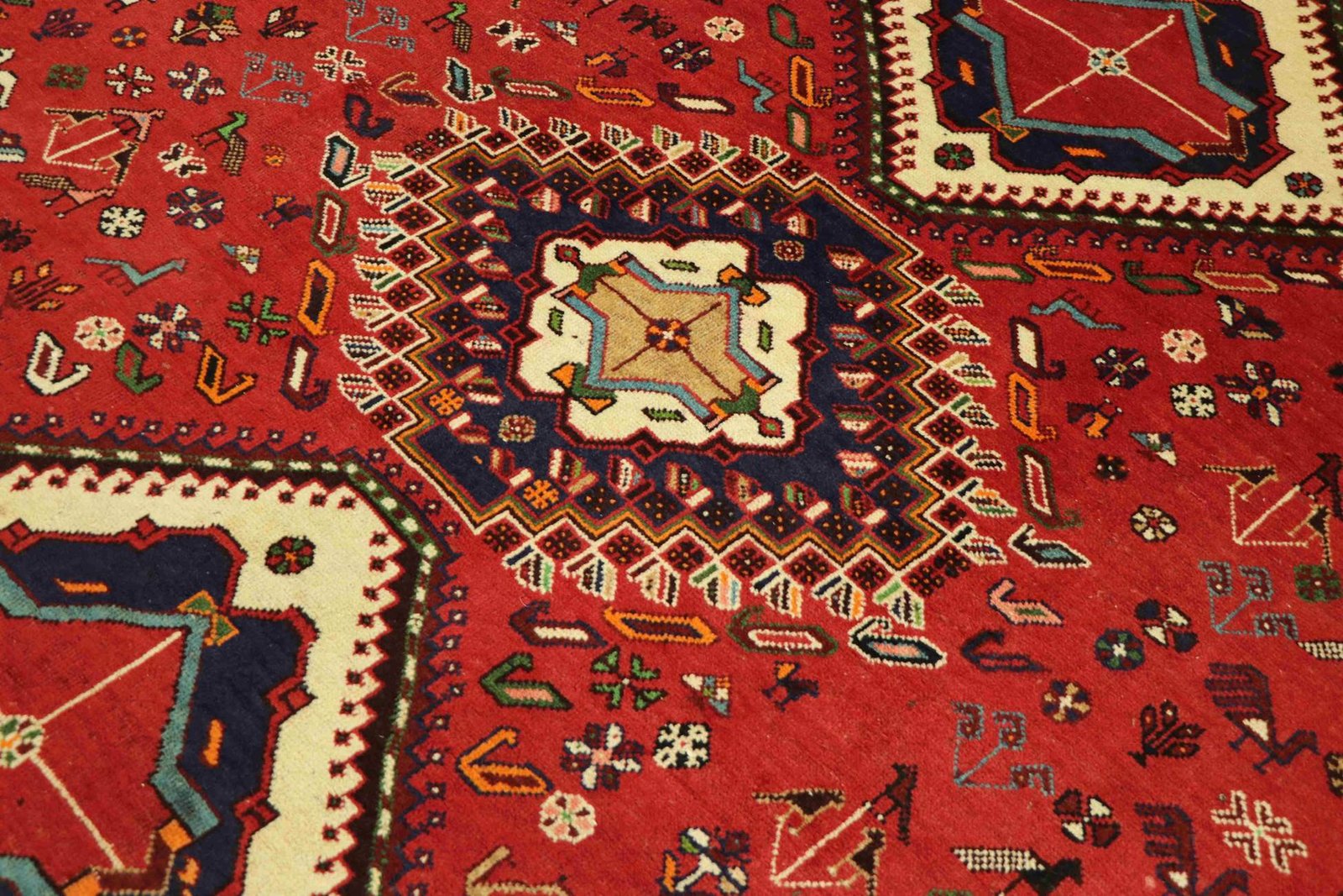 This carpet is one of the village and nomadic carpets from Iran that are hand-knotted by nomads in small towns, villages and even in the open air. Carpets such as those from Shiraz and Ghashghai are created without a template, directly from the knotters’ minds, and are characterised by linear and geometric patterns. This tradition preserves ancient craftsmanship and conveys the unique character of ancient Persia. The carpets are an expression of a deeply rooted cultural history and reflect the authenticity and creativity of their creators. Their special manufacturing method and unique design make them valuable testimonies to cultural heritage and artistic accents in any room.