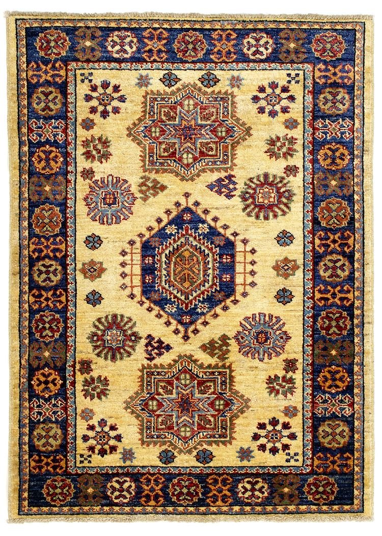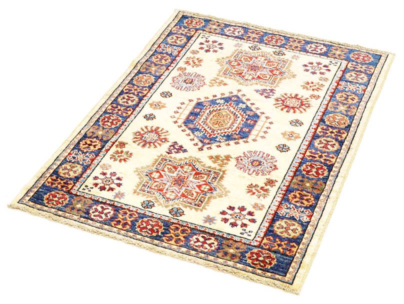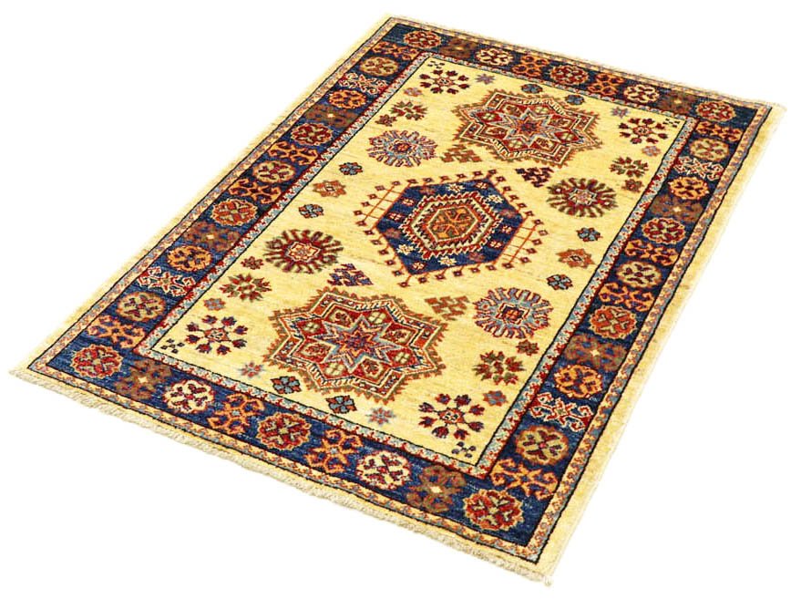 This hand-knotted Kazak carpet, inspired by traditional Caucasian designs, impresses with its remarkable robustness and vibrant colours. It embodies the centuries-old art of carpet weaving in the Caucasus with charming, simple patterns and impressive colour intensity. Particularly sought-after in the Orient and Europe, this carpet is characterised by its simple patchwork technique and harmonious use of colour accents. These characteristics make it an ideal companion for modern interiors, as it can be perfectly combined with current trends and preferences. The Kazak carpet is not only a piece of cultural history, but also a stylish element for sophisticated living spaces.