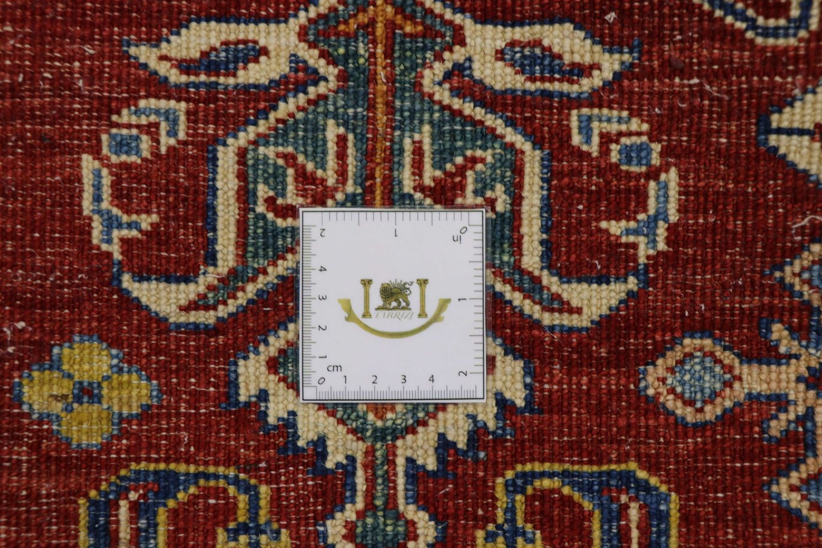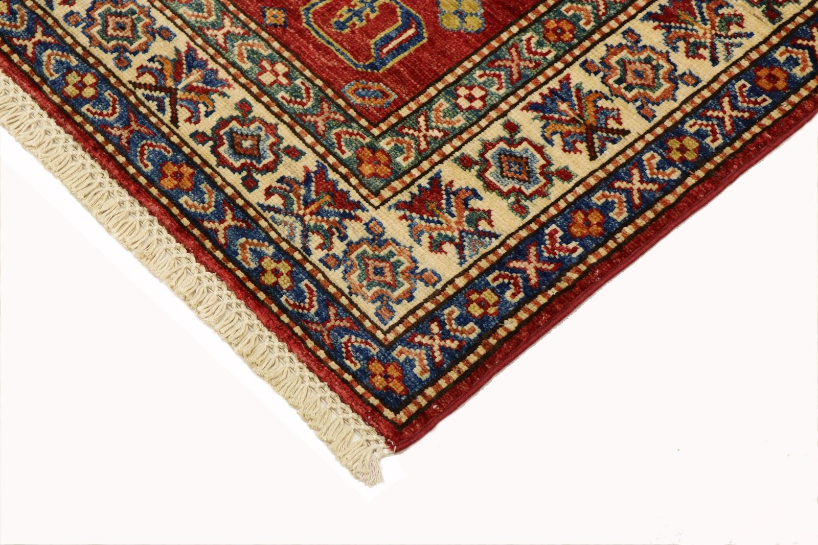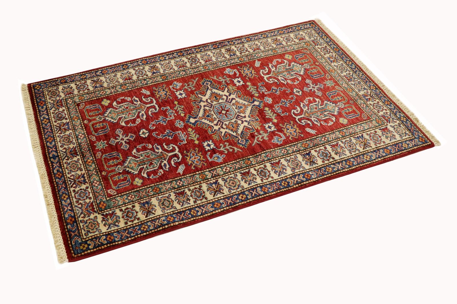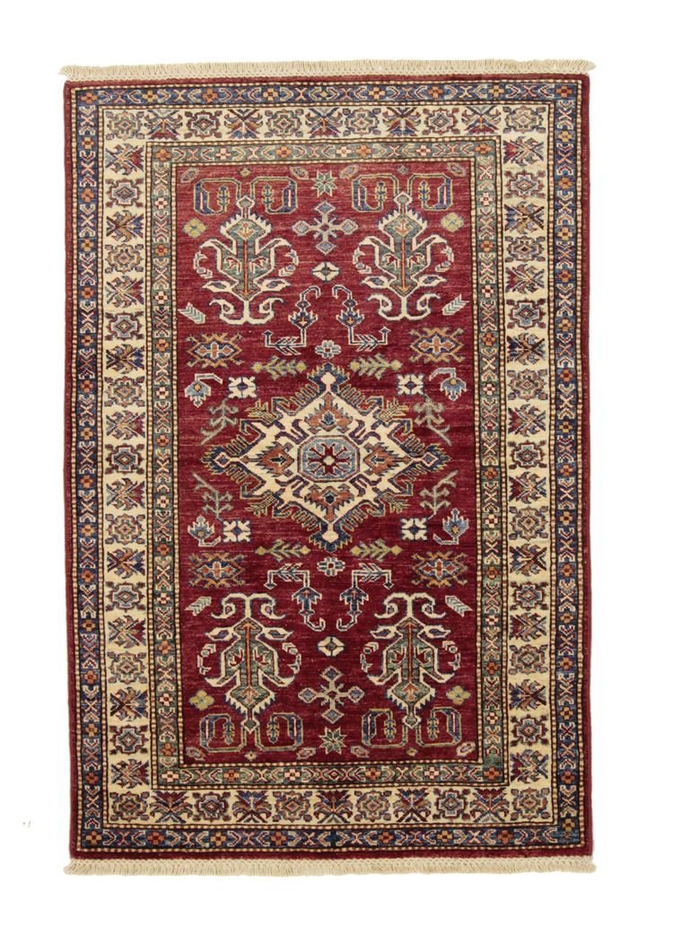 This hand-knotted Kazak, made in the classic style of Caucasian carpets, impresses with its robustness and vibrant colours. It is an impressive representation of the traditional culture of the Caucasus, known for its craftsmanship in carpet weaving. The carpets are characterised by charmingly simple shapes and intense colours that have been preserved for centuries. Among Oriental carpets, this Kazak is particularly sought after, both in the Orient and in Europe. Its simple patchwork and deliberate colour accents make it particularly versatile and ideal for combining with current interior design styles. Its authentic charm and harmonious blend of tradition and modernity make it a timeless gem for any home.